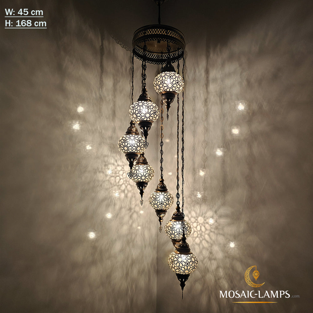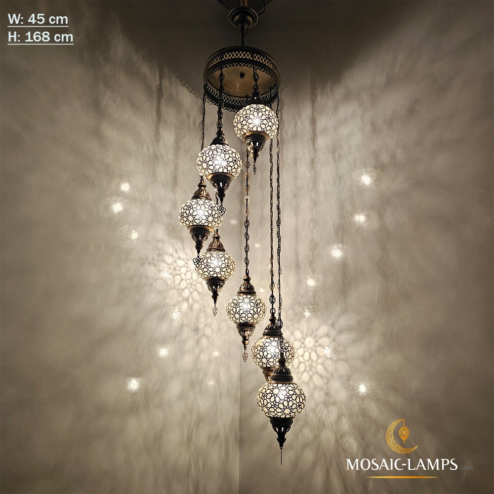 Set Of 7 Ball Ottoman Spiral Chandeliers, Laser Blown Globe Lamp, Moroccan Chandelier, Turkish Chandelier, Restaurant, Living Room Lighting.
