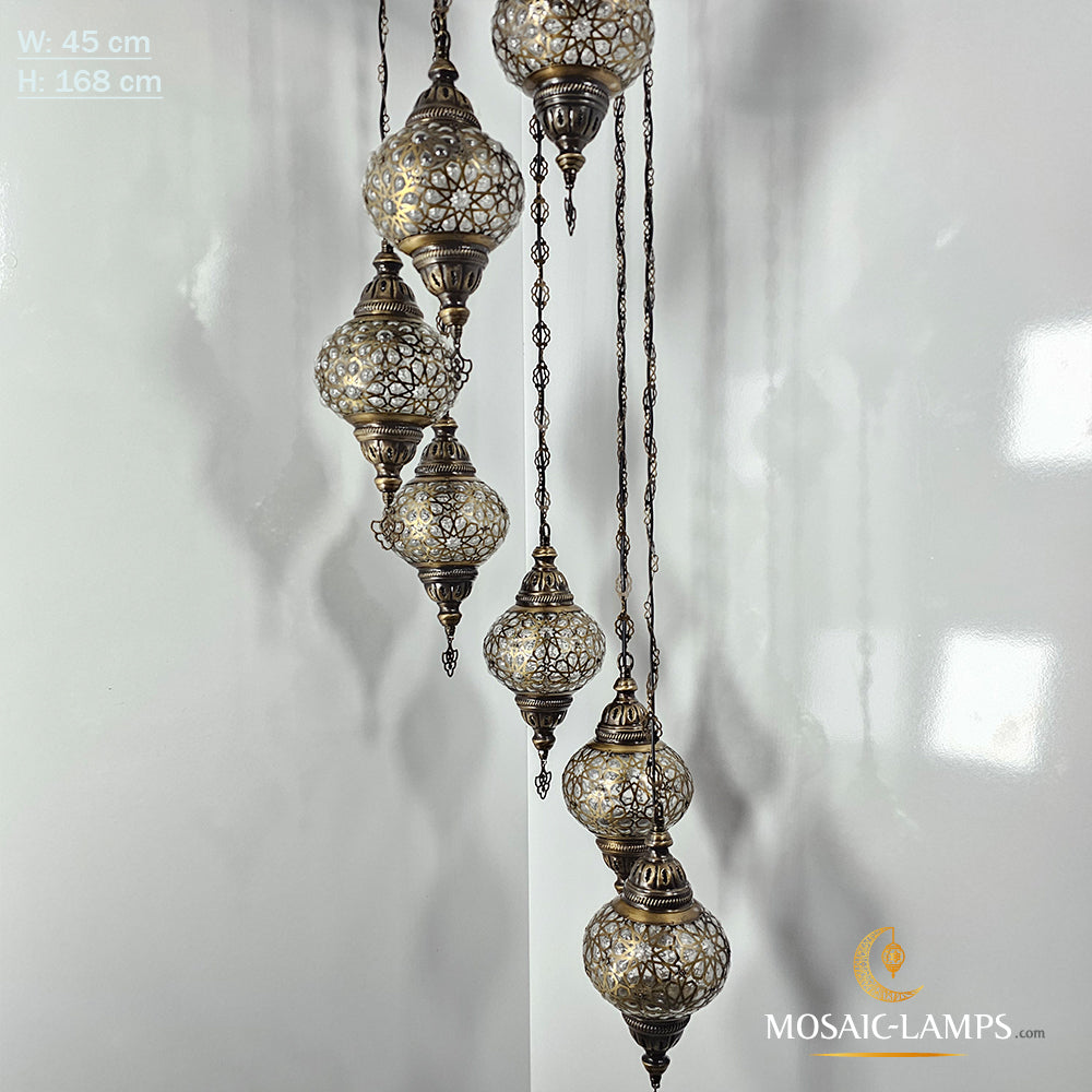 7 Globe Ottoman Spiral Chandeliers, Laser Metal Blown Globe Lamp, Moroccan Hanging Lamps, Turkish Chandelier, Restaurant, Living Room Lights