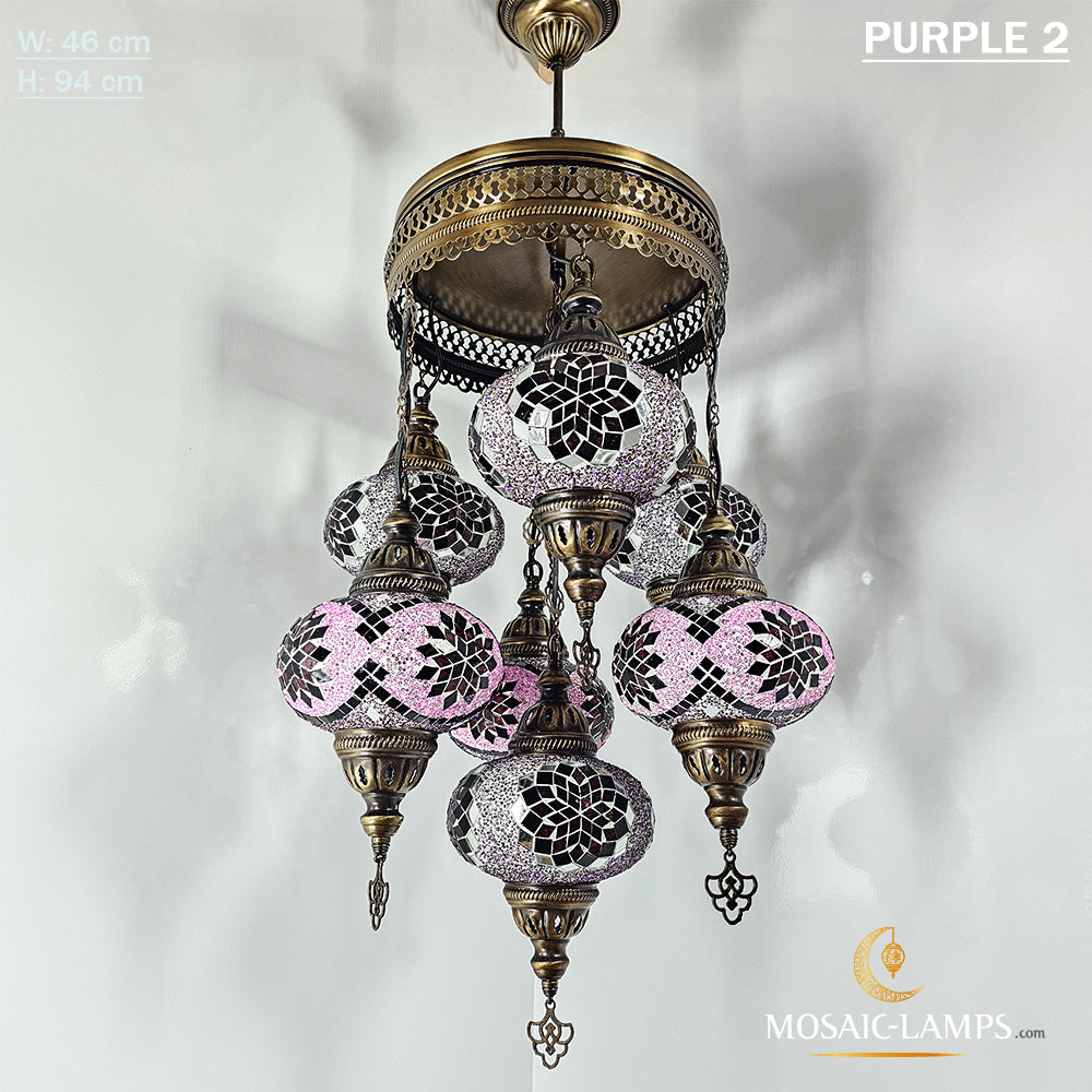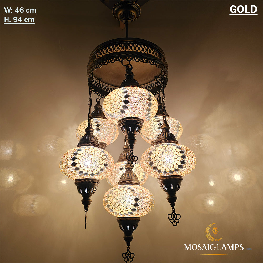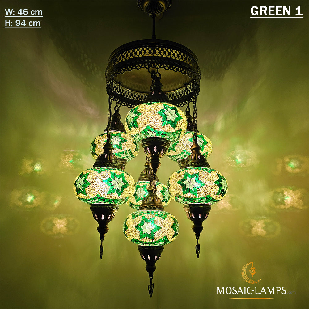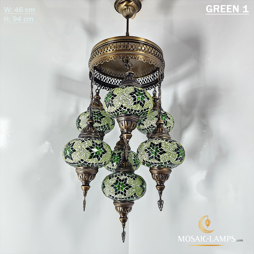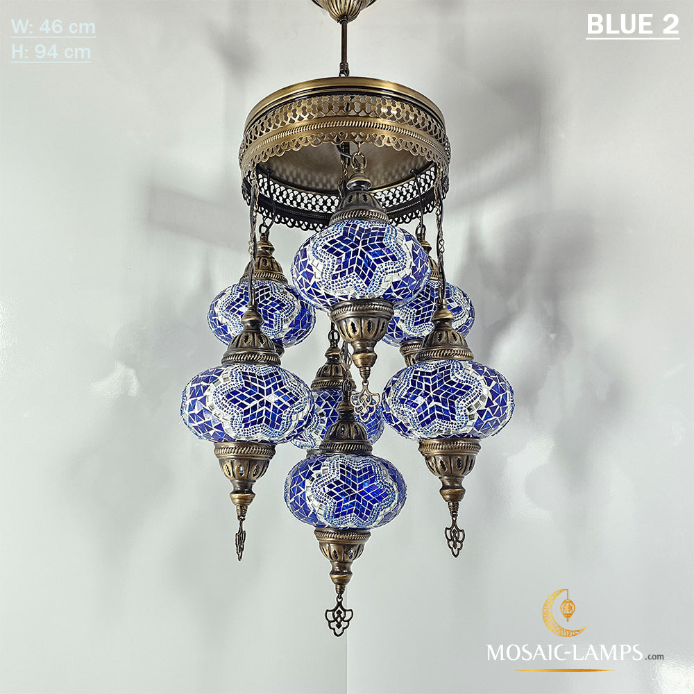 7 Globe Turkish Sultan Chandeliers, Large Ball Moroccan Handmade Mosaic Hanging Lamps, Living Room Chandelier, Restaurant Ceiling Lights.
