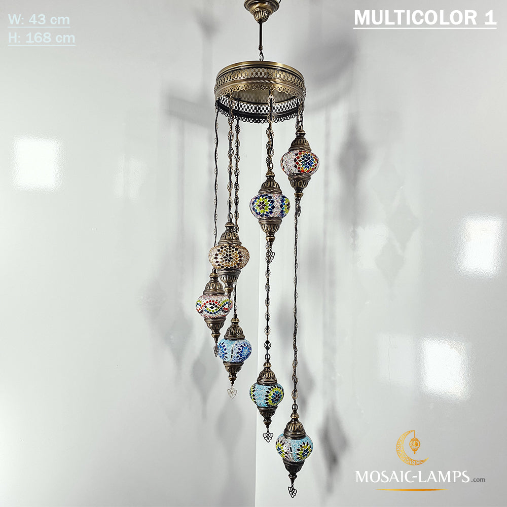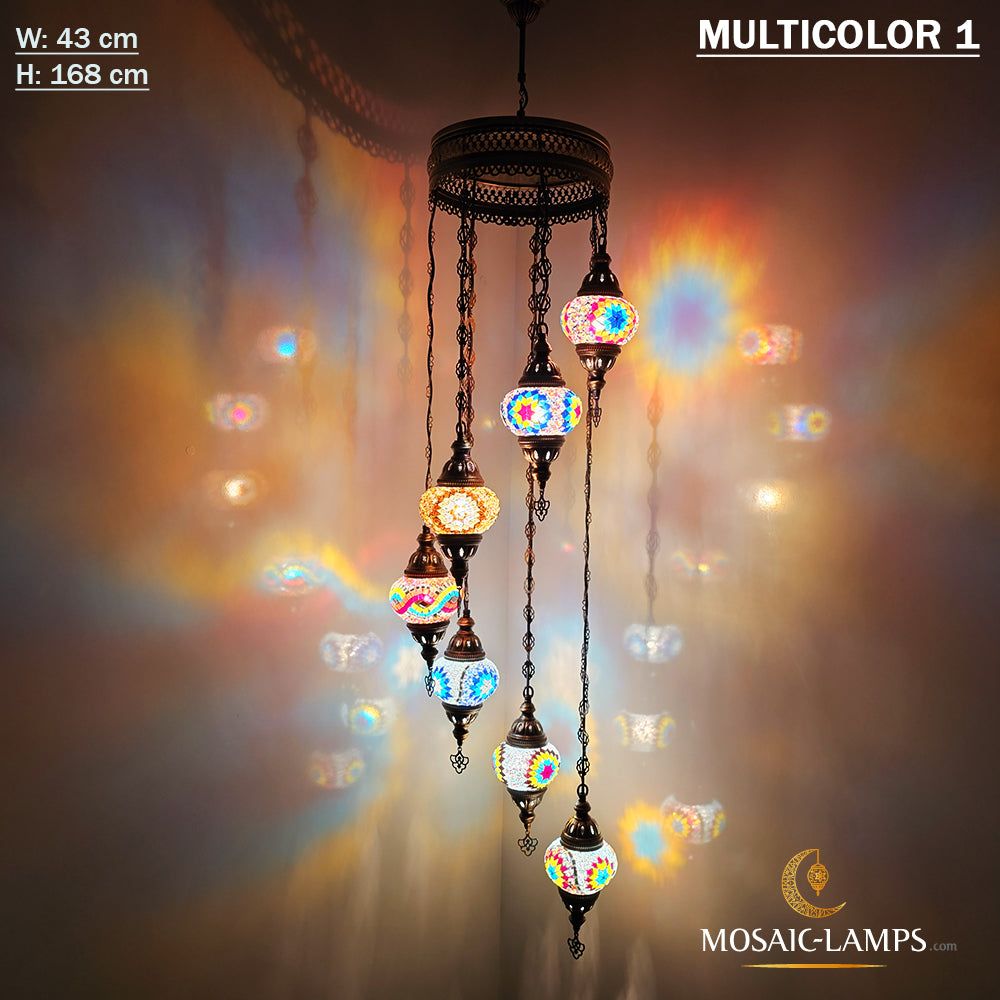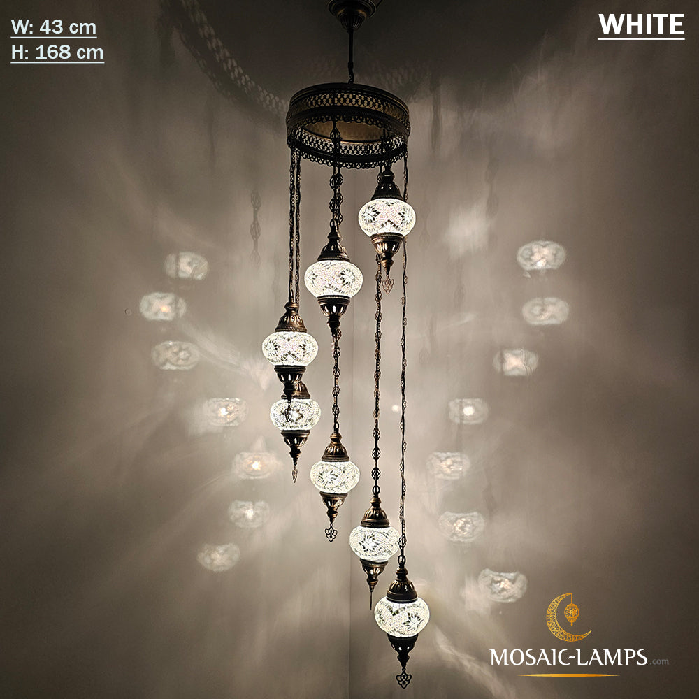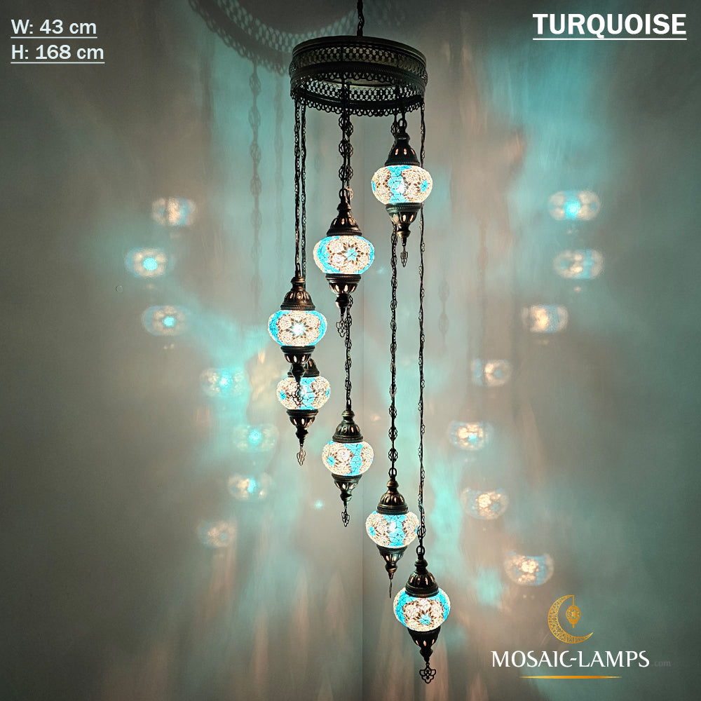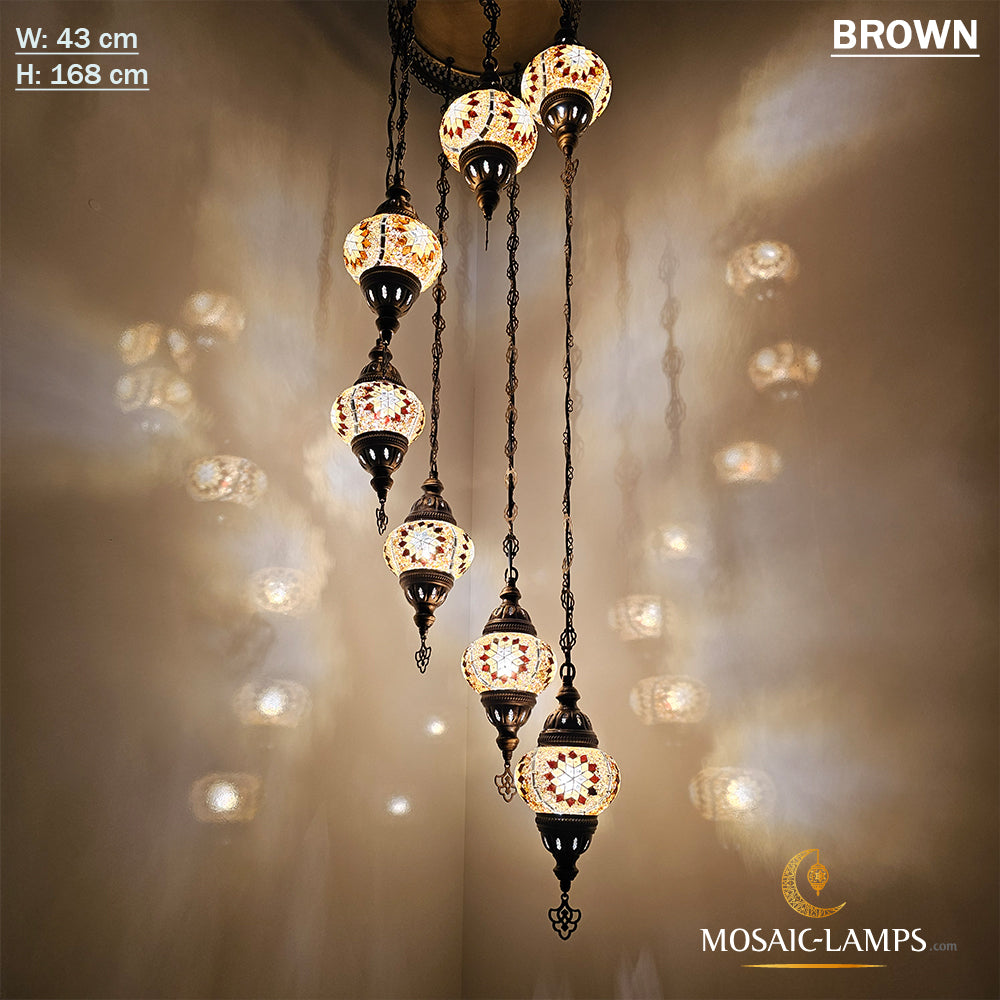 Set Of 7 Medium Spiral Chandelier, 7 Globe Turkish Mosaic Chandelier Sets, Living Room Moroccan Pendant Mosaic Lights, Restaturant Lights.