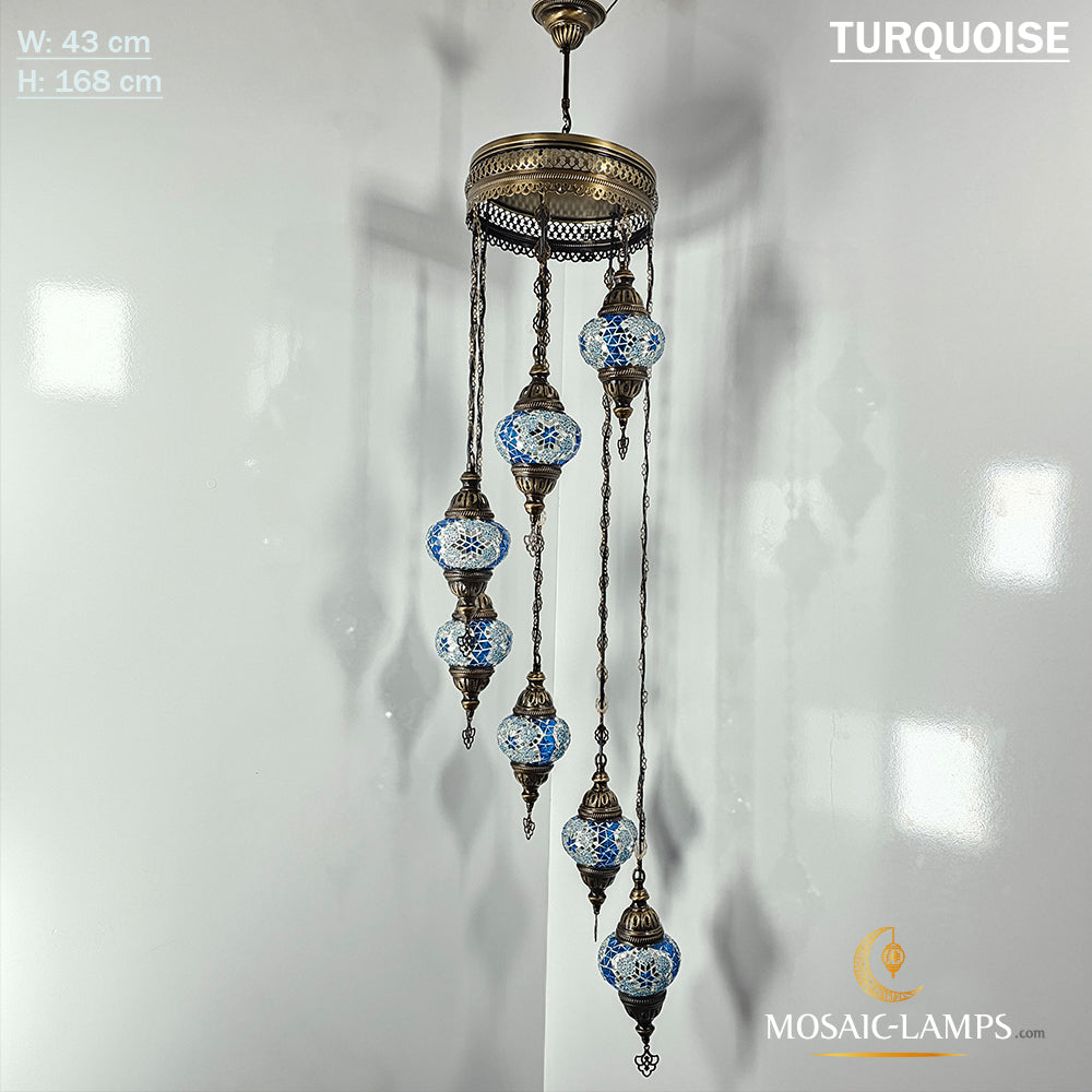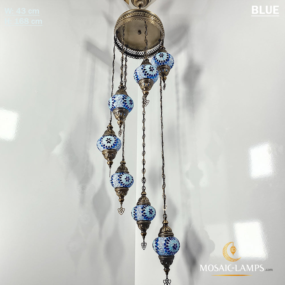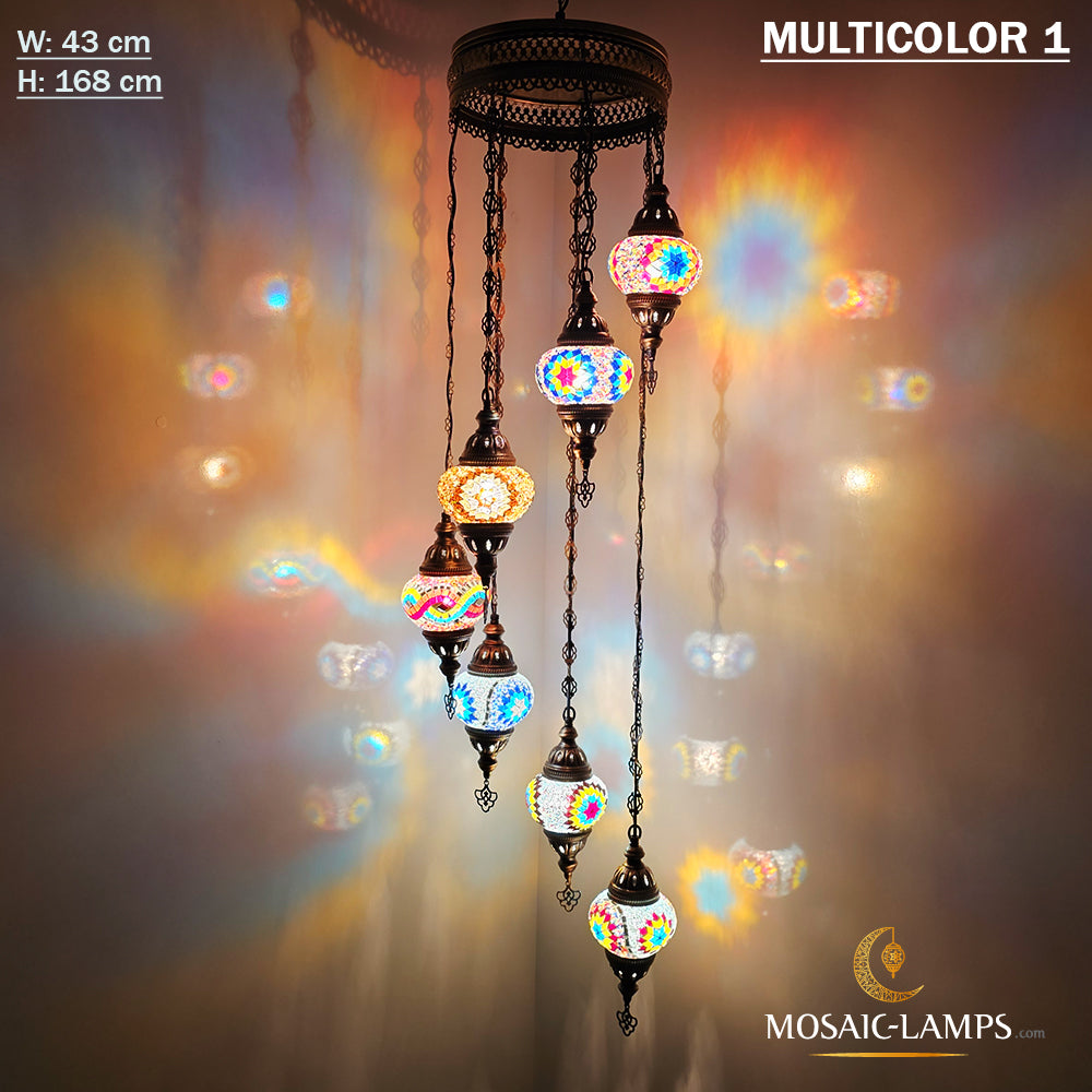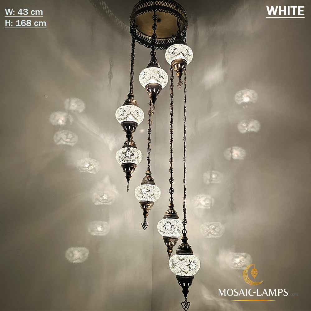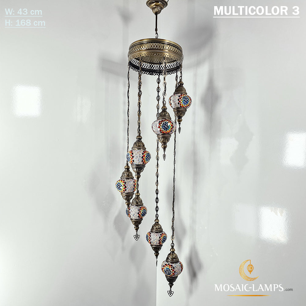 Set Of 7 Medium Spiral Chandelier, 7 Globe Turkish Mosaic Chandelier Sets, Living Room Moroccan Pendant Mosaic Lights, Restaturant Lights.