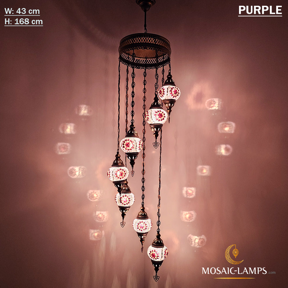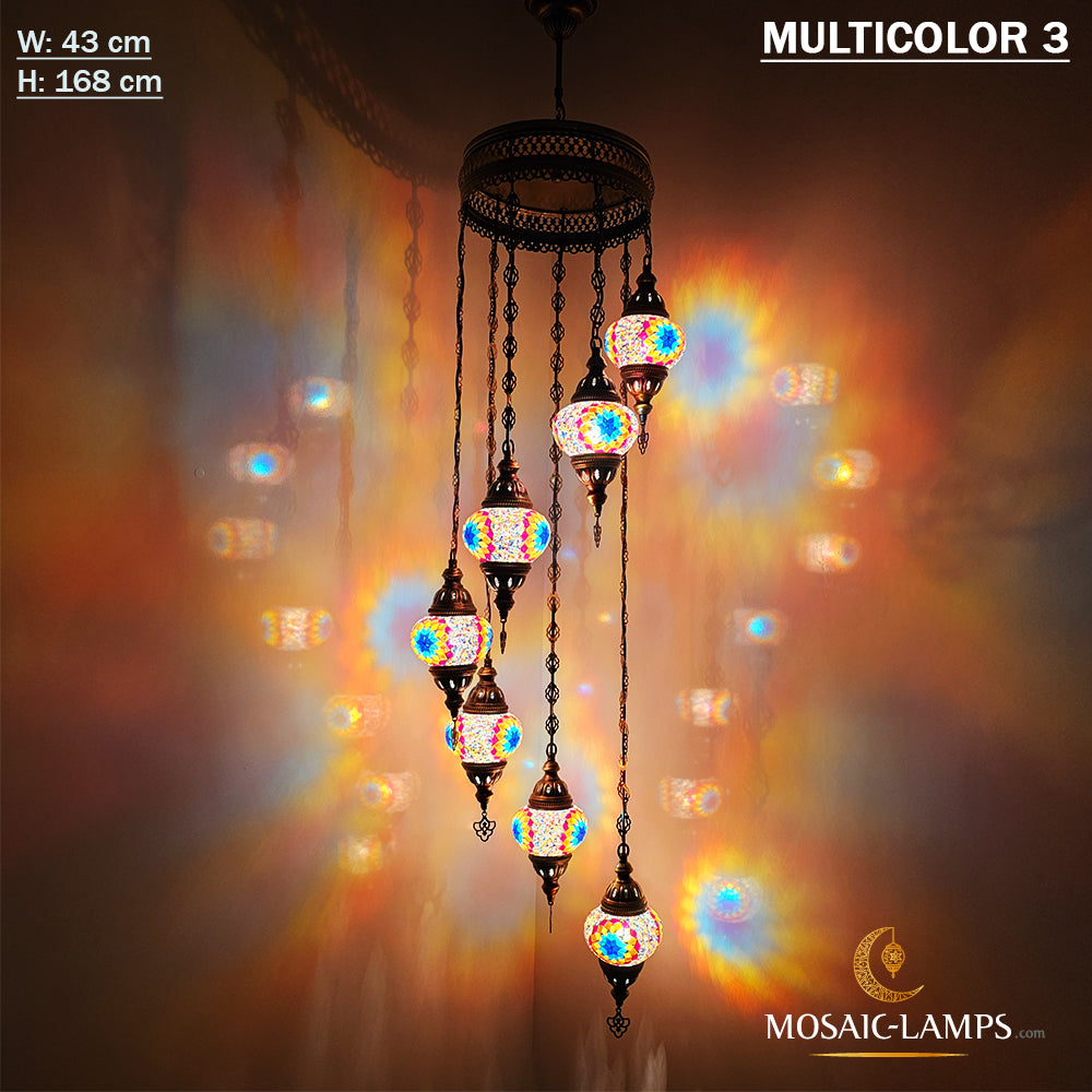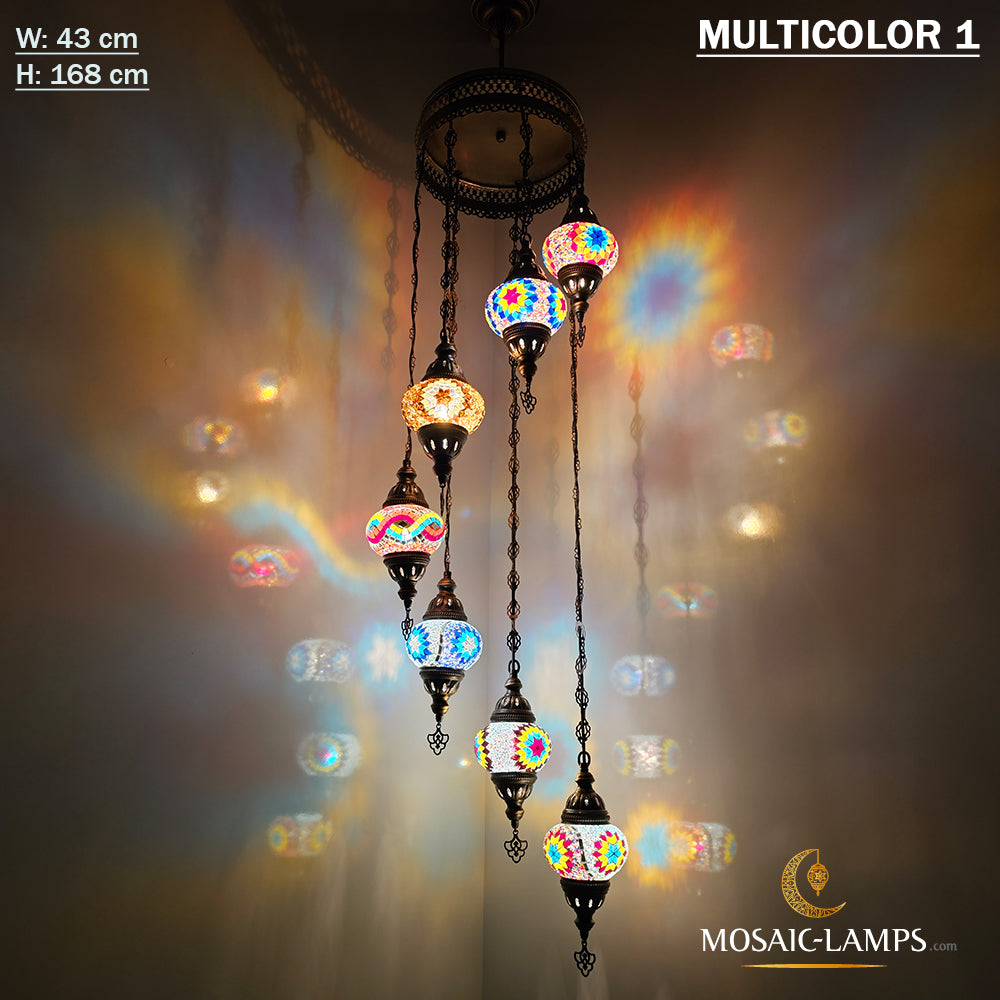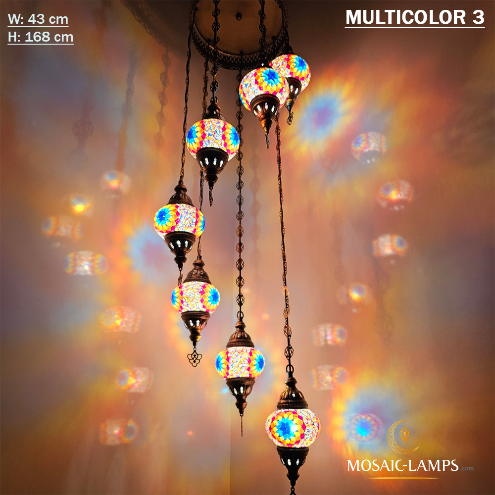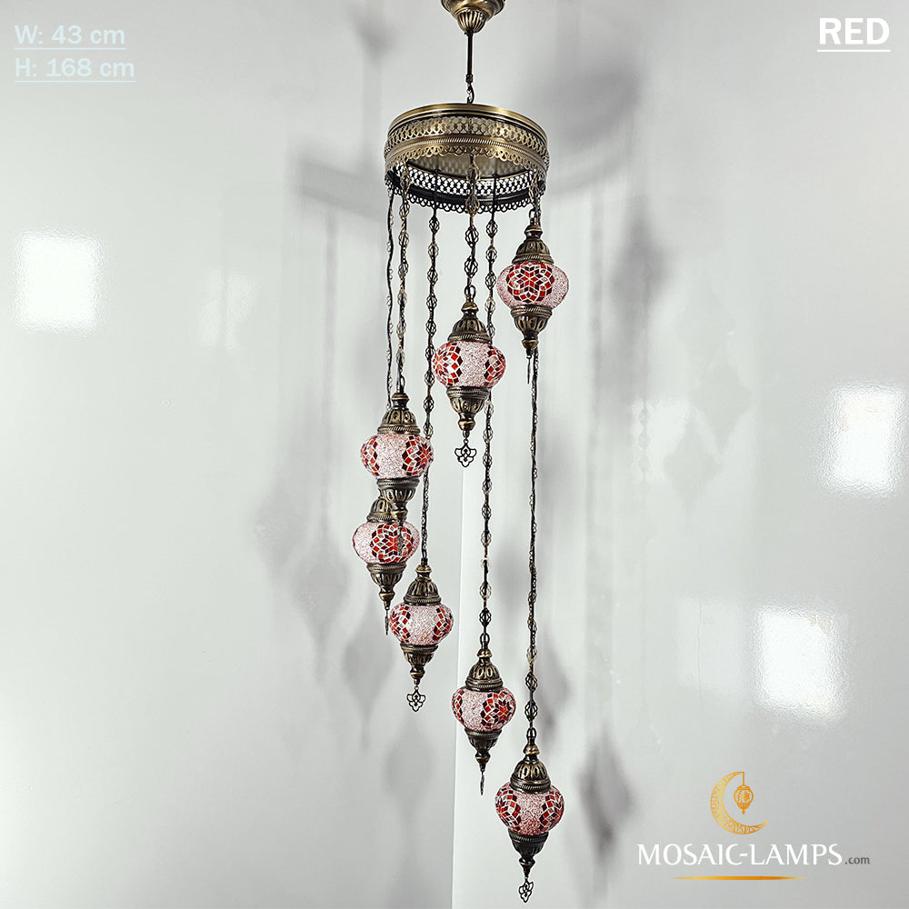 Set Of 7 Medium Spiral Chandelier, 7 Globe Turkish Mosaic Chandelier Sets, Living Room Moroccan Pendant Mosaic Lights, Restaturant Lights.