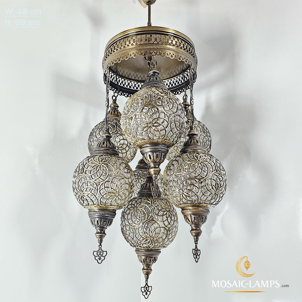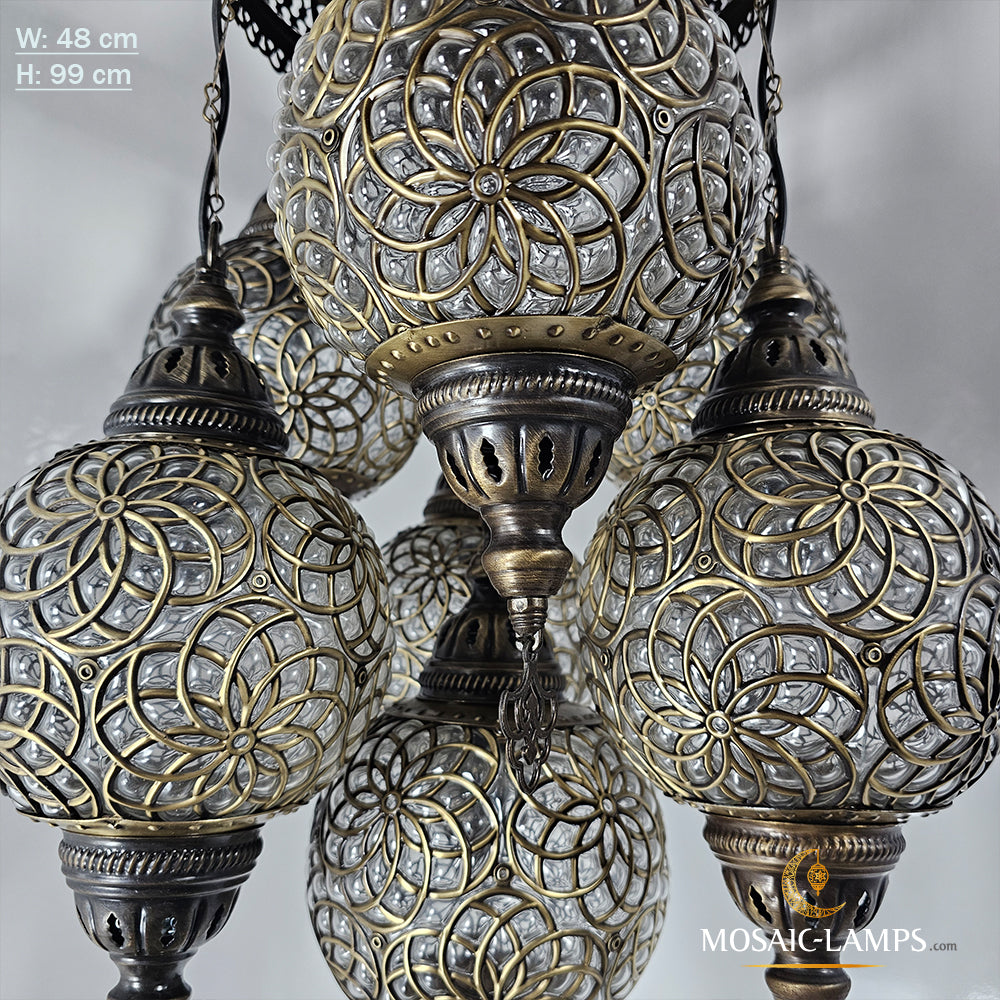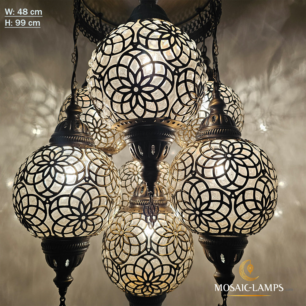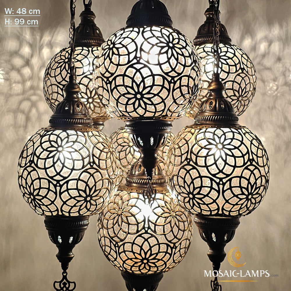 Large Blown Globe Chandelier, 7 Ball Ottoman Lamp, Moroccan Living Room Lights, Grape Chandelier, Bedroom, Sitting Room, Restaurant Lights..