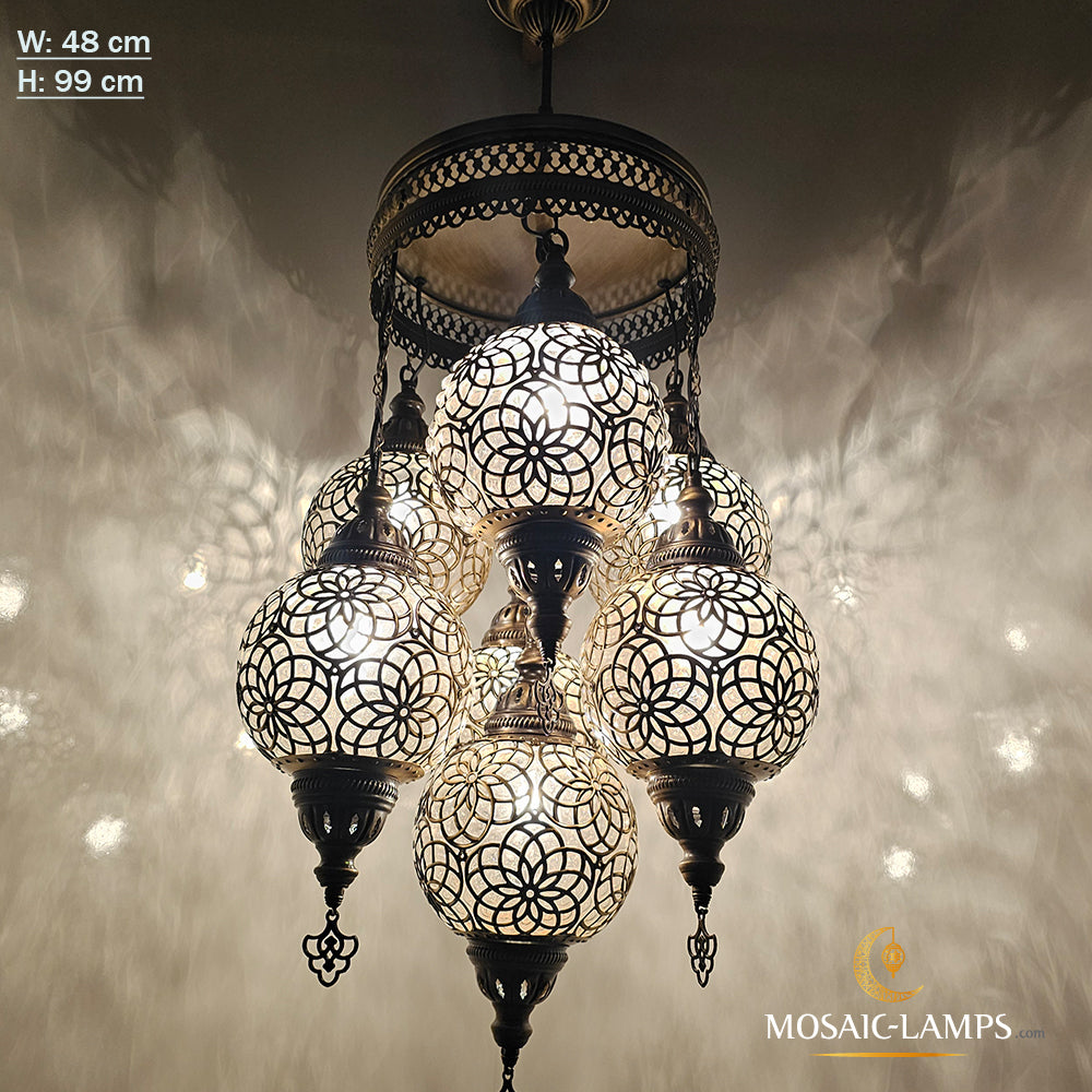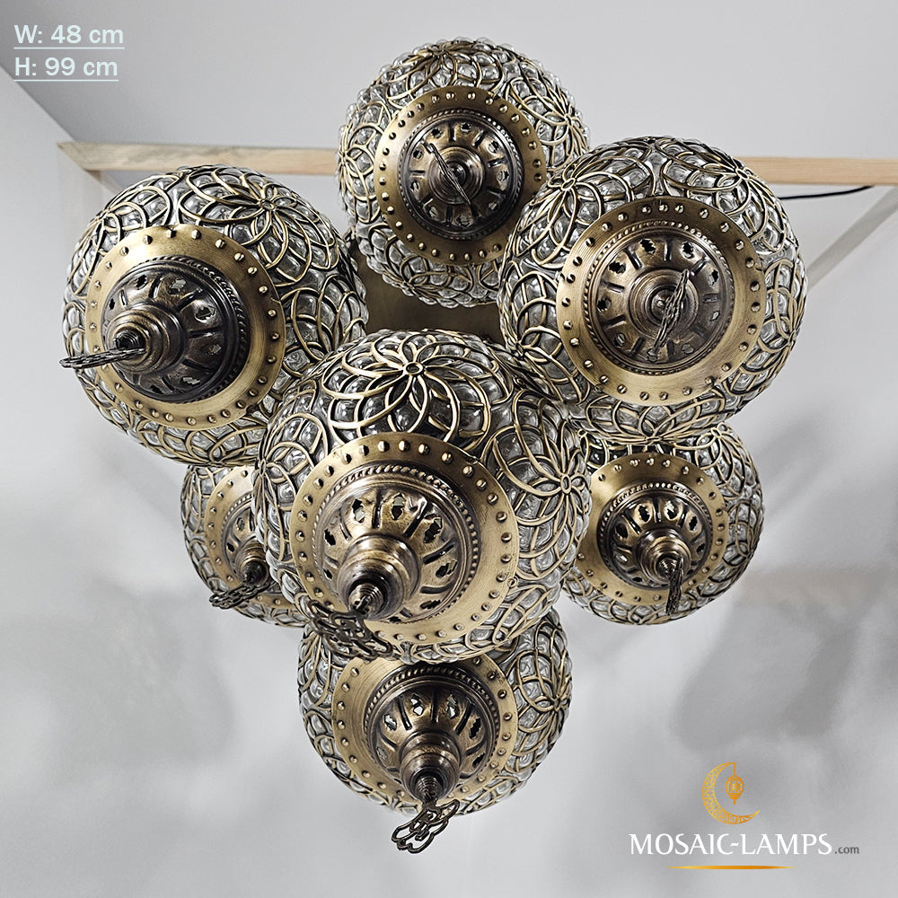 Large Blown Globe Chandelier, 7 Ball Ottoman Lamp, Moroccan Living Room Lights, Grape Chandelier, Bedroom, Sitting Room, Restaurant Lights.