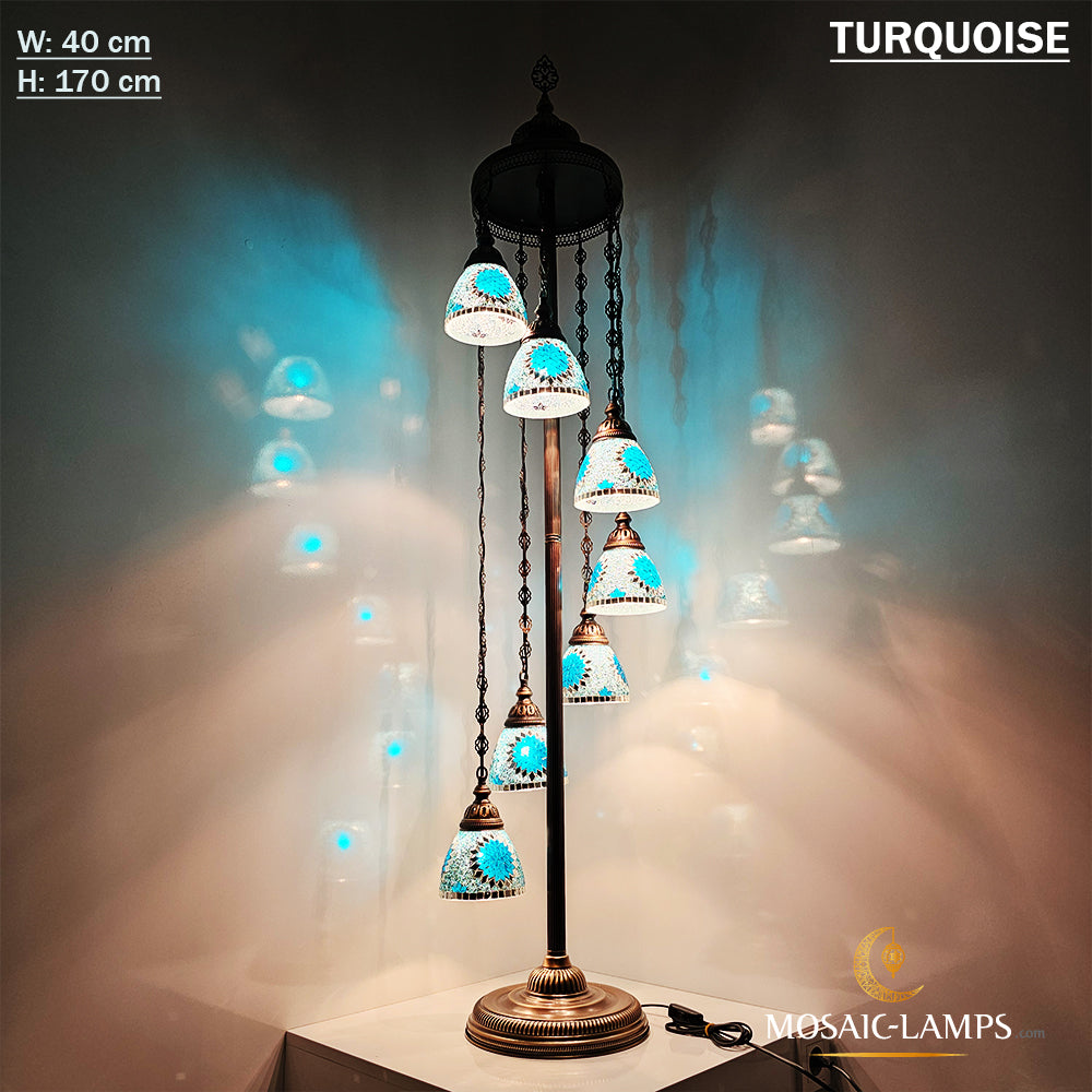 7 Retro Globe Turkish Floor Lamps, Living Room Mosaic Bedside Floor Lights, Bedroom Funnel Floor Lighting, Handmade Mosaic Ball Floor Lamp