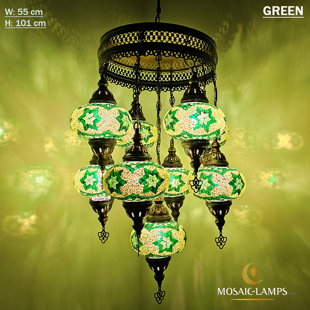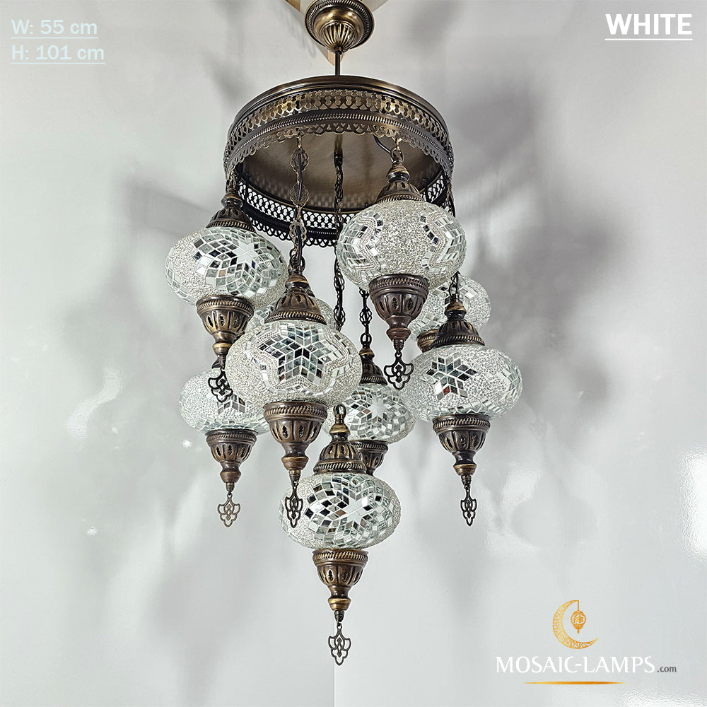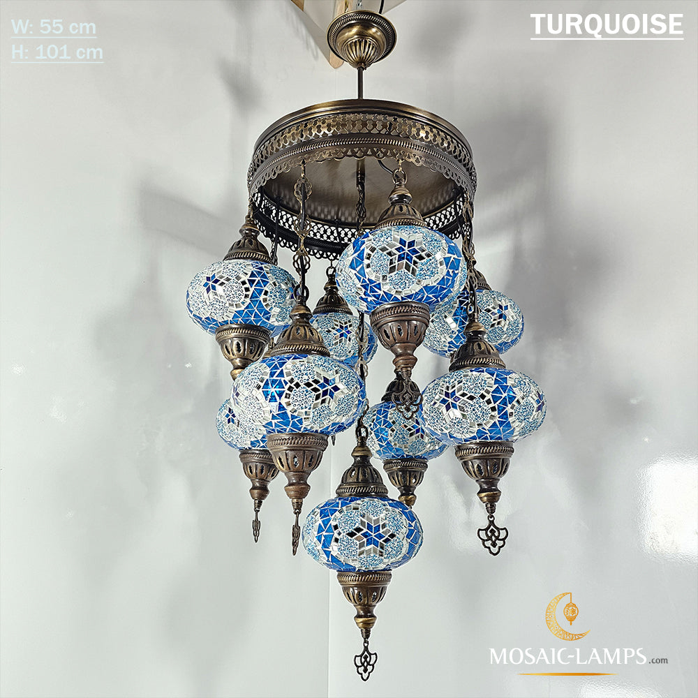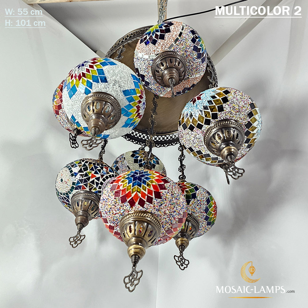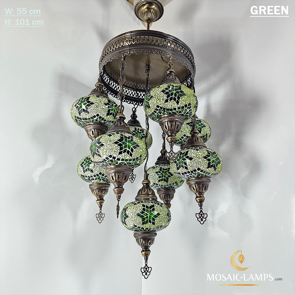 Set Of 9 Large Pasha Chandelier, 9 Globe Turkish Mosaic Chandelier Sets, Living Room Moroccan Pendant Mosaic Lights, Restaturant Lights.
