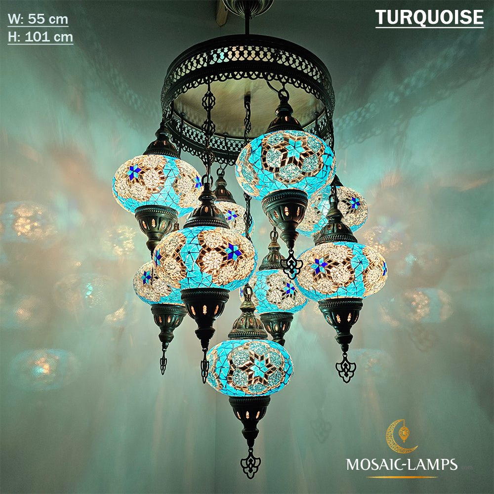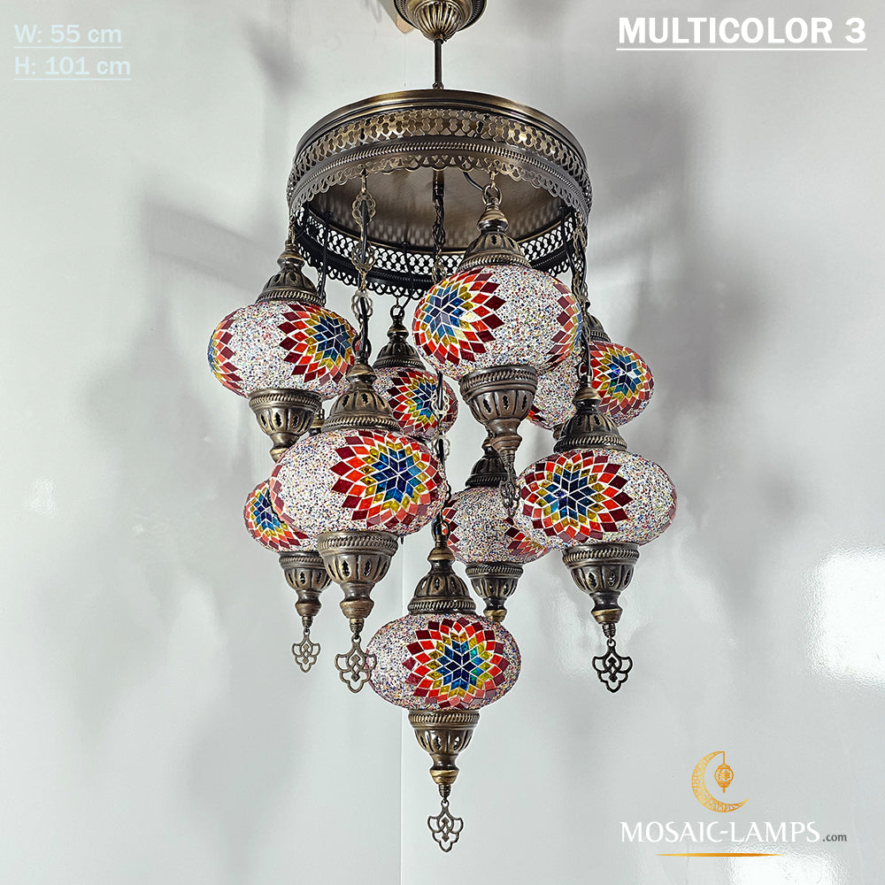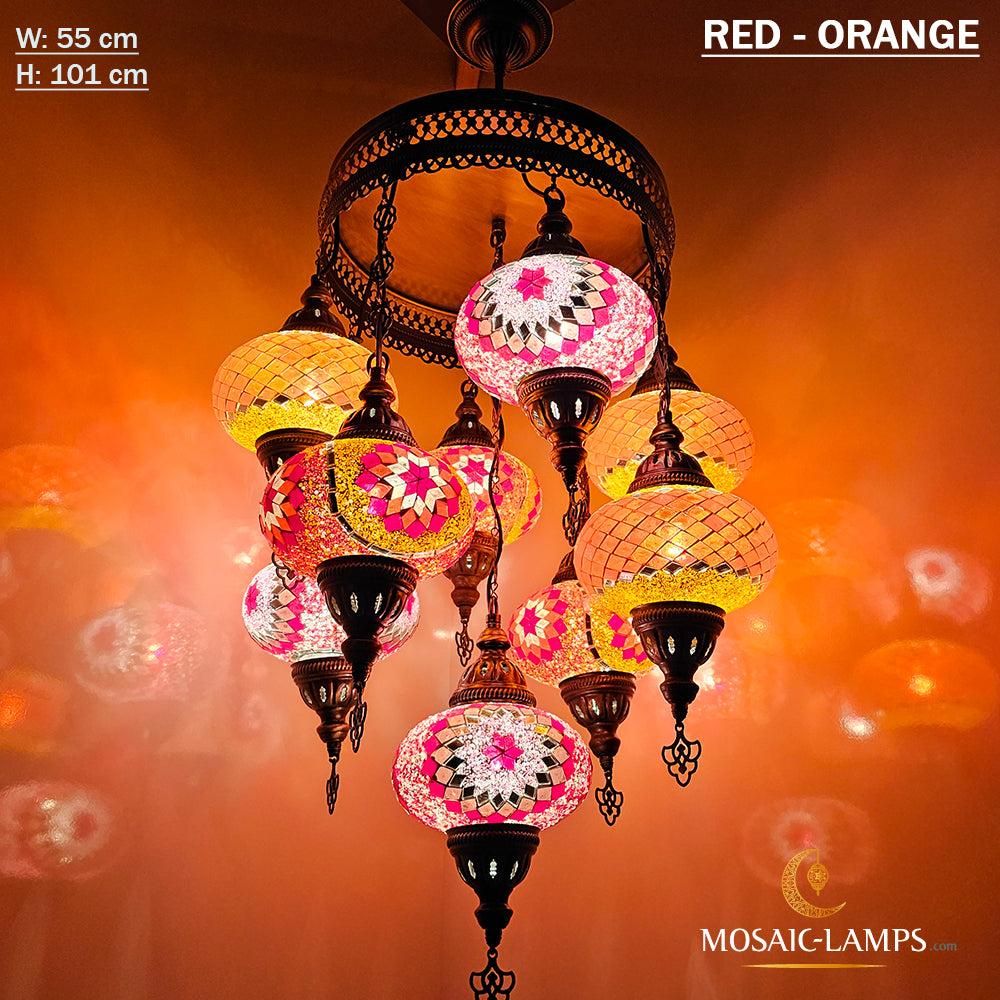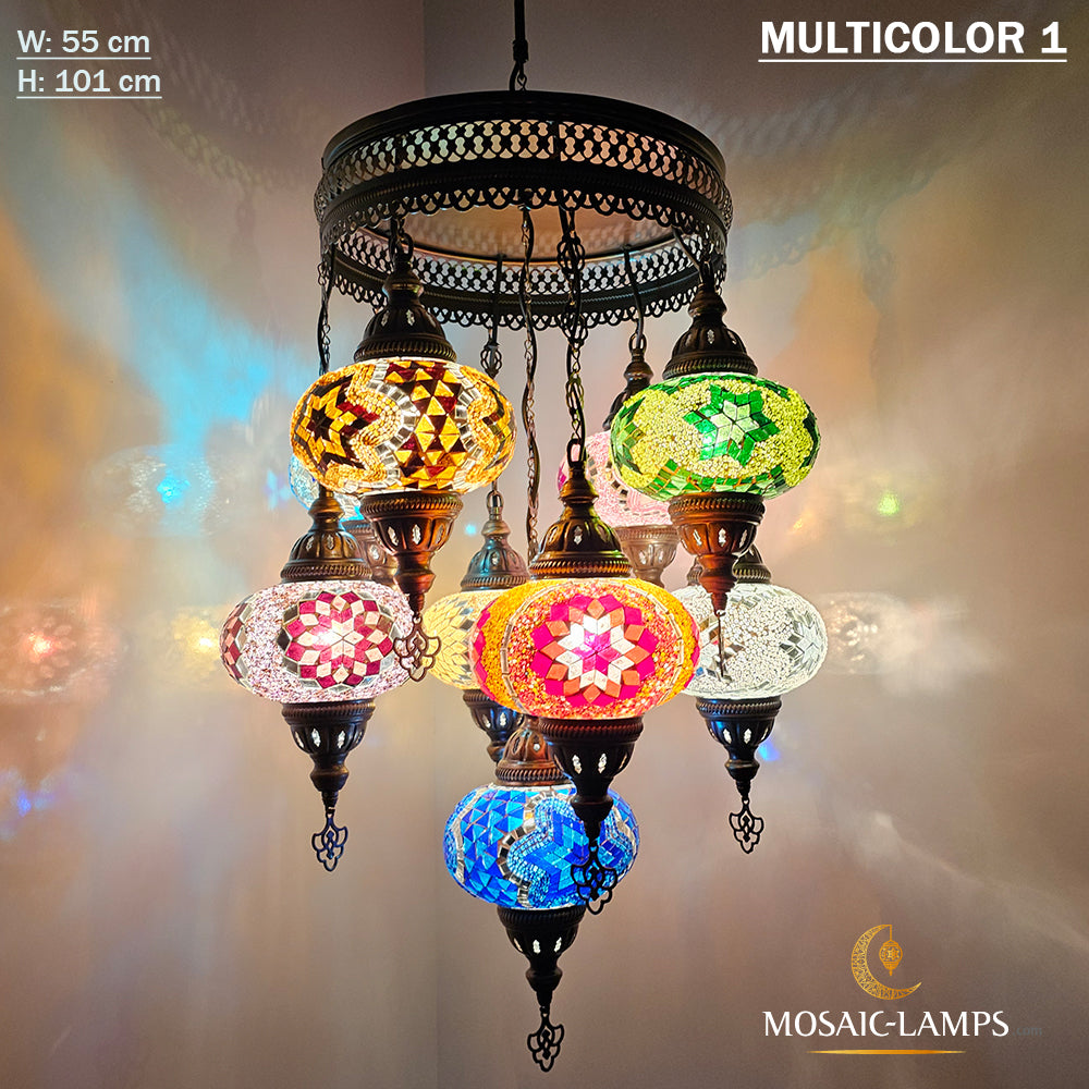 Set Of 9 Large Pasha Chandelier, 9 Globe Turkish Mosaic Chandelier Sets, Living Room Moroccan Pendant Mosaic Lights, Restaturant Lights.
