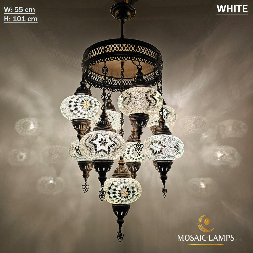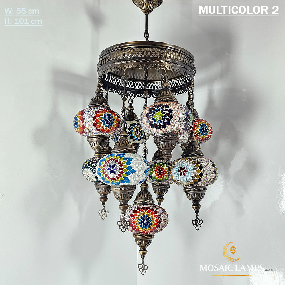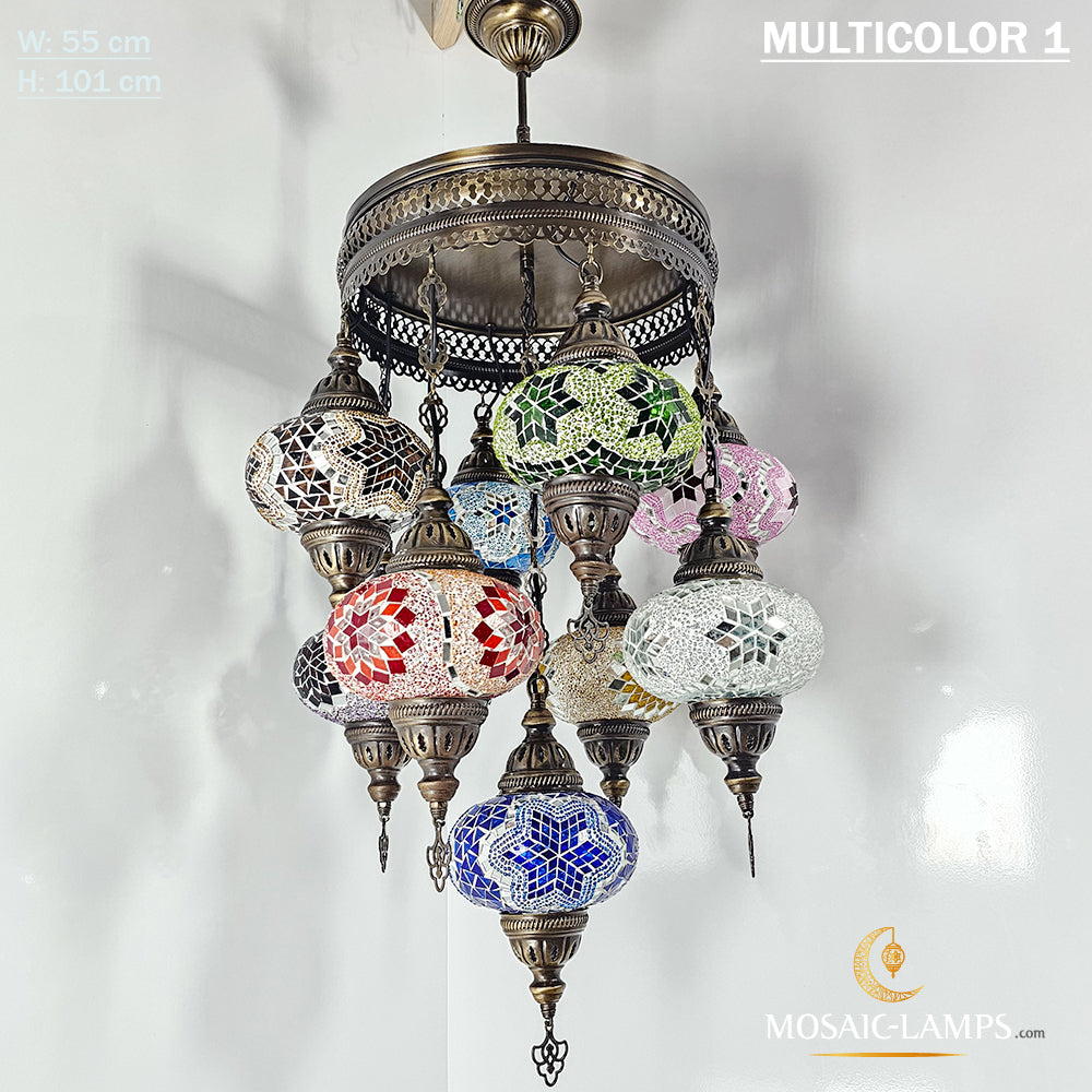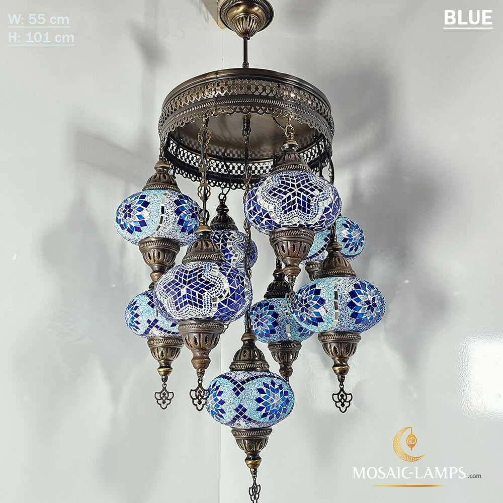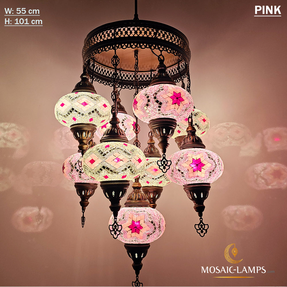 Set Of 9 Large Pasha Chandelier, 9 Globe Turkish Mosaic Chandelier Sets, Living Room Moroccan Pendant Mosaic Lights, Restaturant Lights.