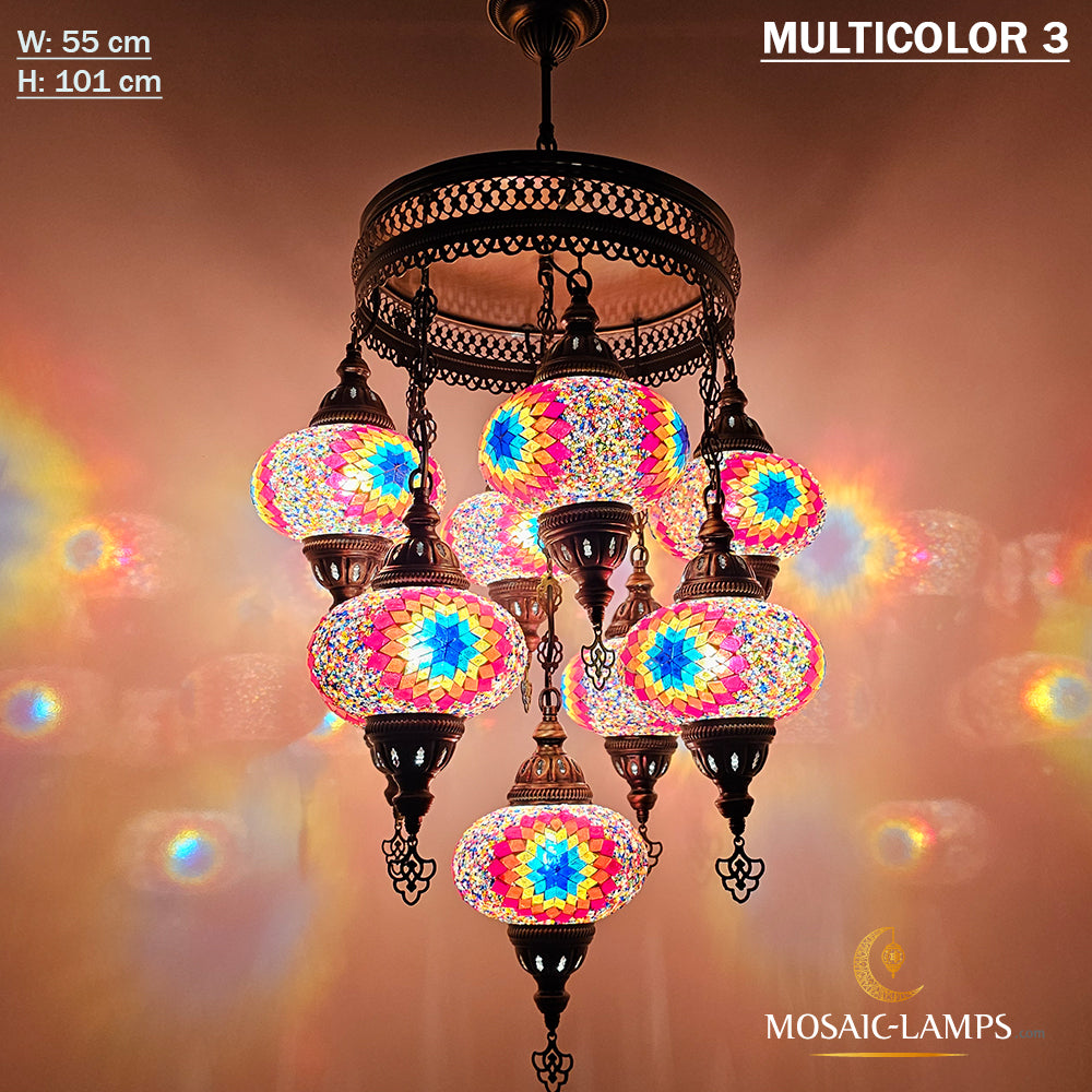 9 Large Globe Turkish Chandelier, Mixed Ball Handmade Mosaic Lighting Sets, Living Room Moroccan Pendant Mosaic Lights, Restaturant Lights