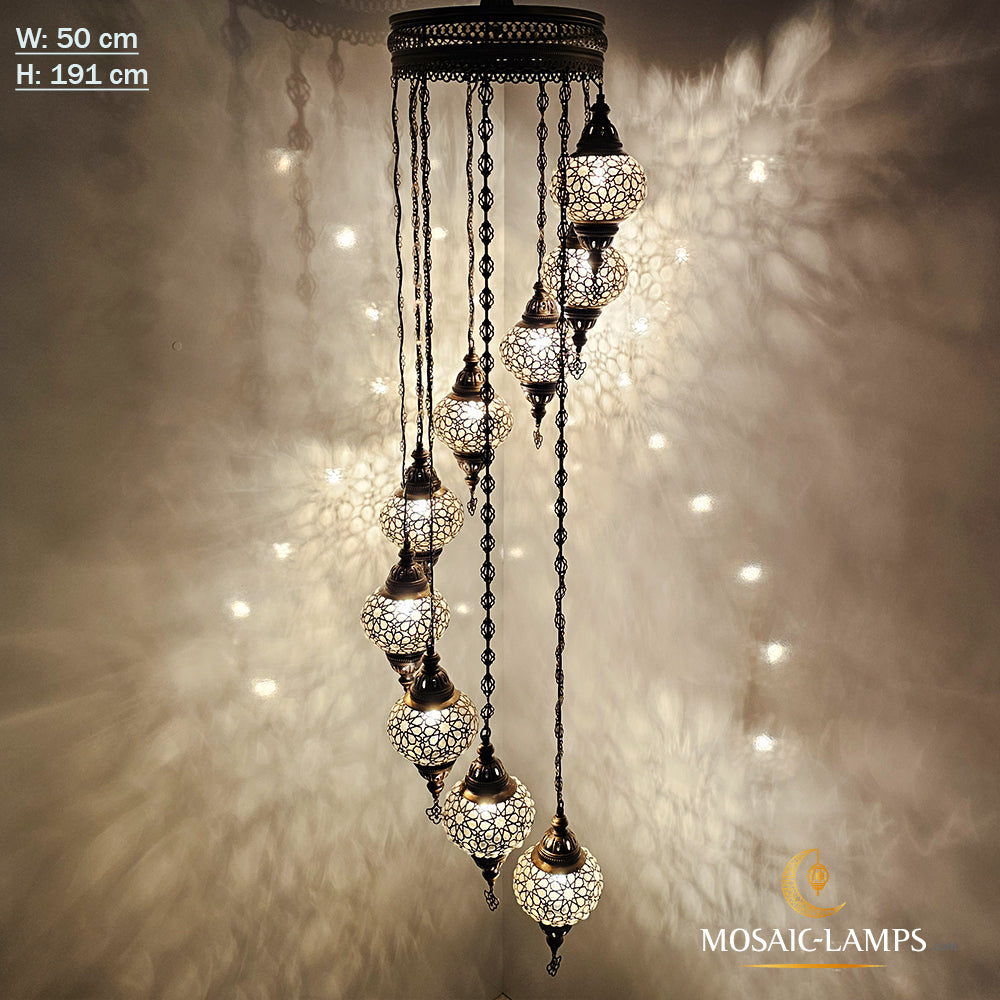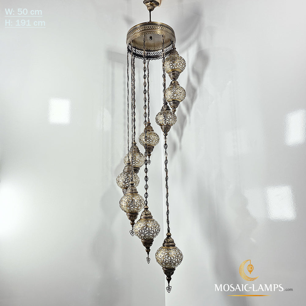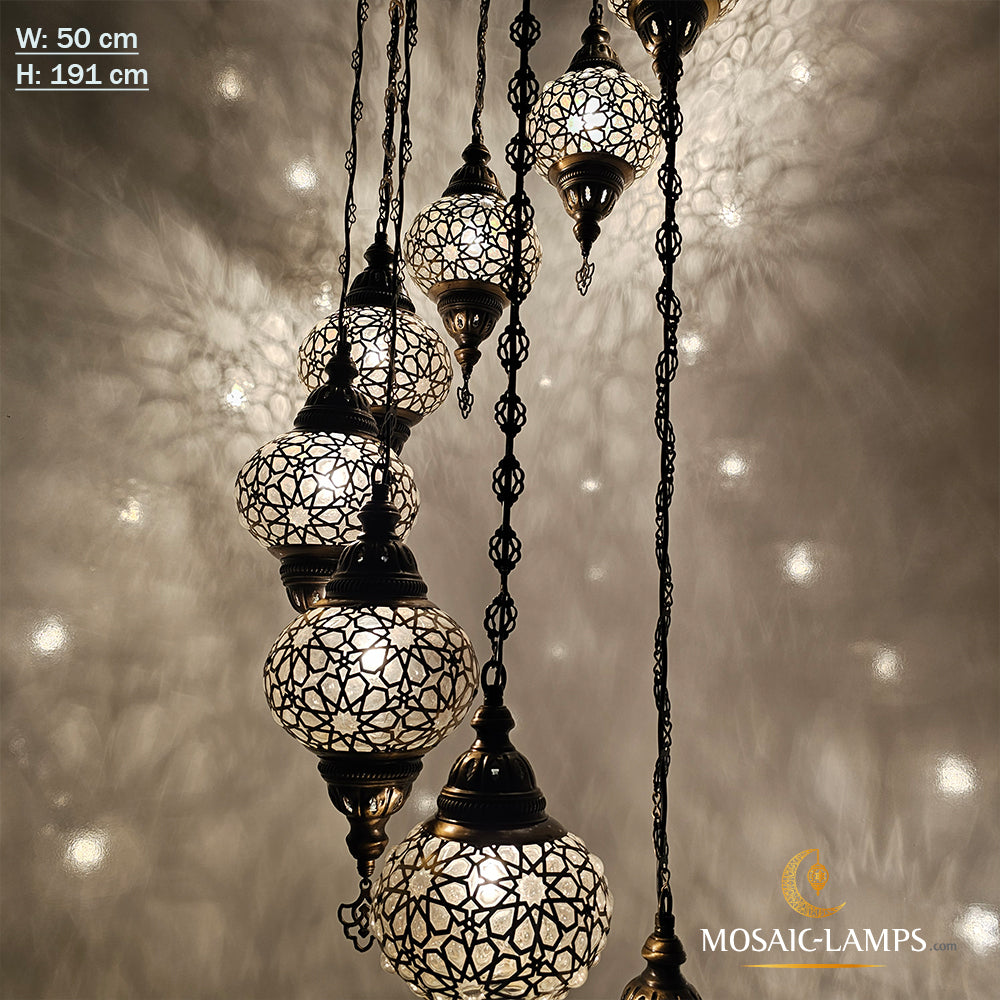 9 Globe Spiral Laser Ottoman Chandeliers, Blown Globe Lamps, Moroccan Chandeliers, Turkish Pendant Ceiling, Restaurant, Living Room Lighting.