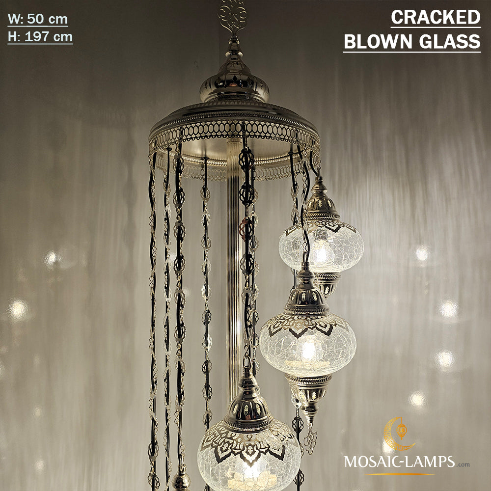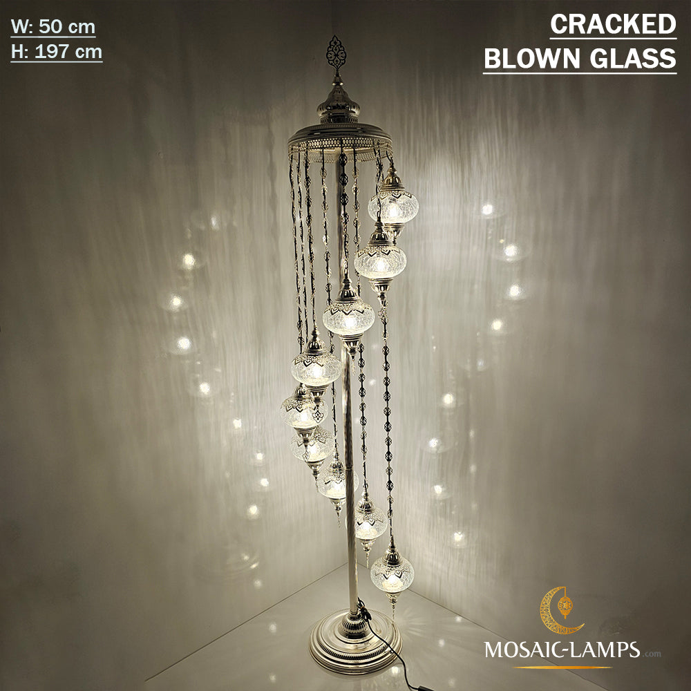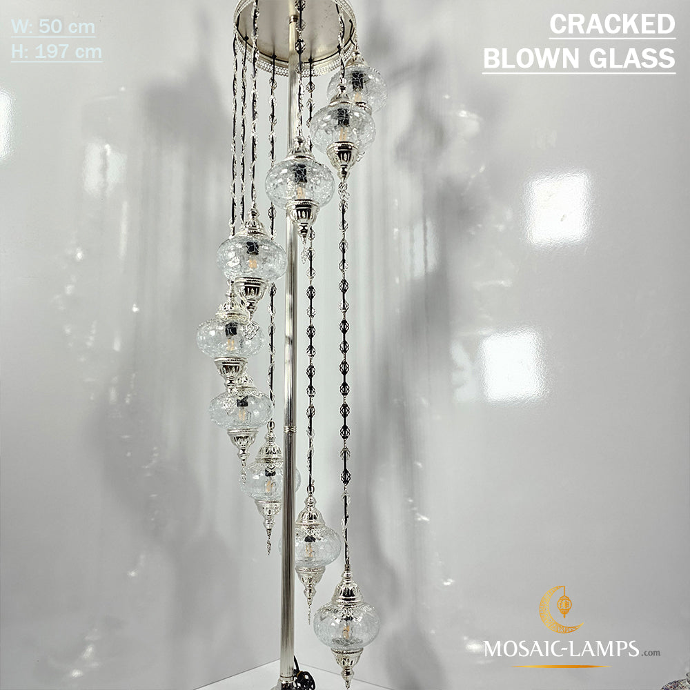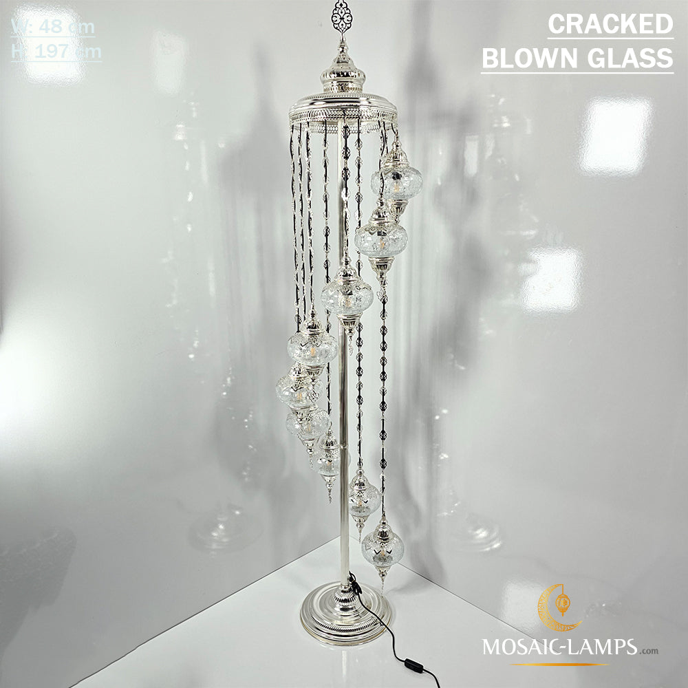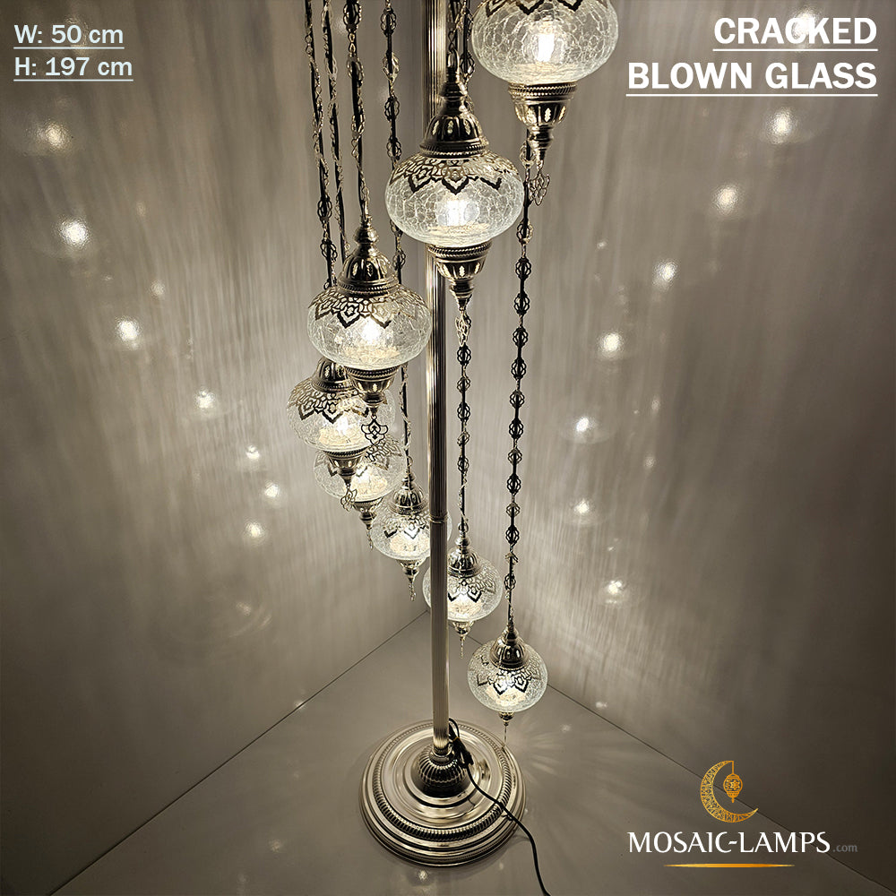9 Medium Clear Globe Turkish Floor Lamps, Handmade Cracked Blown Glass Lights, Moroccan, Ottoman Traditional, Office, Restaurant, Bar, Cafe Corner Lamps.