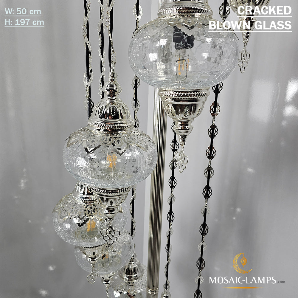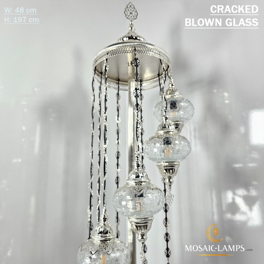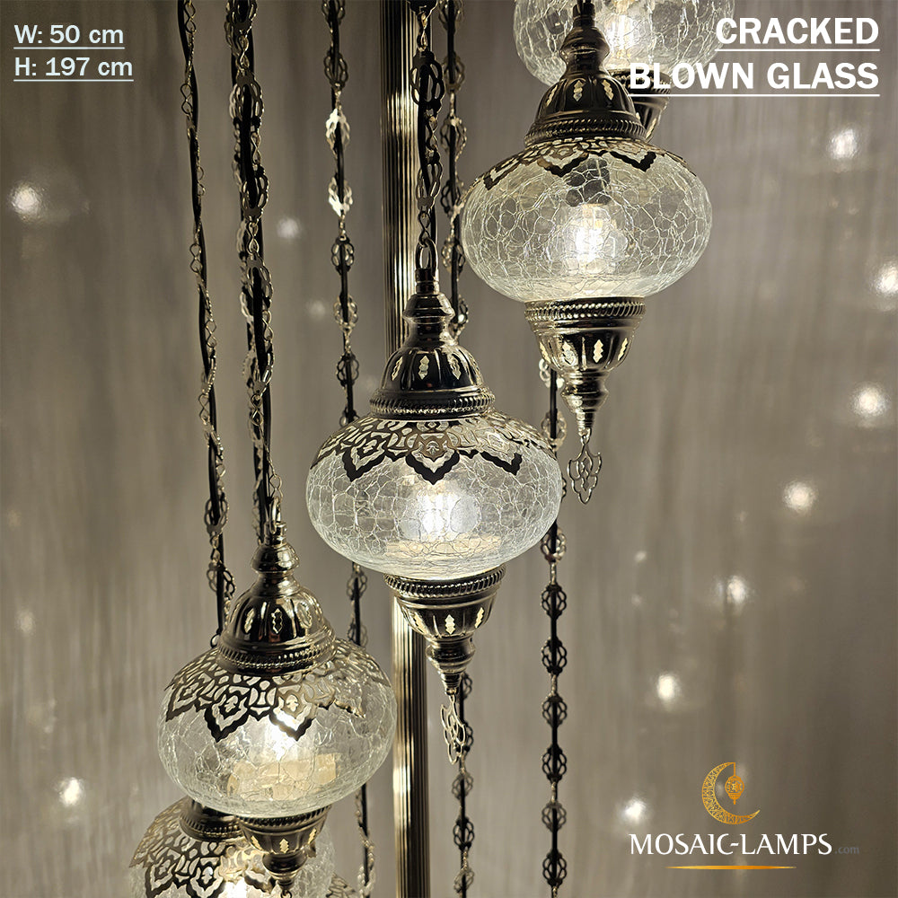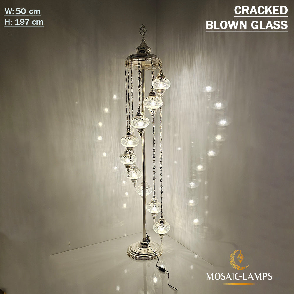 9 Cracked Clear Globe Turkish Floor Lamps, Handmade Mosaic Lights, Moroccan, Ottoman Traditional, Office, Restaurant, Bar, Cafe Corner Lamps