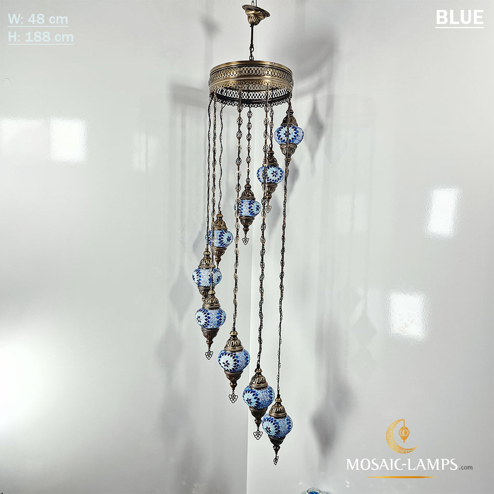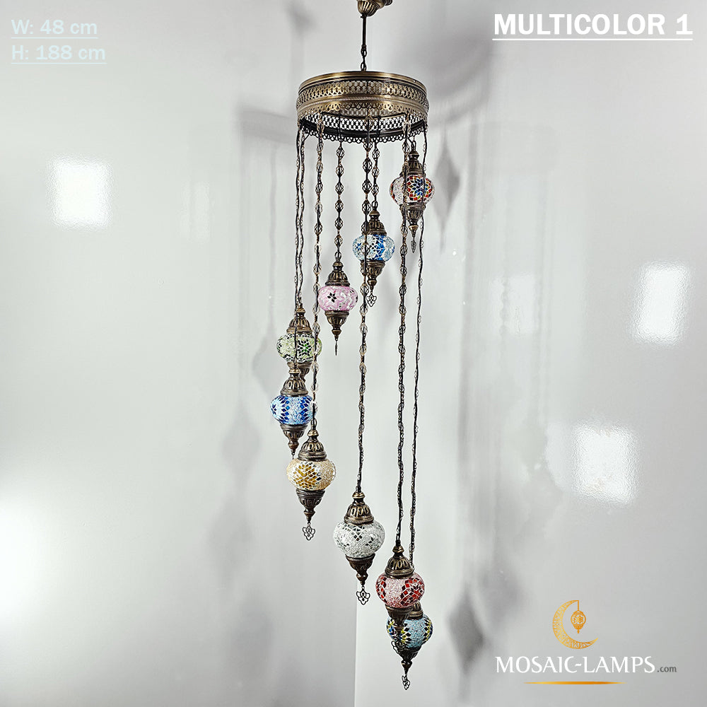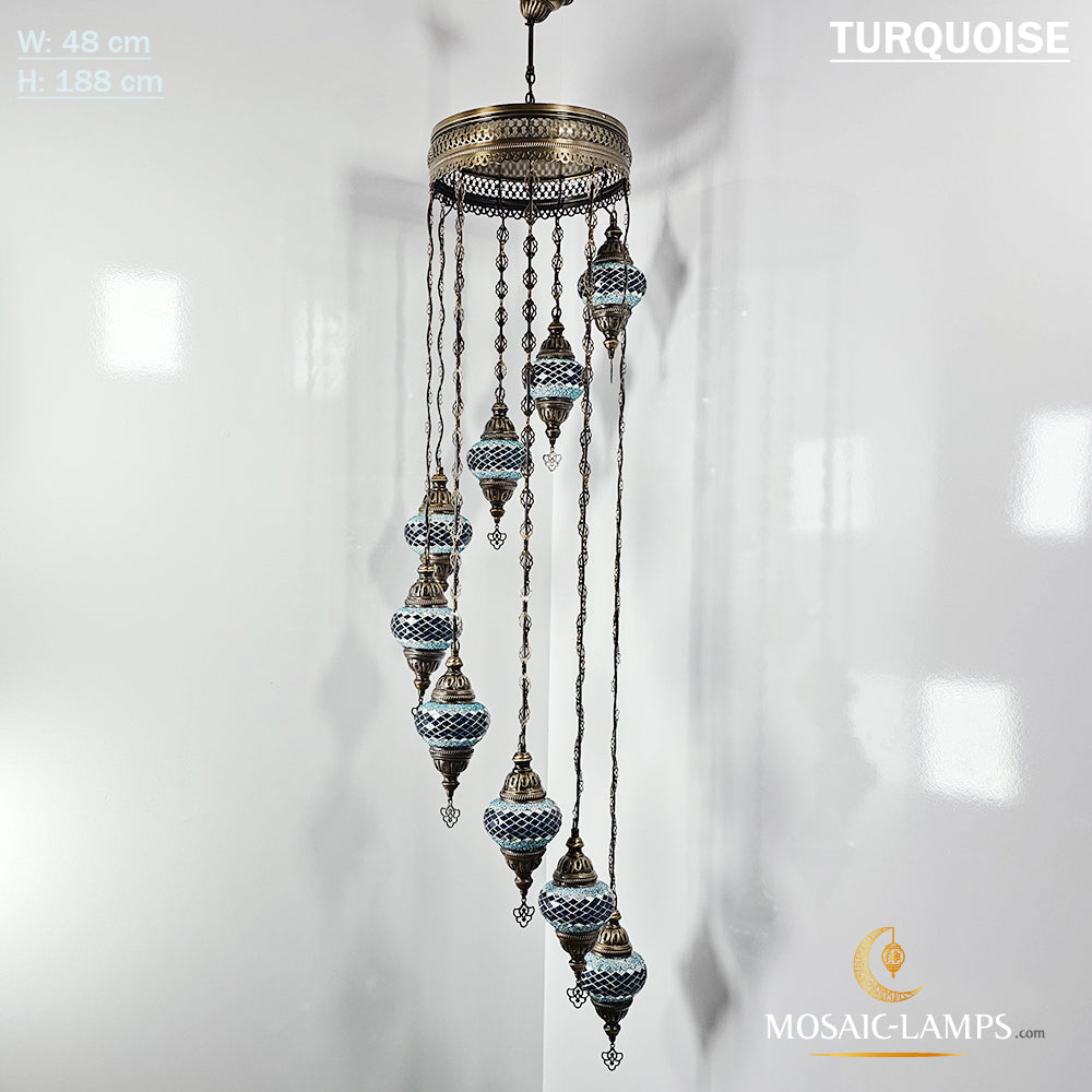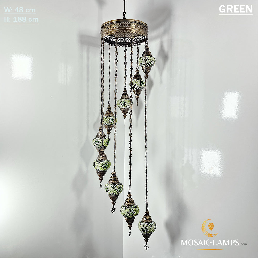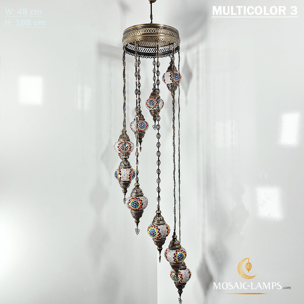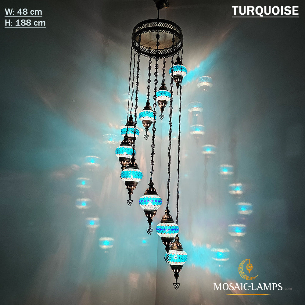 Set Of 9 Medium Spiral Chandelier, 9 Globe Turkish Mosaic Chandelier Sets, Living Room Moroccan Pendant Mosaic Lights, Restaturant Lights.