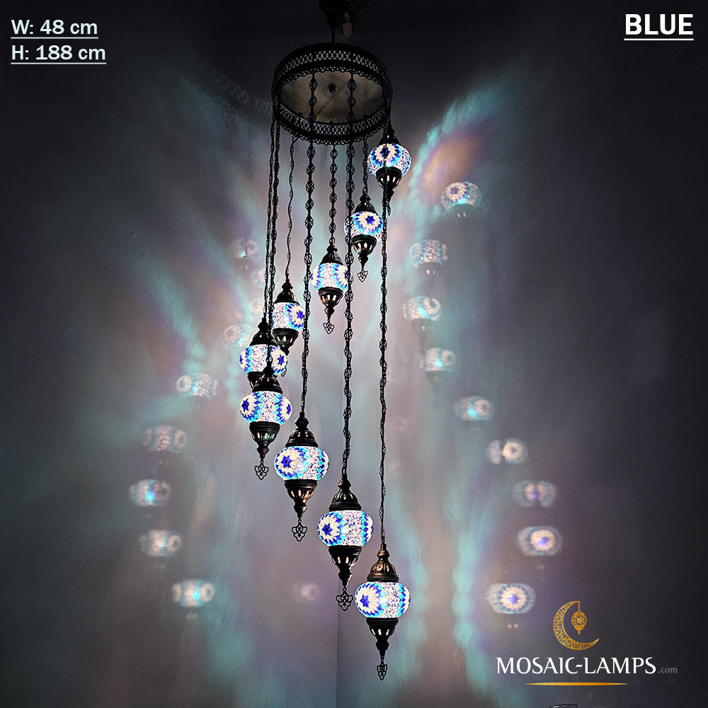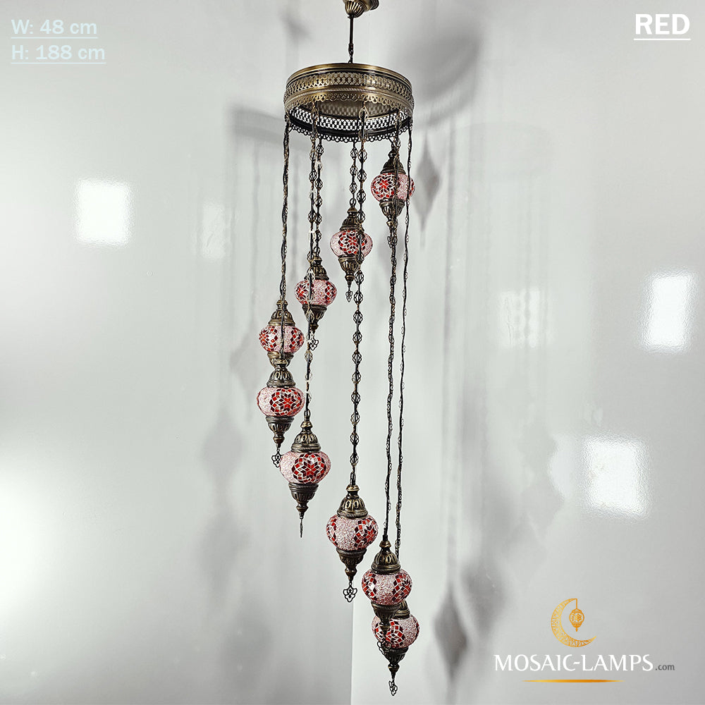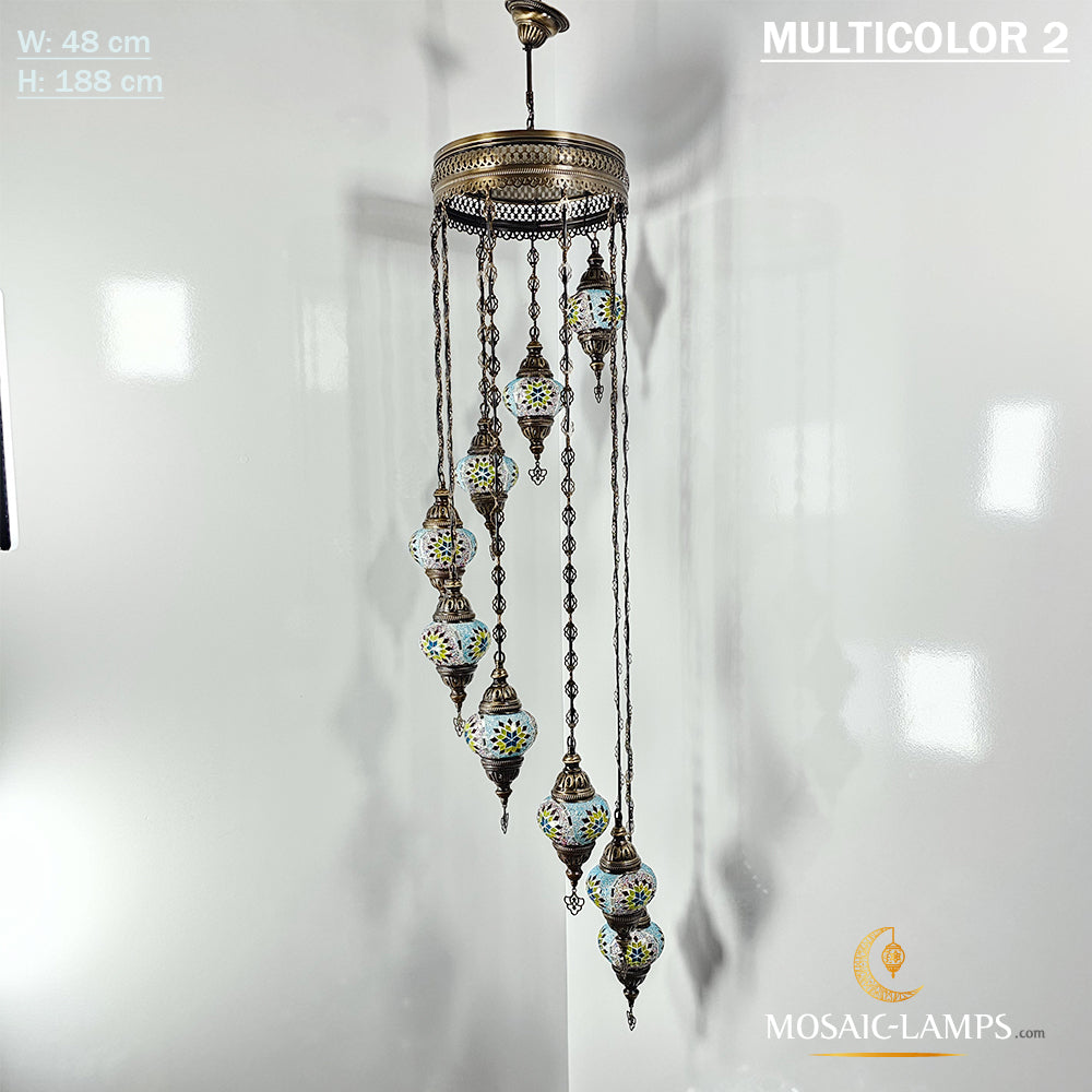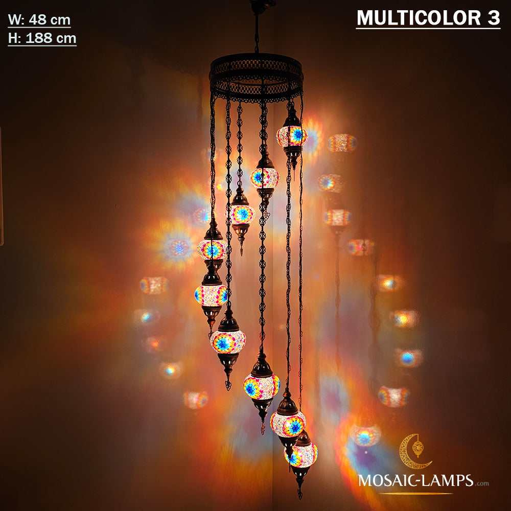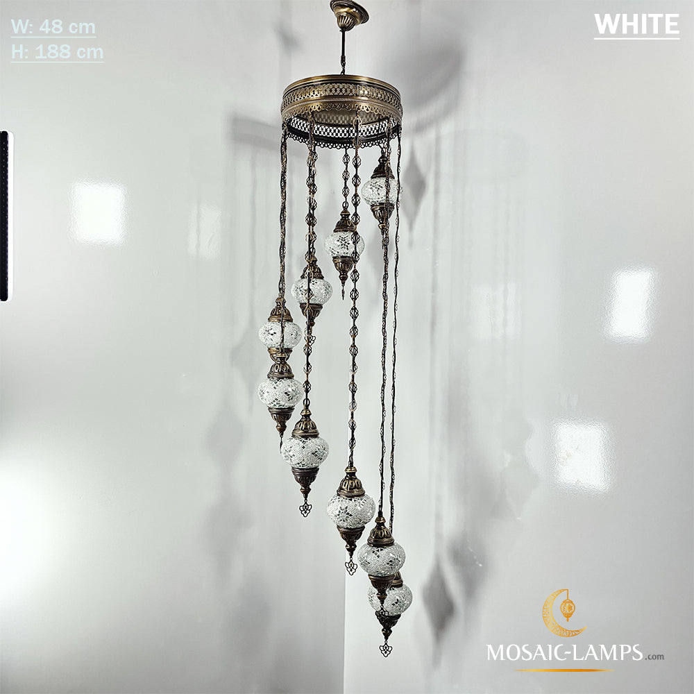 Set Of 9 Medium Spiral Chandelier, 9 Globe Turkish Mosaic Chandelier Sets, Living Room Moroccan Pendant Mosaic Lights, Restaturant Lights.