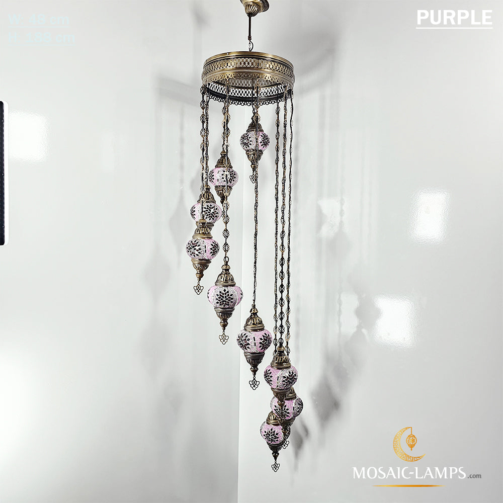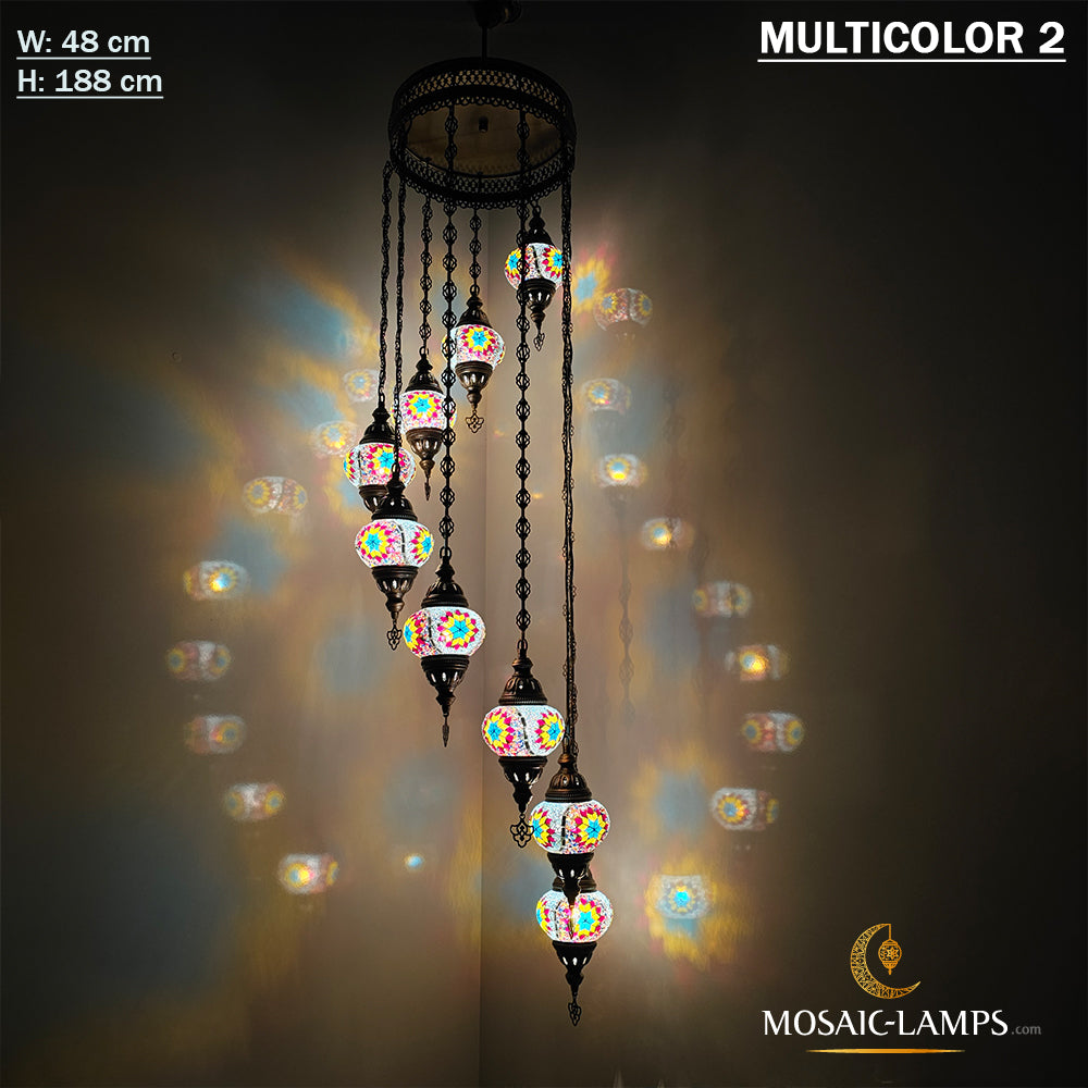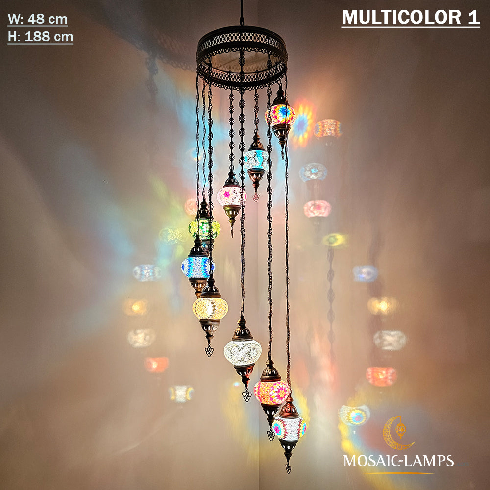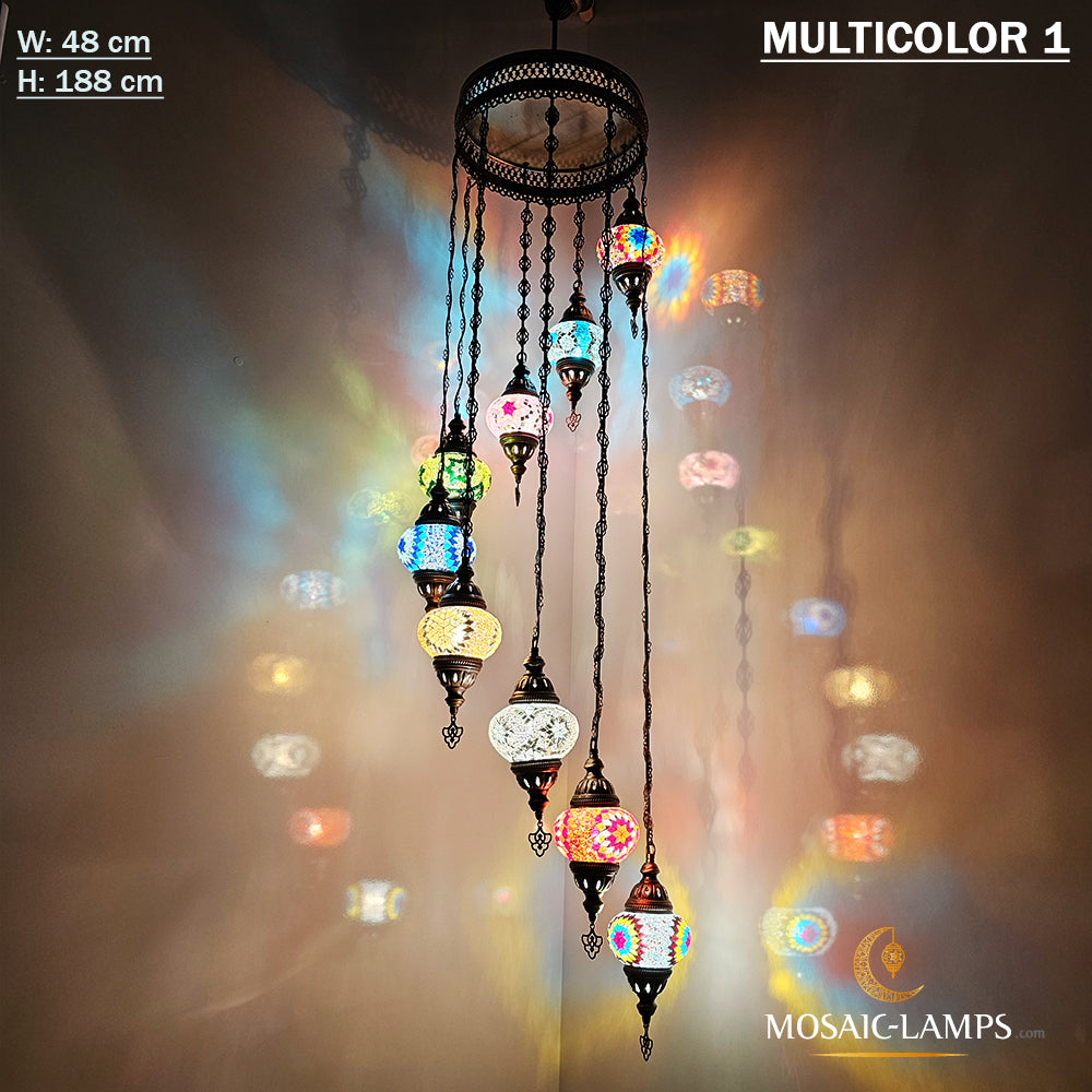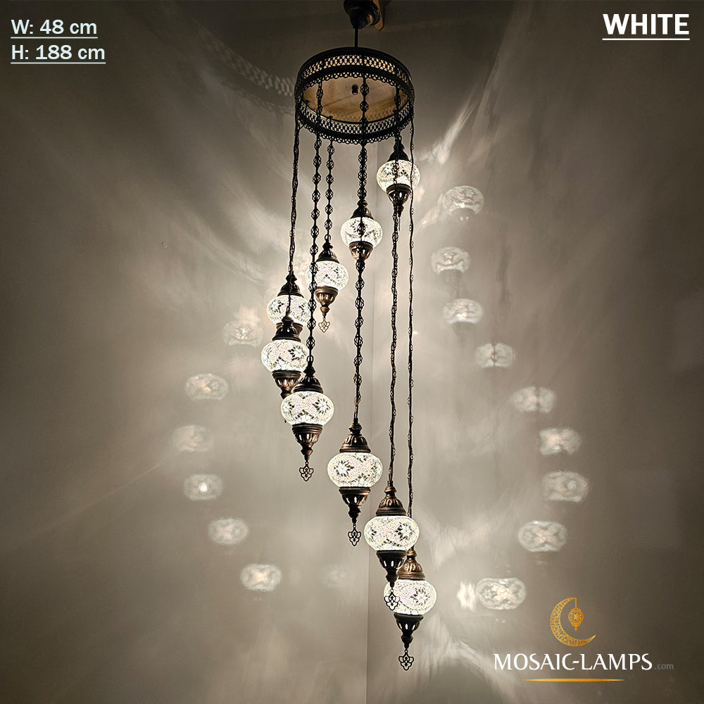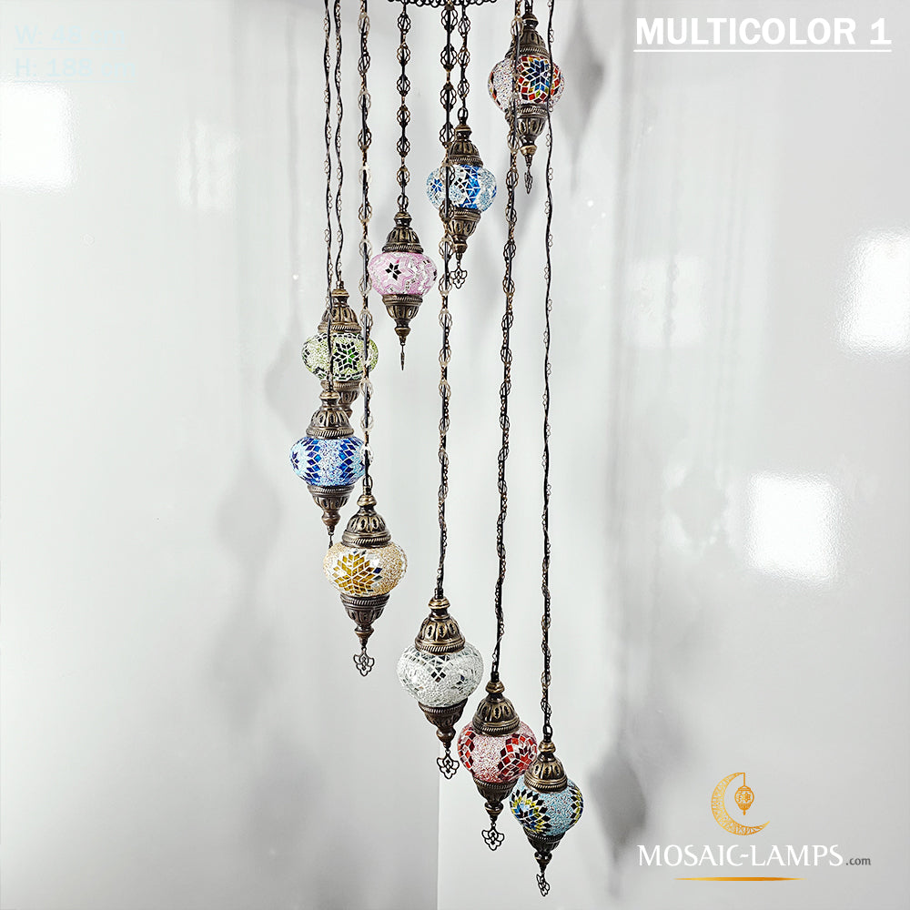Set Of 9 Medium Spiral Chandelier, 9 Globe Turkish Mosaic Chandelier Sets, Living Room Moroccan Pendant Mosaic Lights, Restaturant Lights.