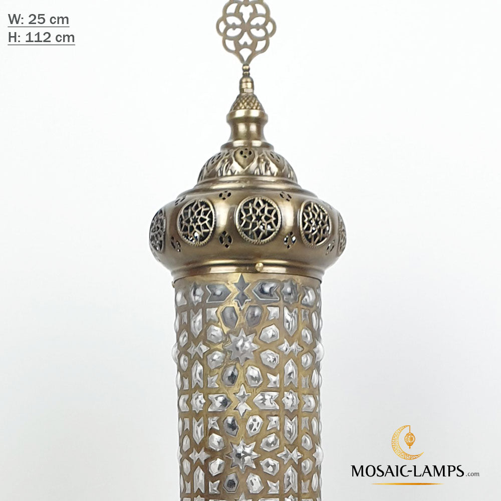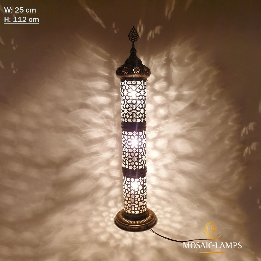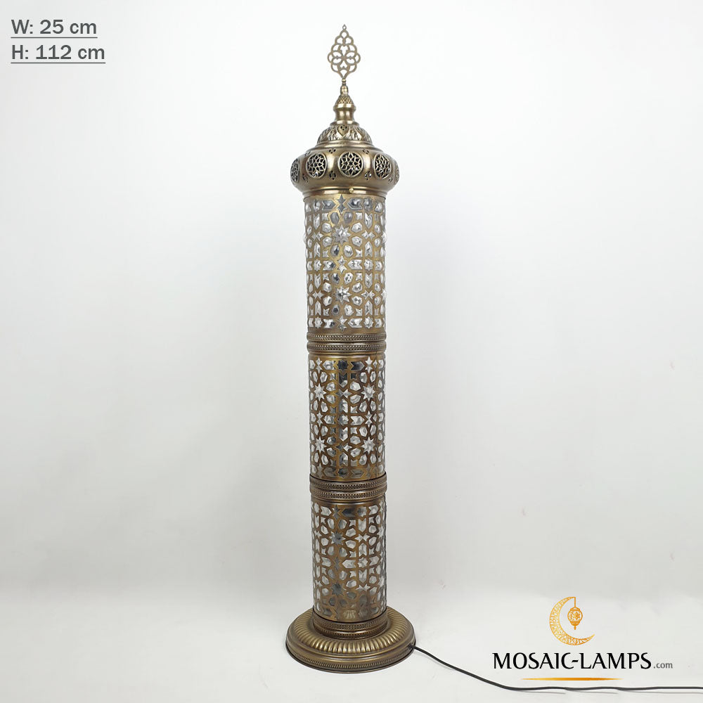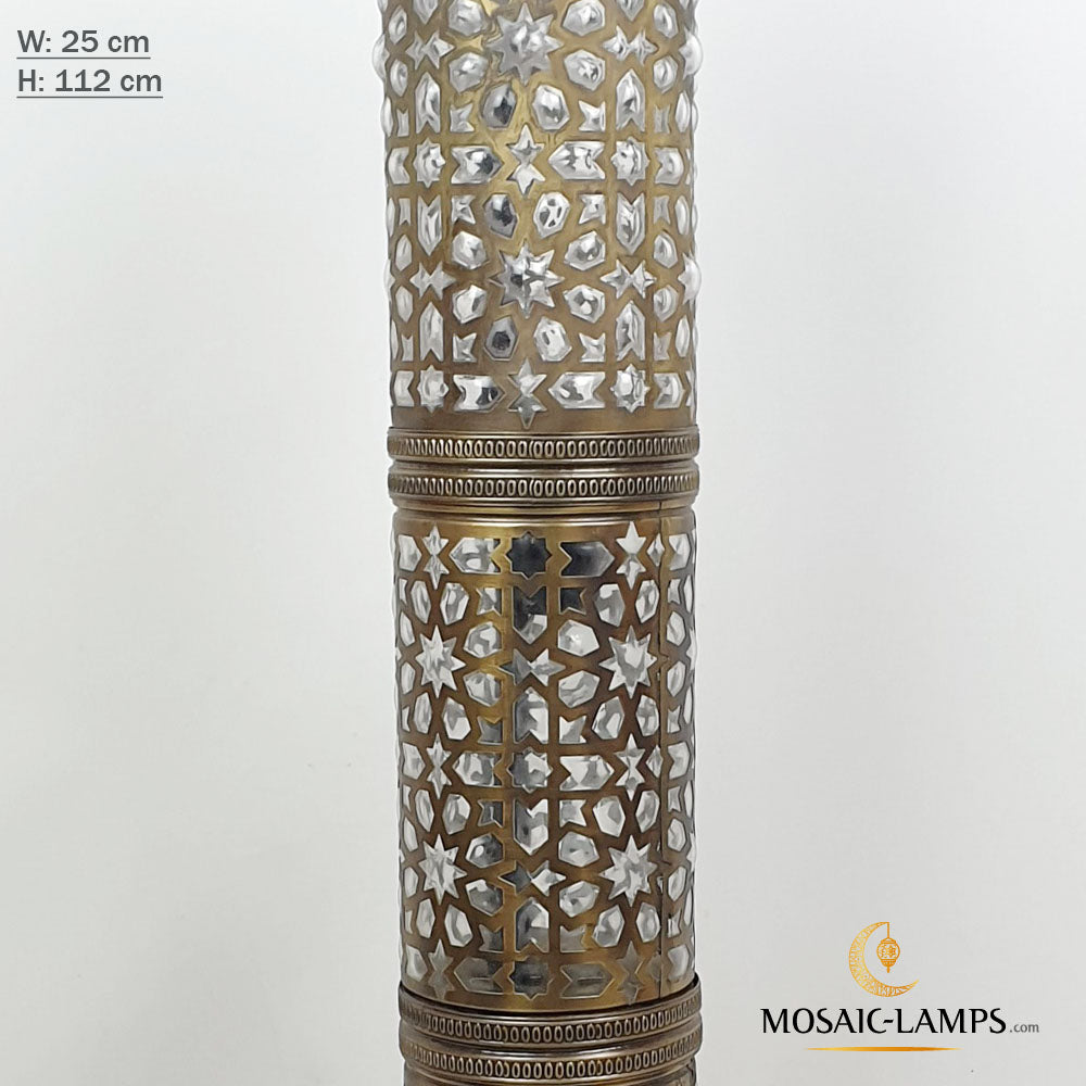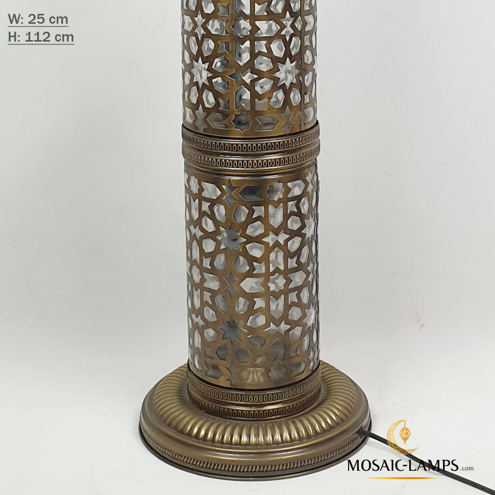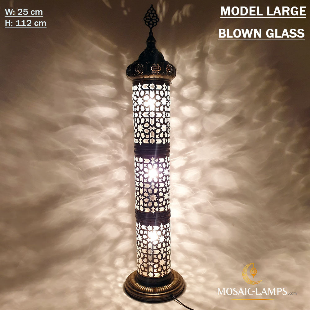 Andalusian Large Floor Lamp, Ottoman Cylinder Lamp with Blown Glass, Authentic Moroccan Floor Lamp Bedroom, Living Room, Restaurant, Hotel.