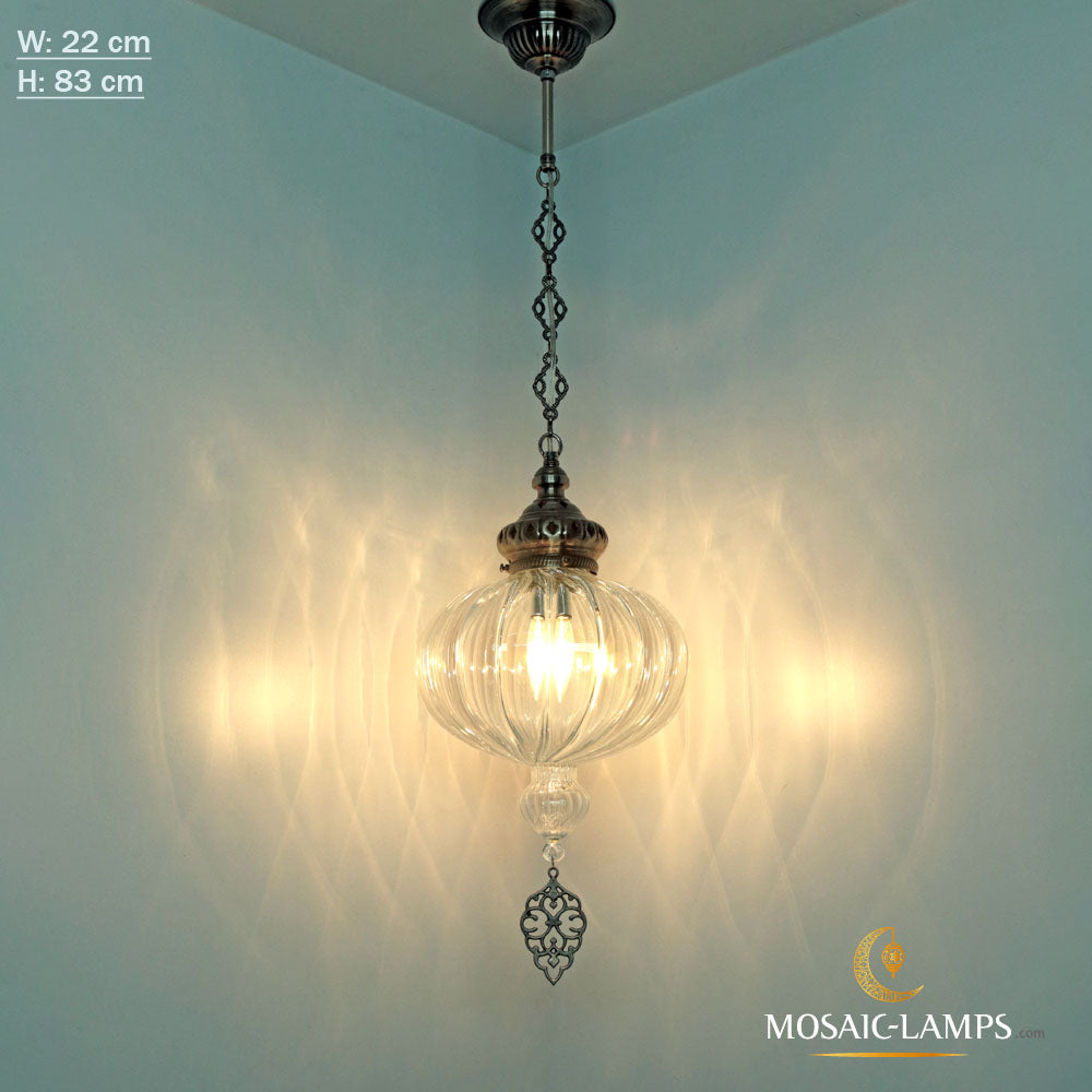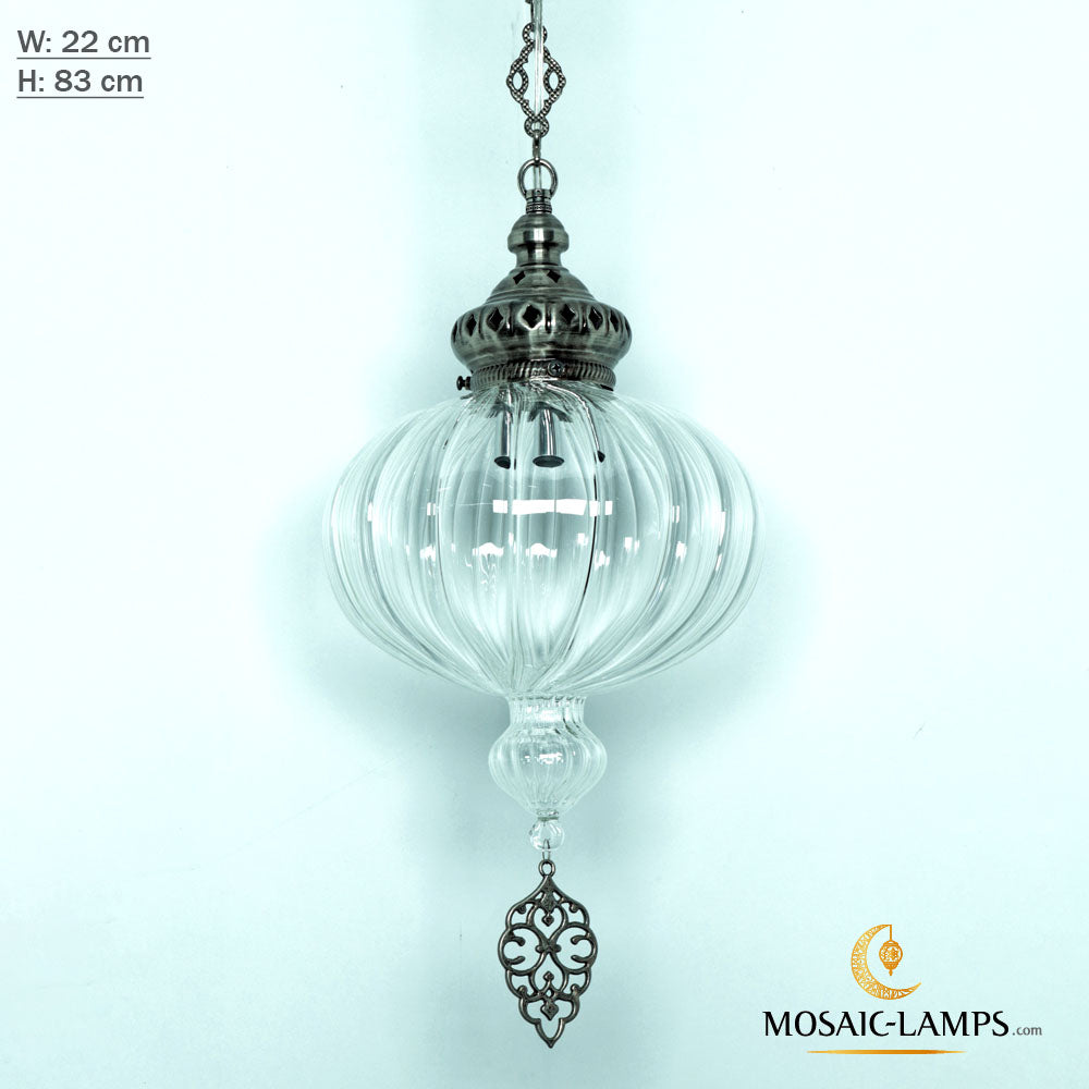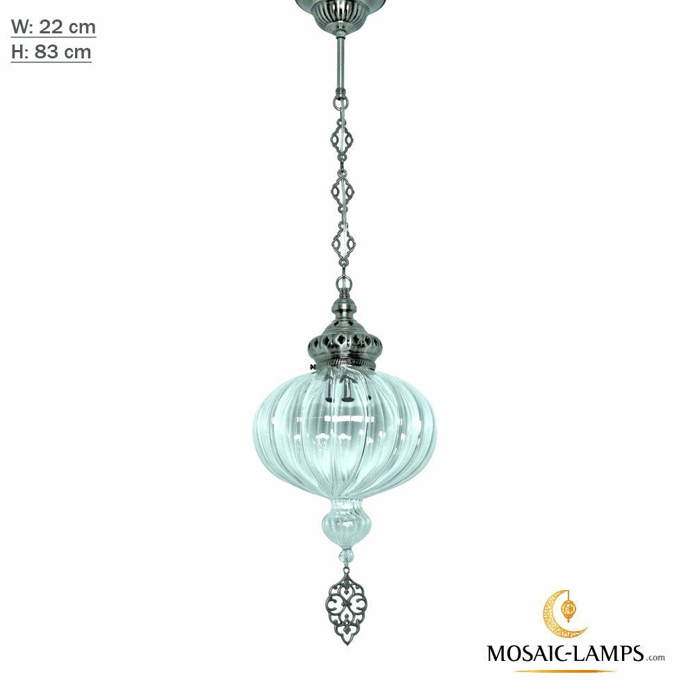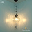 Antique silver metal clear pyrex globe X Large pendant lights, single chain optical clear glass hanging lamp, Ottoman handmade authentic ceiling lights.