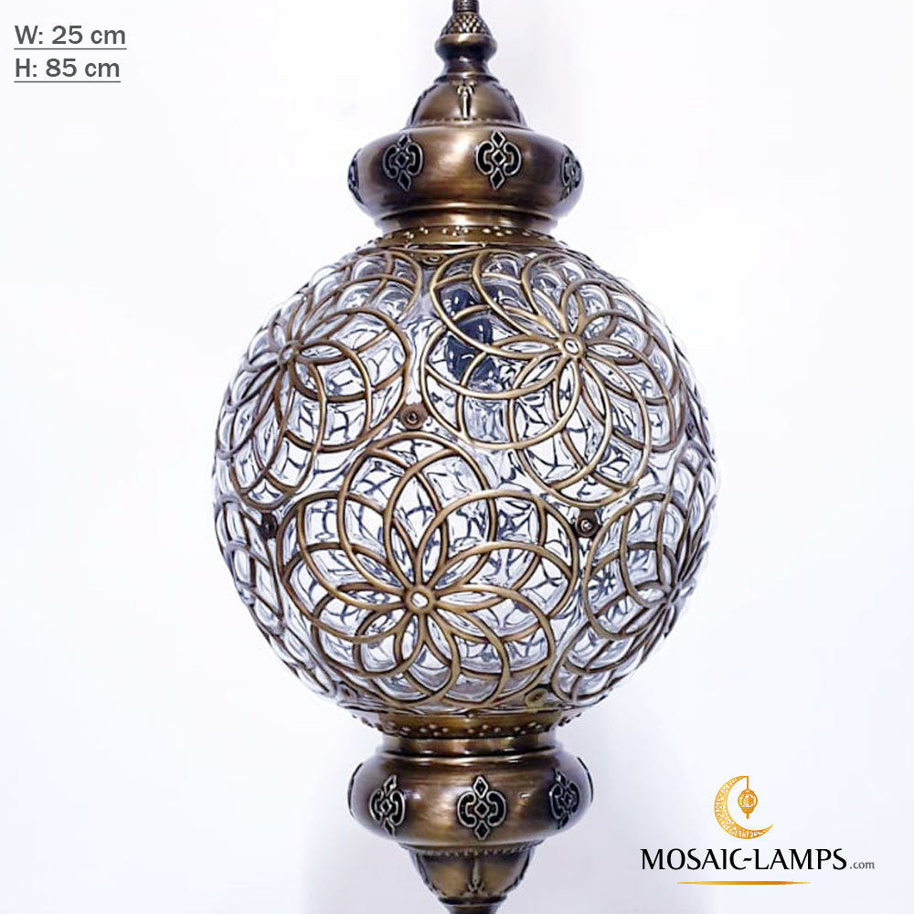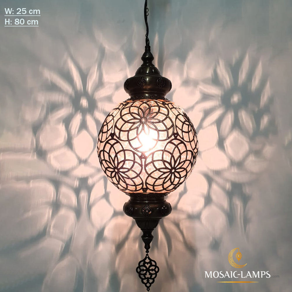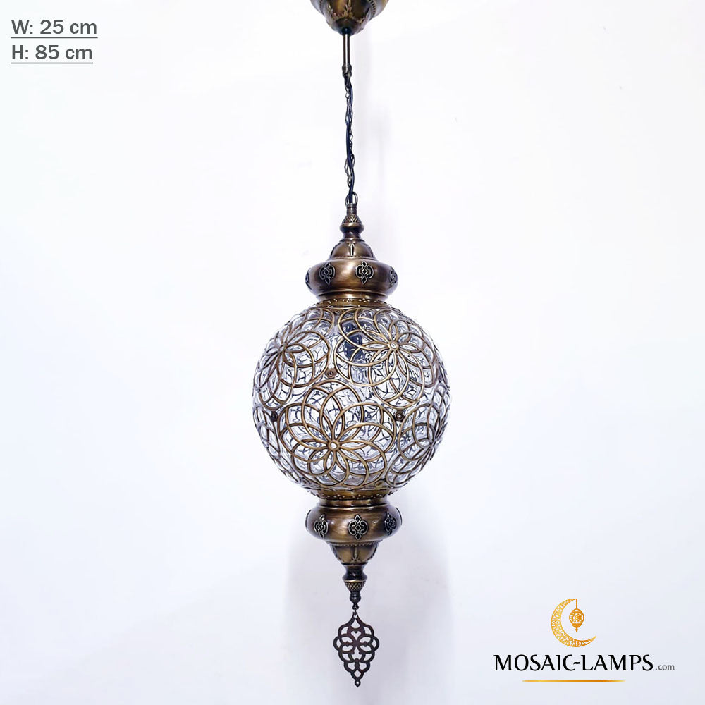 Blown Glass 25 cm Globe Pendant Lamp Moroccan Ceiling Lamp, Laser Metal Blown Glass Ball Ottoman Lamp, Living Room, Restaurant, Bedroom