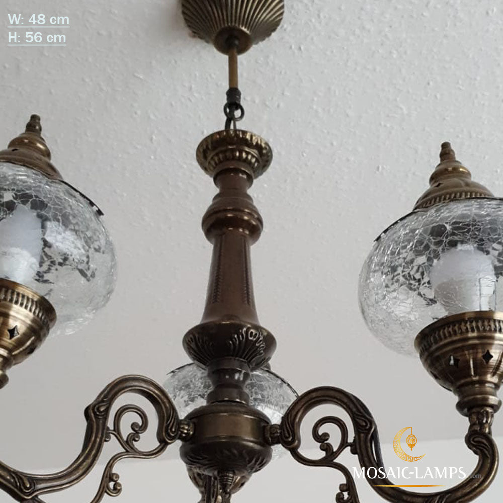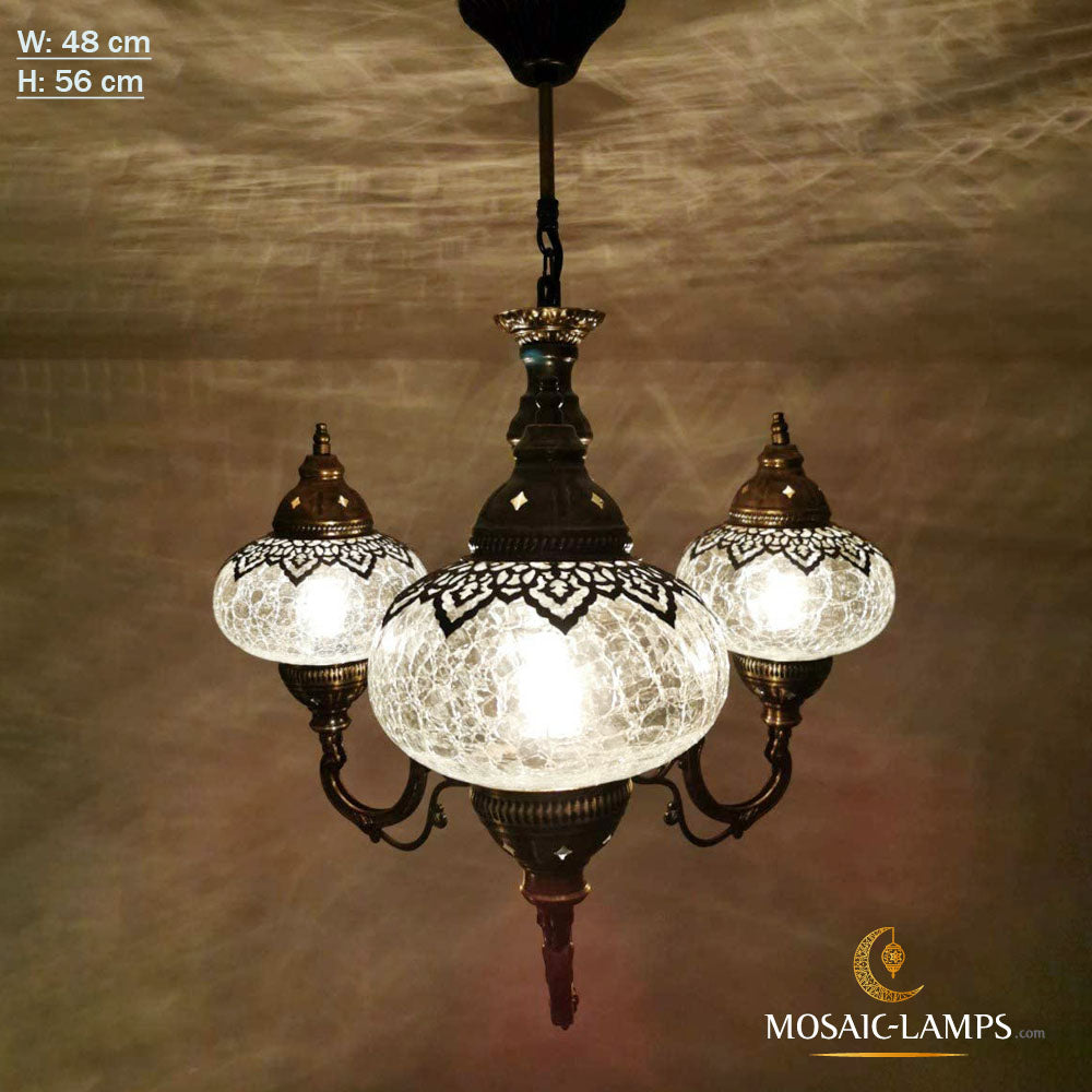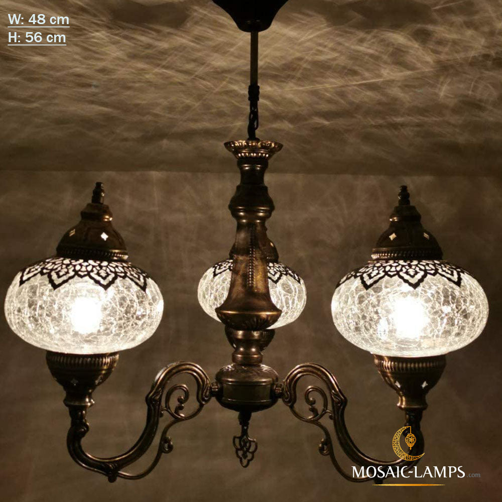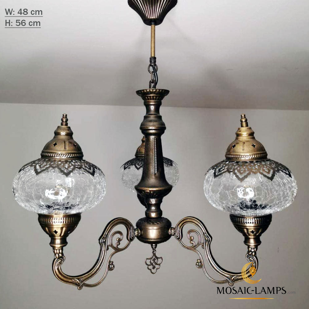 Clear 3 Globe Handmade Turkish Moroccan Arabian Eastern Bohemian Crackle Glass Ceiling Hanging Chandelier Lamps Home Decor, Living Room