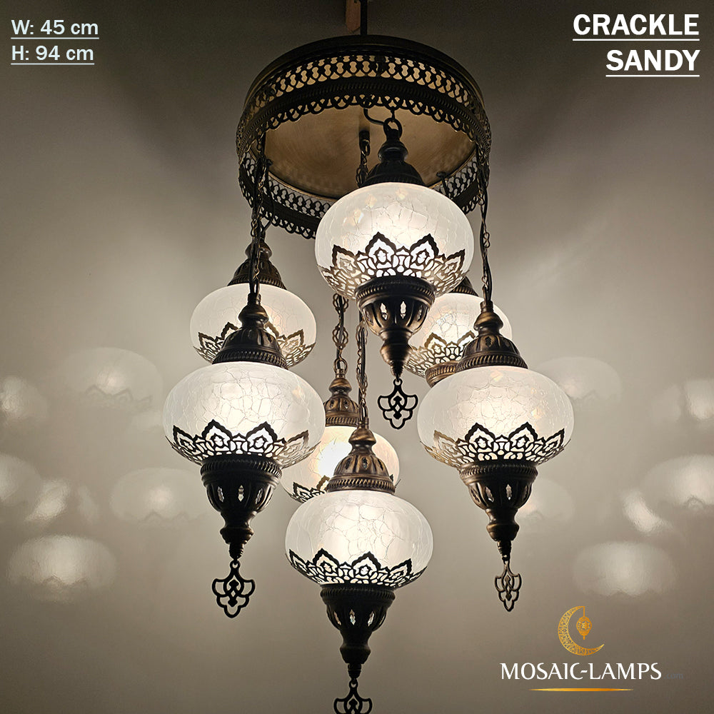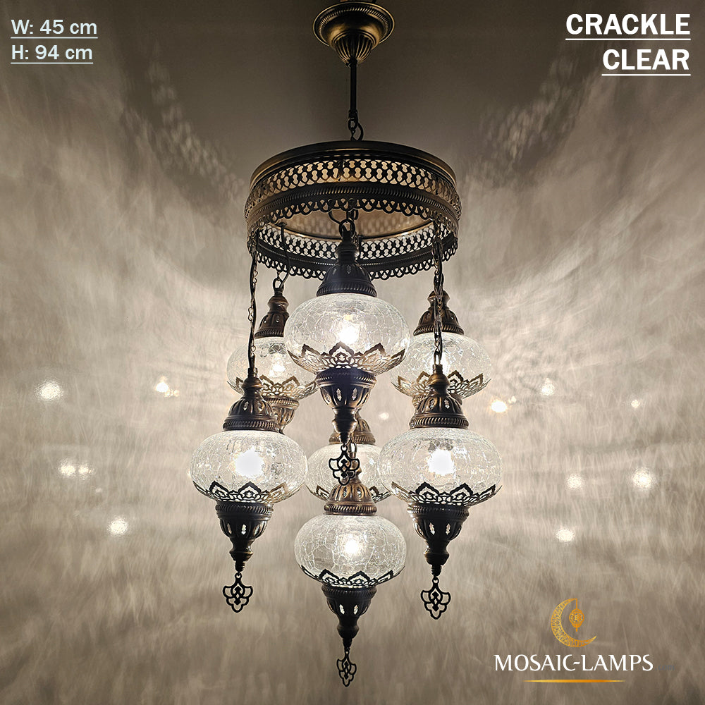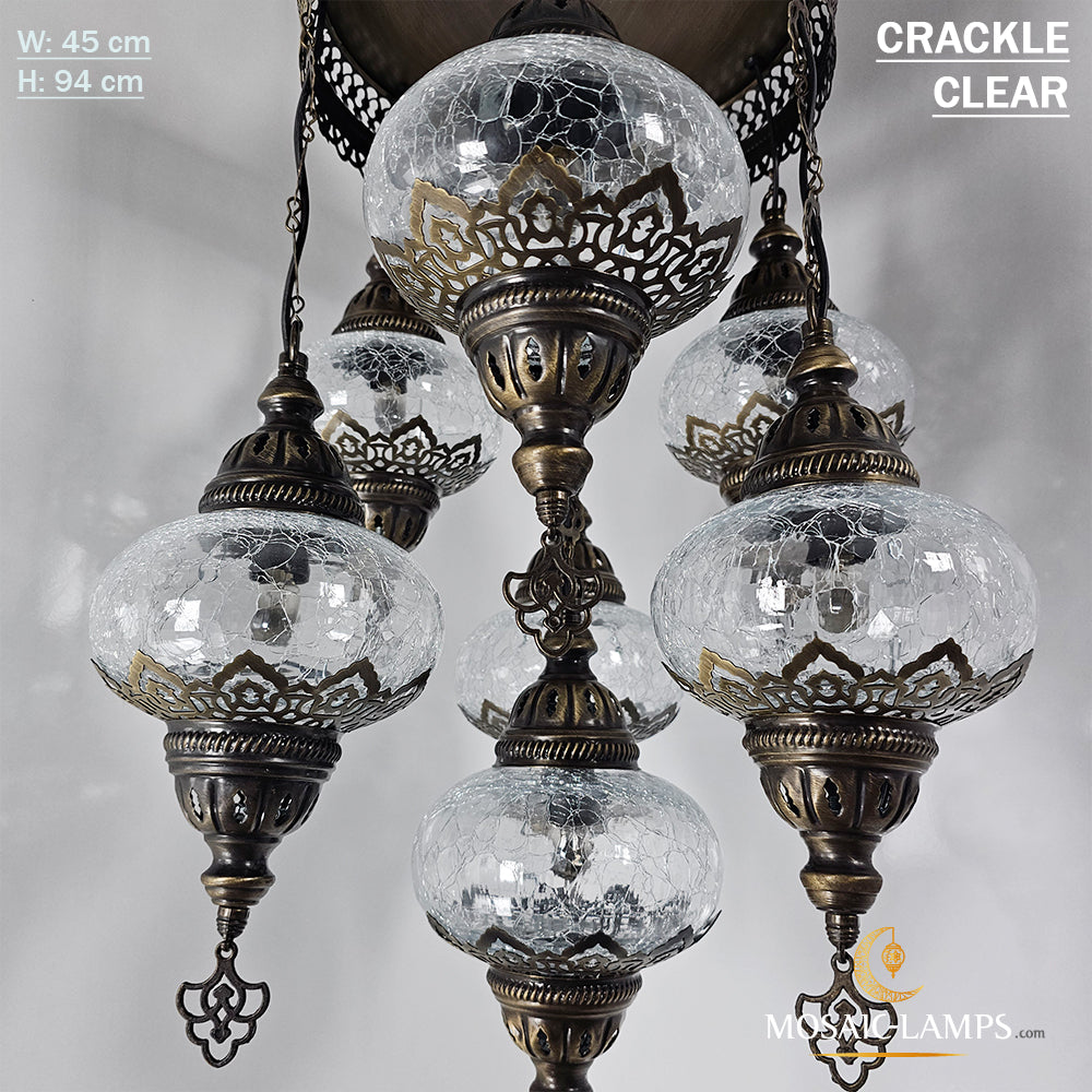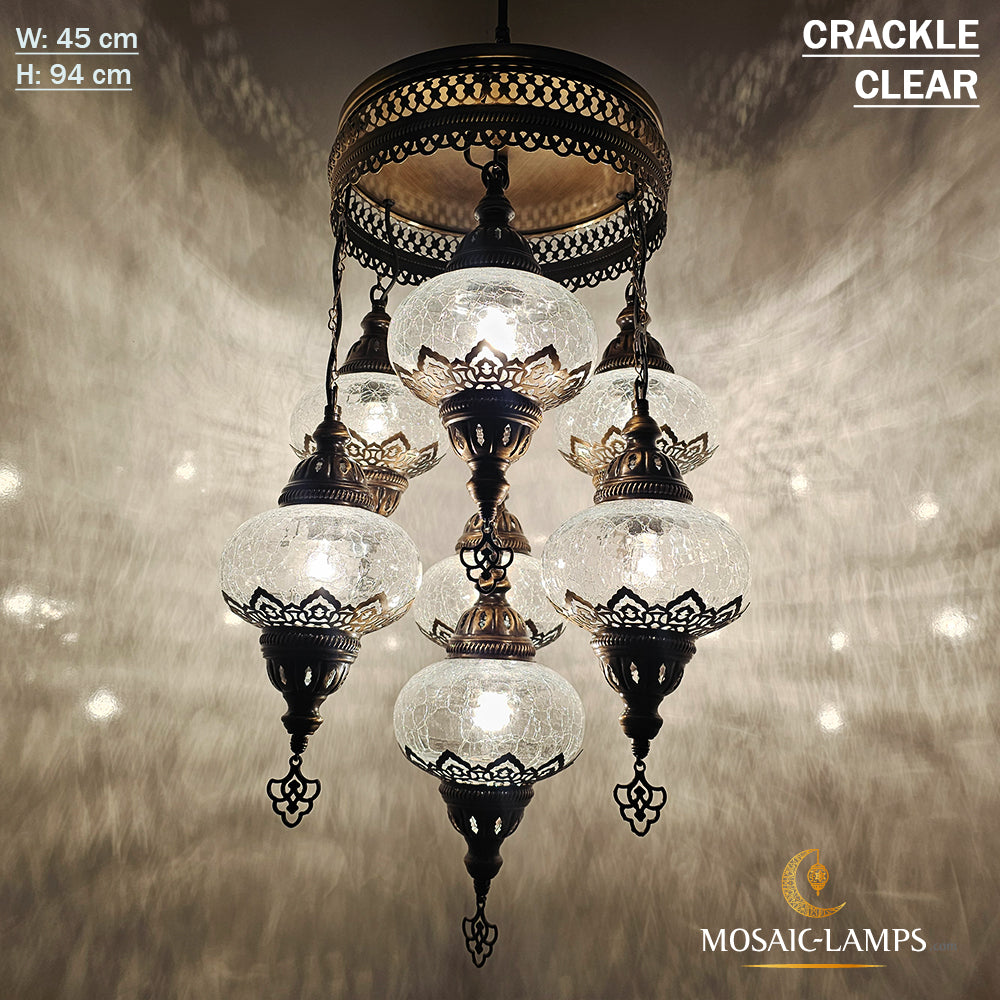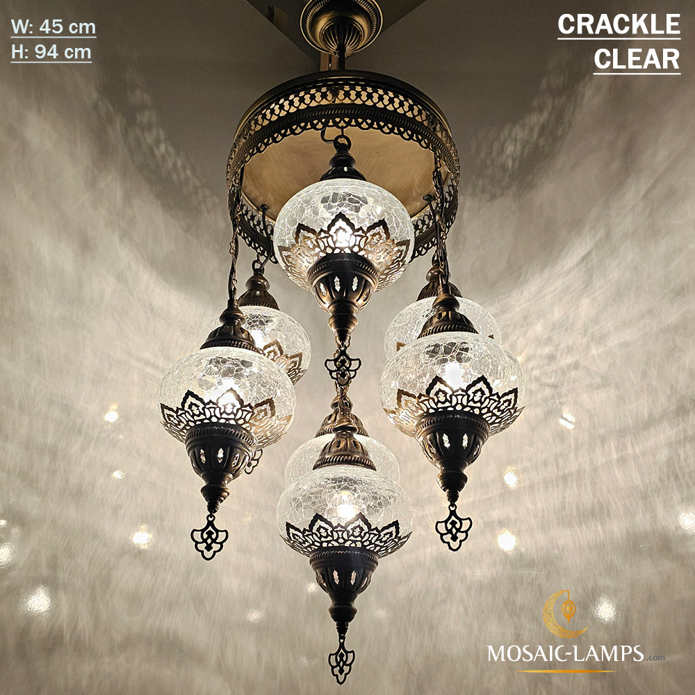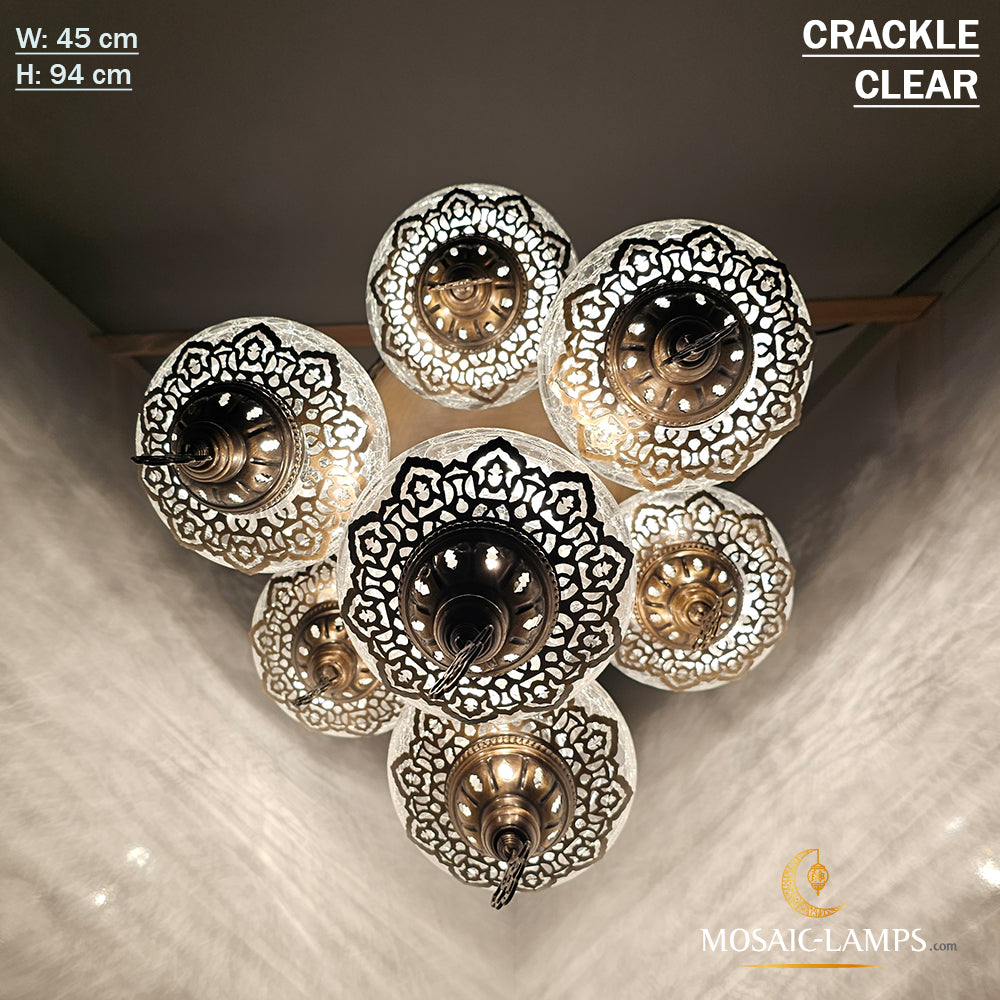 Clear 7 Globe Chandelier, Crackle Globe Set Of 7 Mixed Chandelier, Living Room Chandelier, Kitchen Chandelier, Moroccan Stair Chandelier