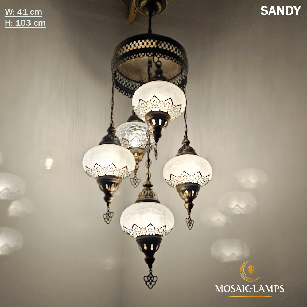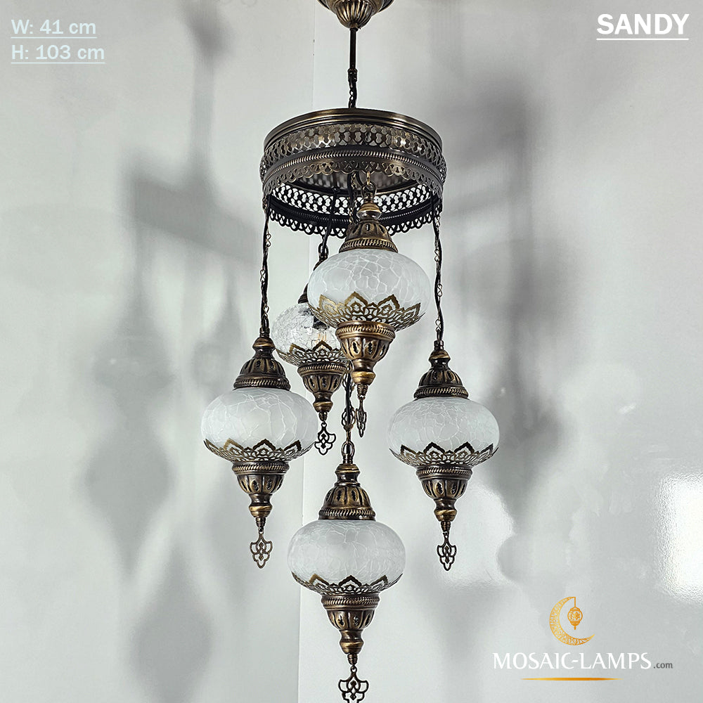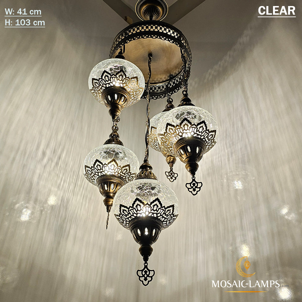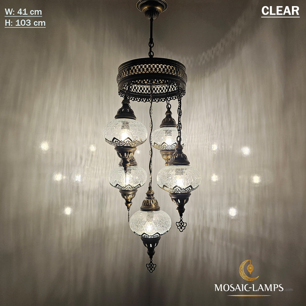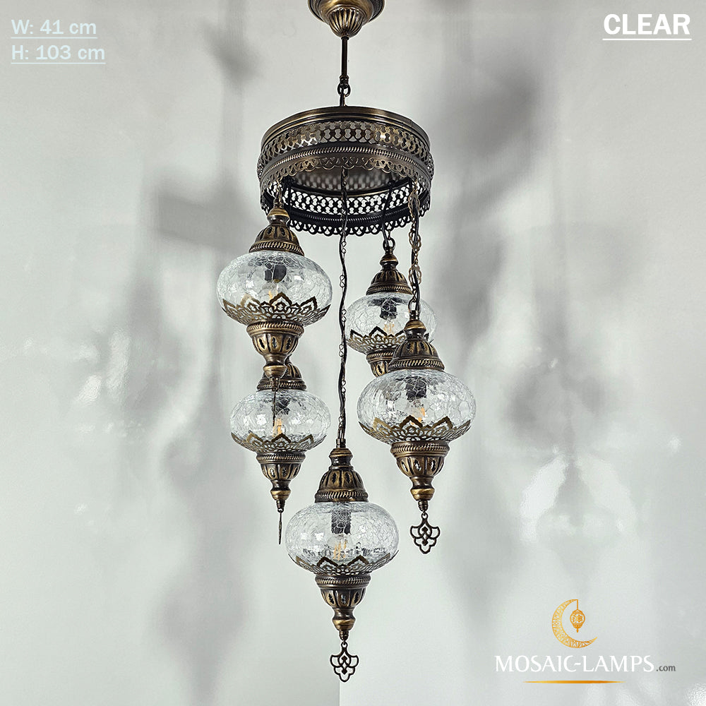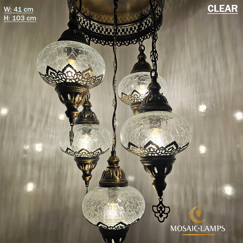 Clear Cracked Ottoman Chandelier, 5 Globe Moroccan Chandelier, Living Room Lantern Crackle Glass Ball, Crack Finish Ceiling Lights, Cafe Bar.