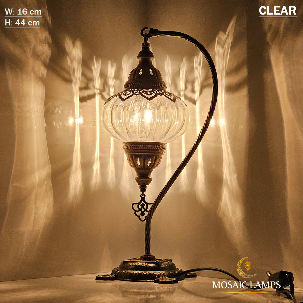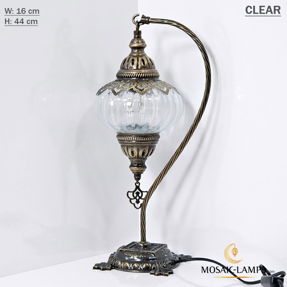 Clear Optic Globe Gooseneck Table Lamp, Ottoman Desk Light, Bohemian Turkish Lamp, Swanneck Vintage Lamps, Bedroom Bedside Nightligh