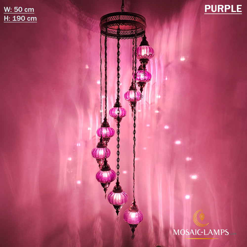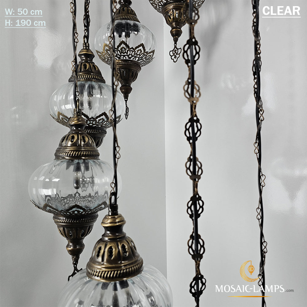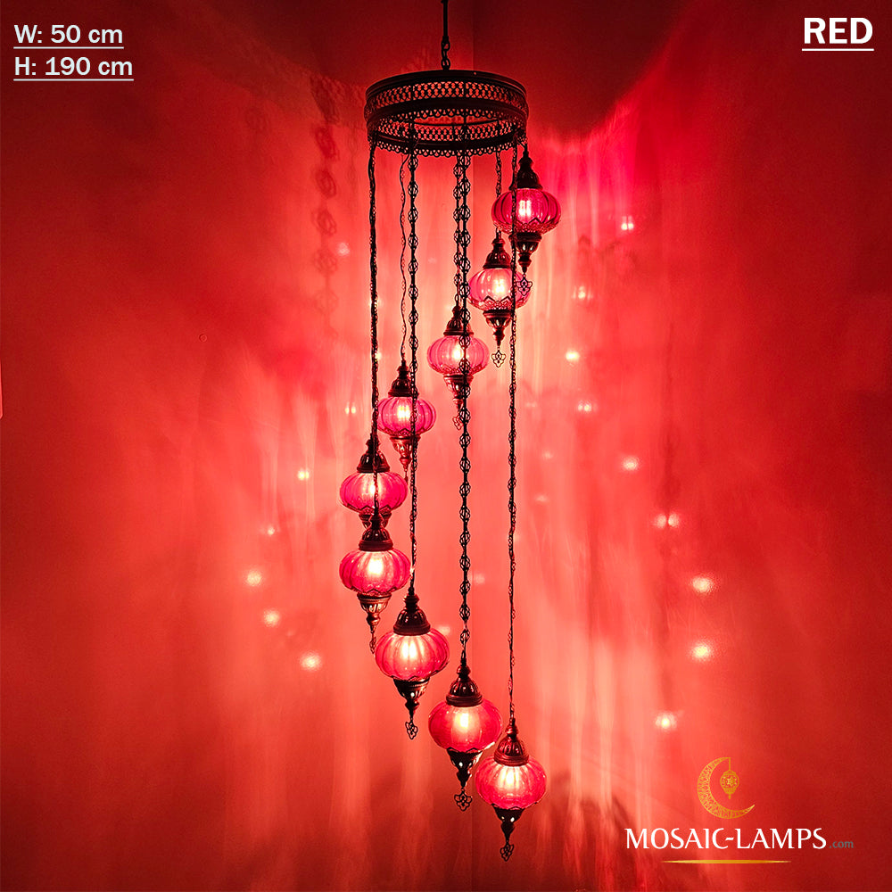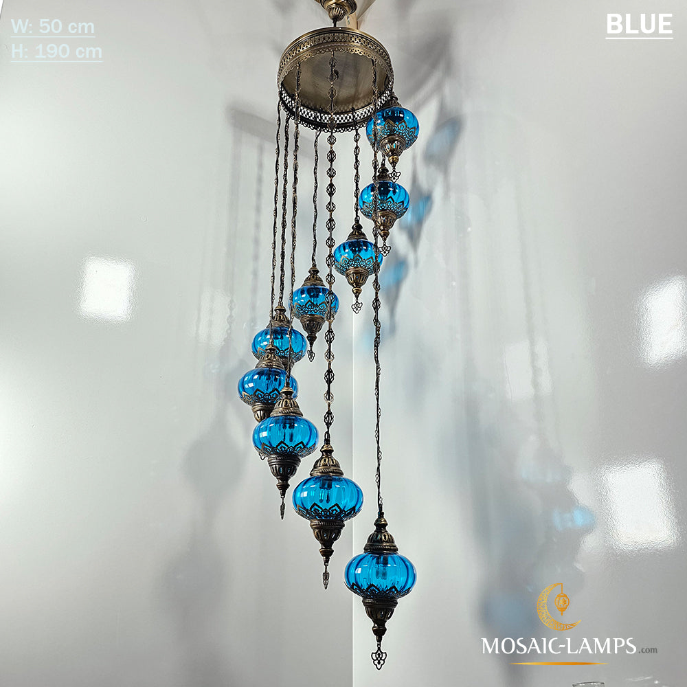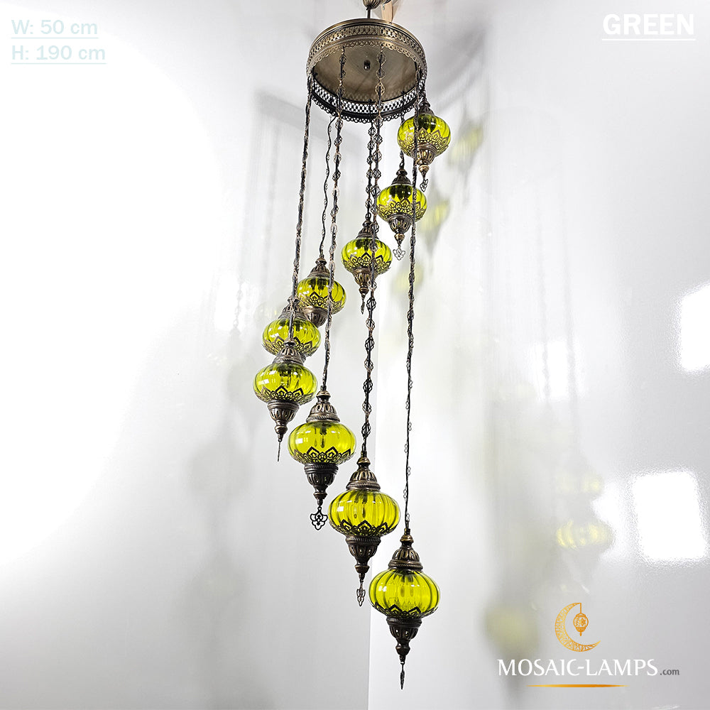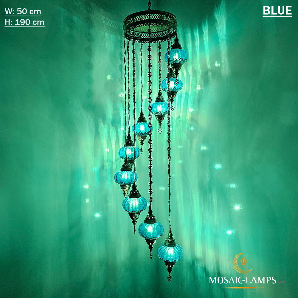Clear Optical 9 Globe Spiral Chandelier, Stairwell, Hallway, Restaurant, Entrance, Living Room, High Ceiling Lamps, Ottoman Moroccan Lights.