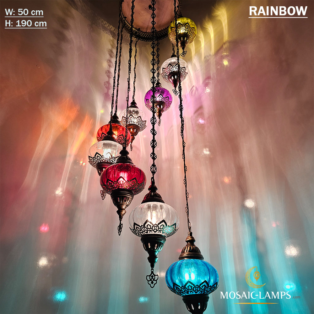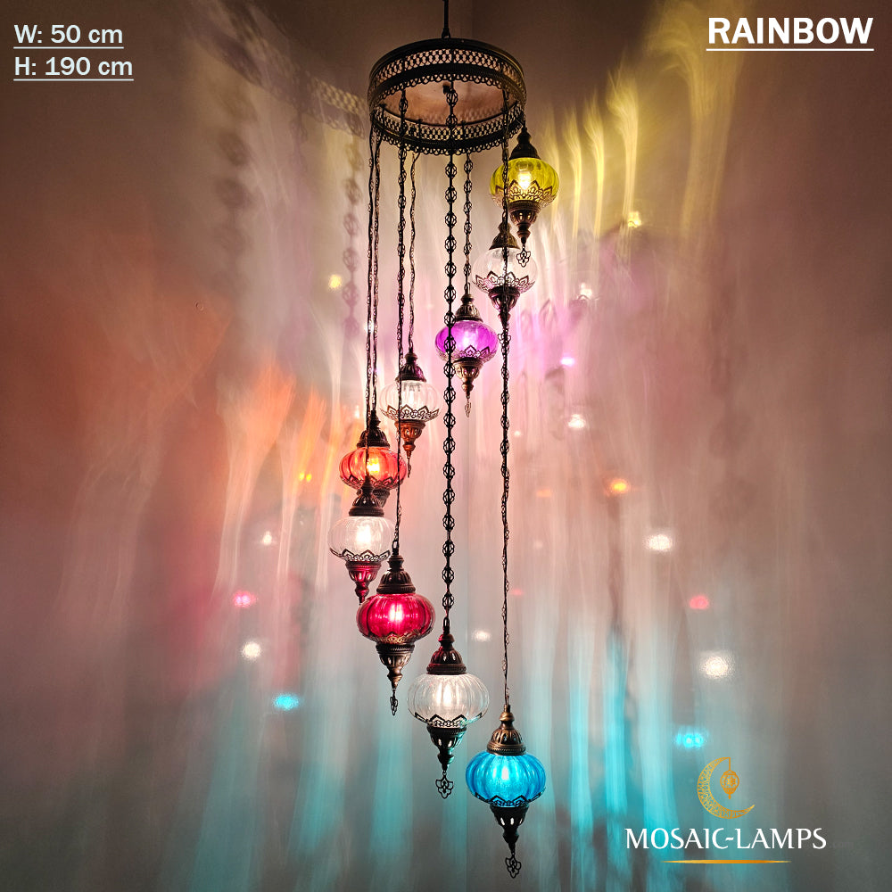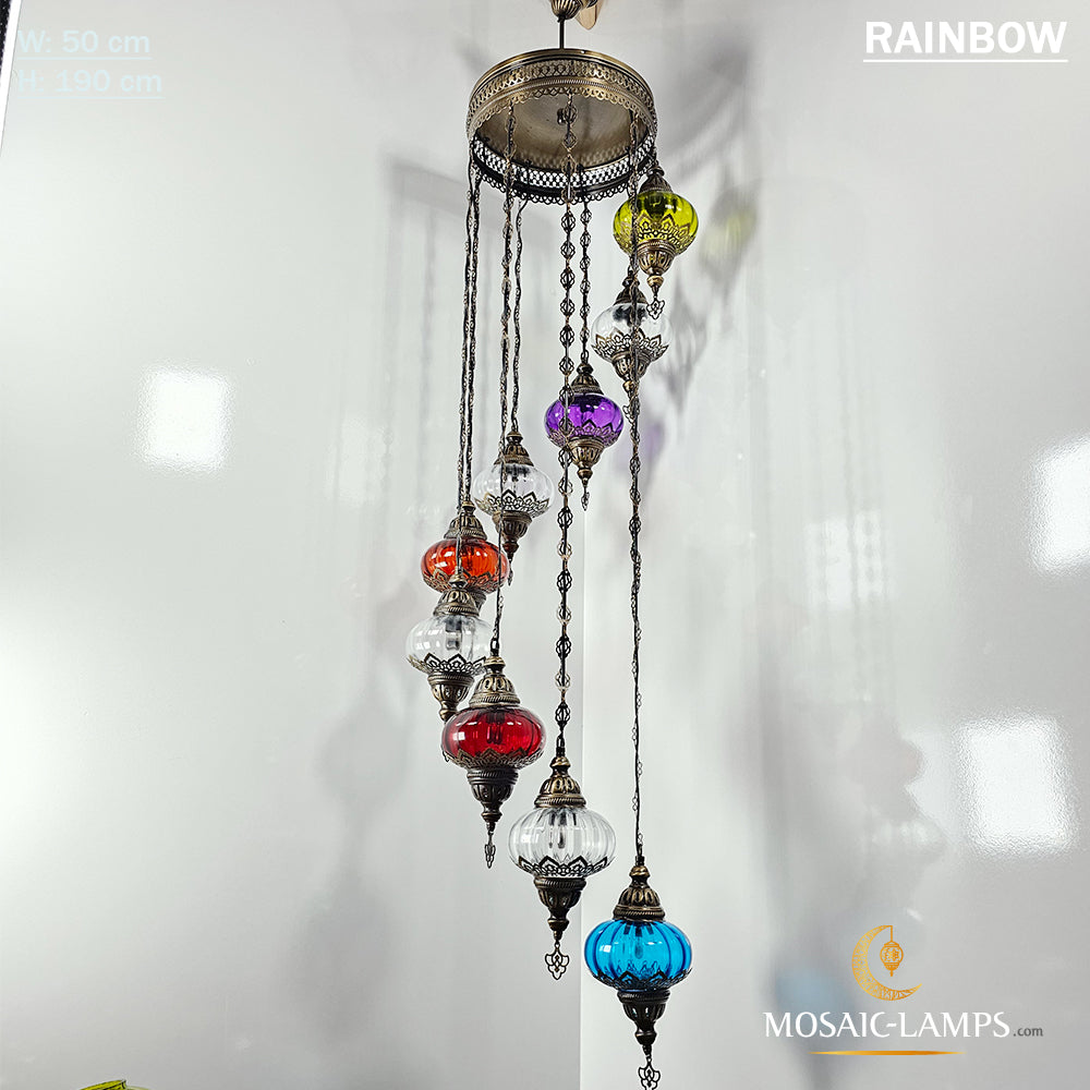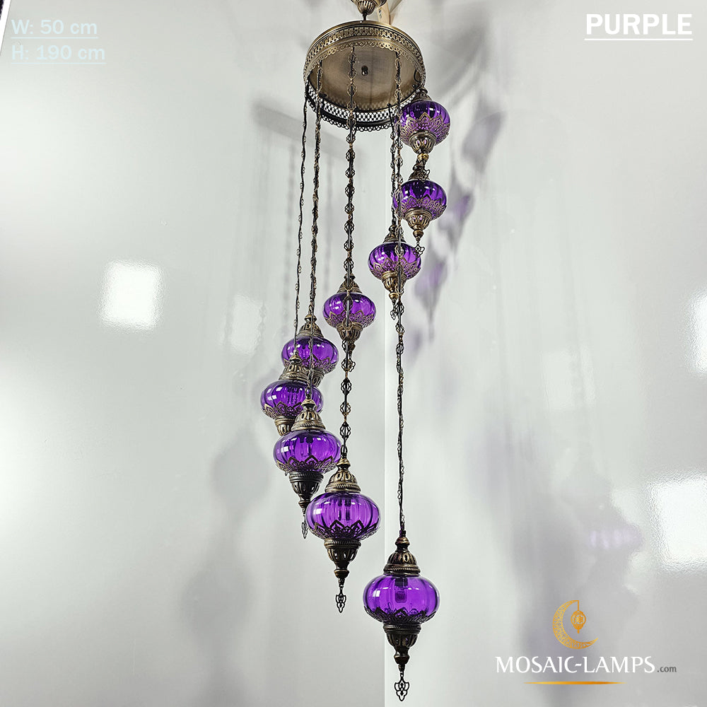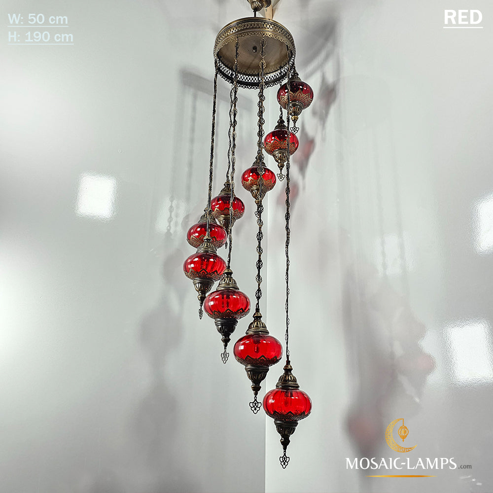 Clear Optical 9 Globe Spiral Chandelier, Stairwell, Hallway, Restaurant, Entrance, Living Room, High Ceiling Lamps, Ottoman Moroccan Lights.