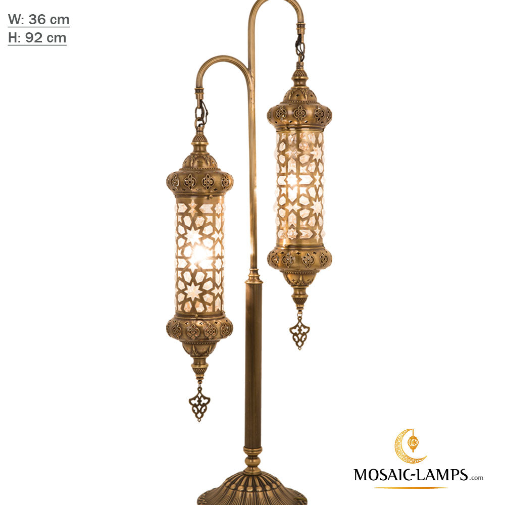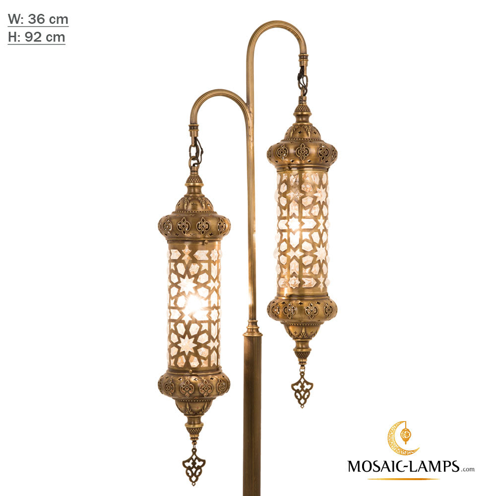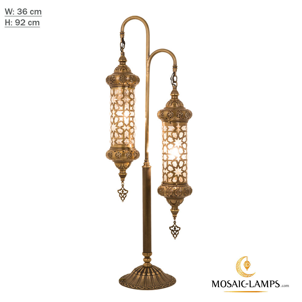 Double Arm Seljuk Motif Floor Lamps, Laser Metal Pipe Clear Blown Globe, Restaurant Lamp, Living Room Lamp Shades, Bedroom Lights, Bedside Light