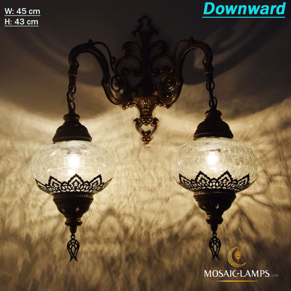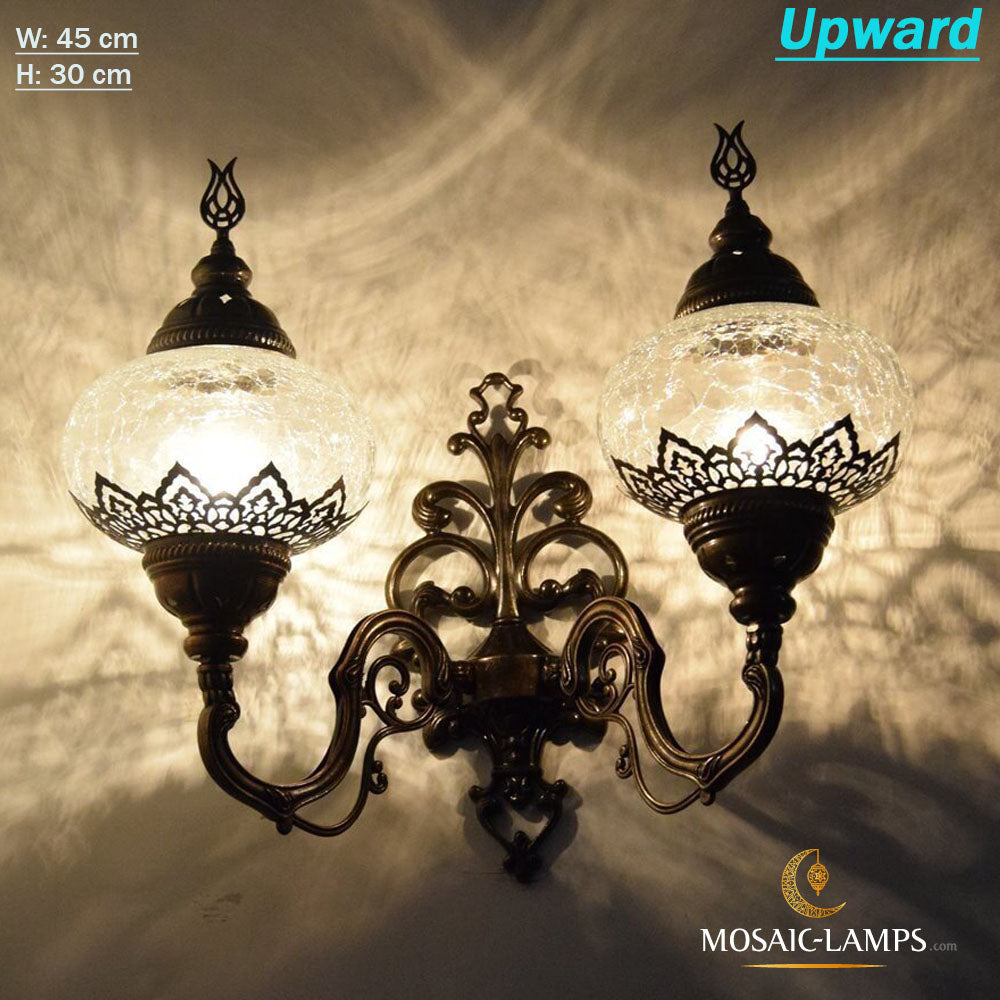 Double Turkish Wall Lamp, Moroccan Wall Lamp Clear Glass, Bathroom Wall Lamp, Bedroom Wall Lights, Restaurant, Living Room, Cafe, Bar Lights