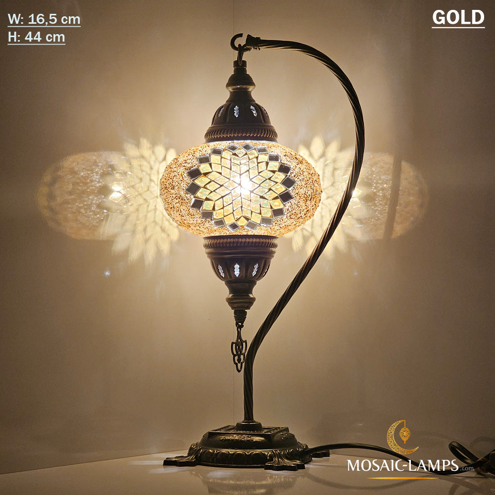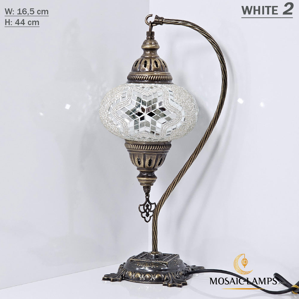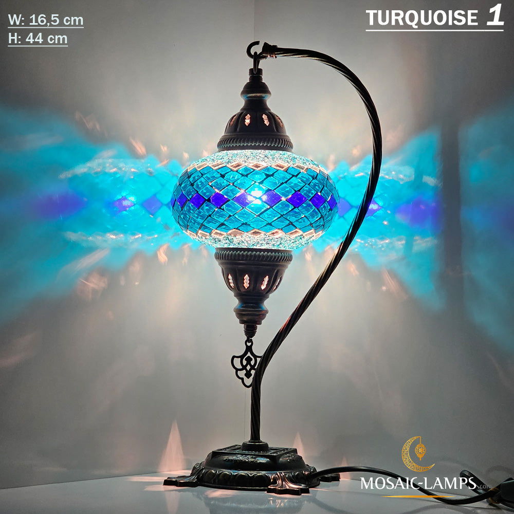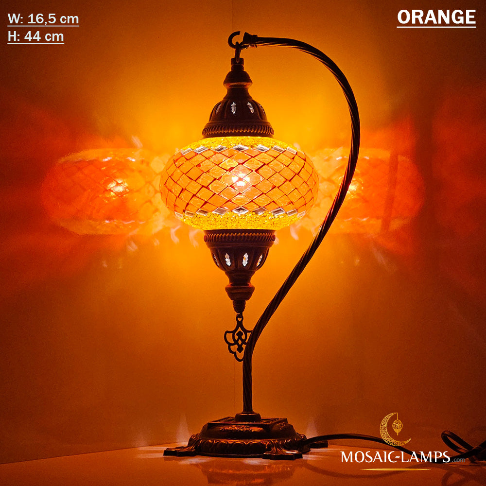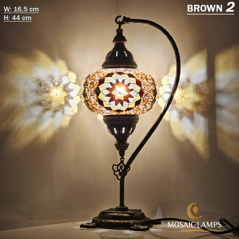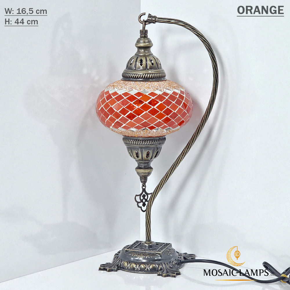 Gooseneck Large globe mosaic table lamp, Syrian Marrakech swan neck desk lamp for kitchen, bedroom, dining, living room desk lights, restaurant, bar, hotel. Handmade Turkish desktop colorful lights, night lighting tools.