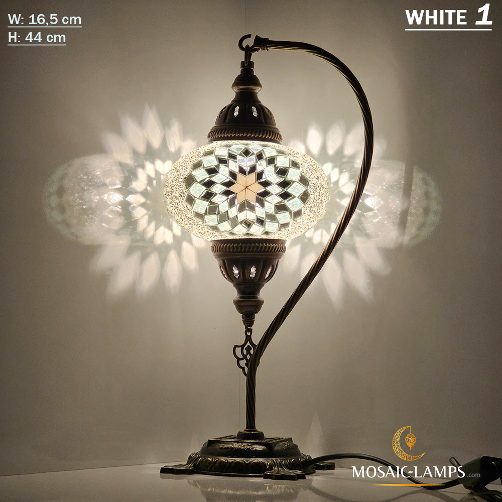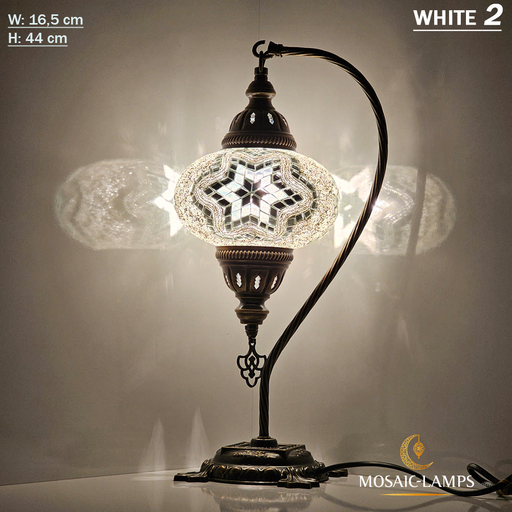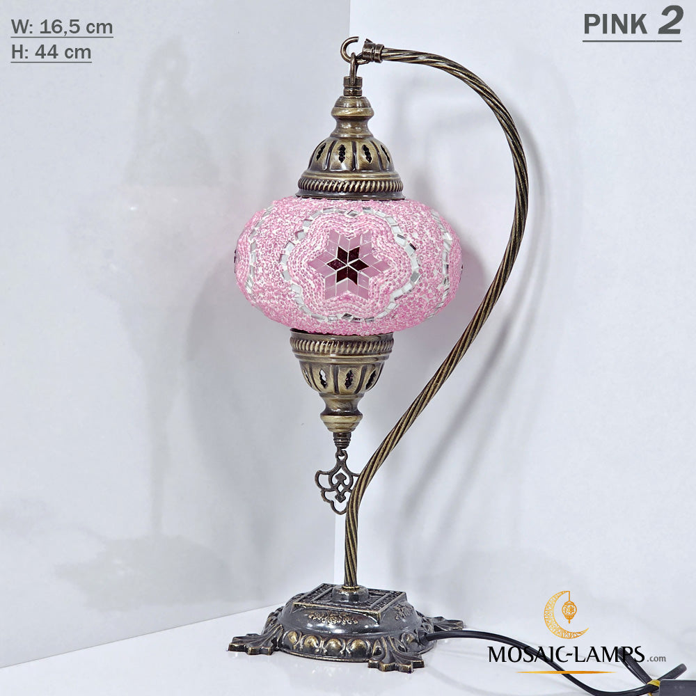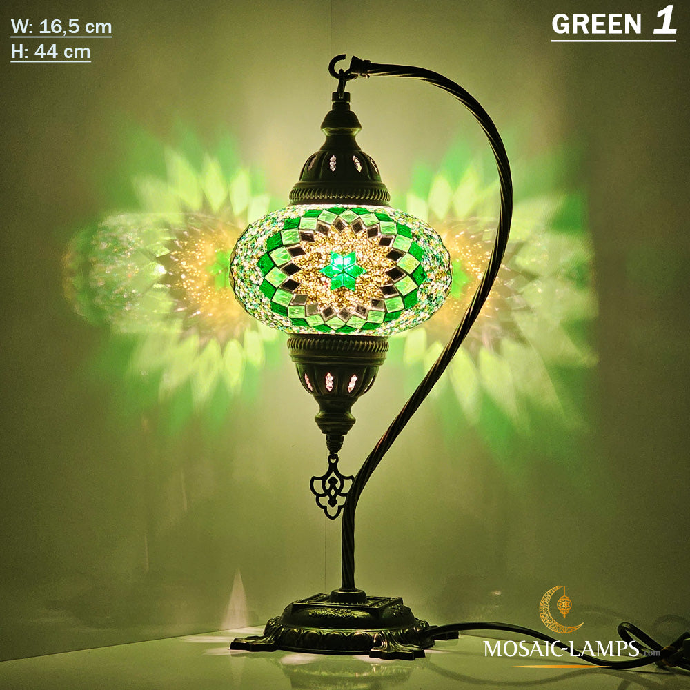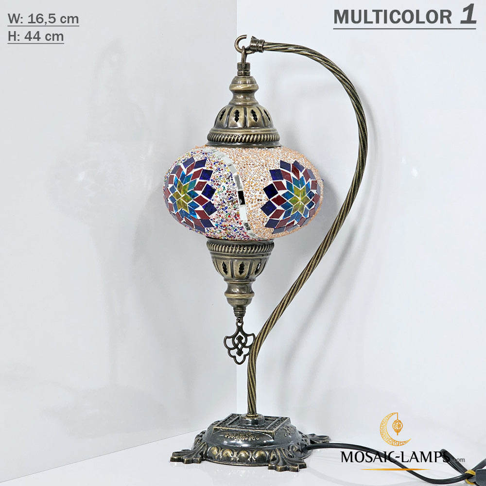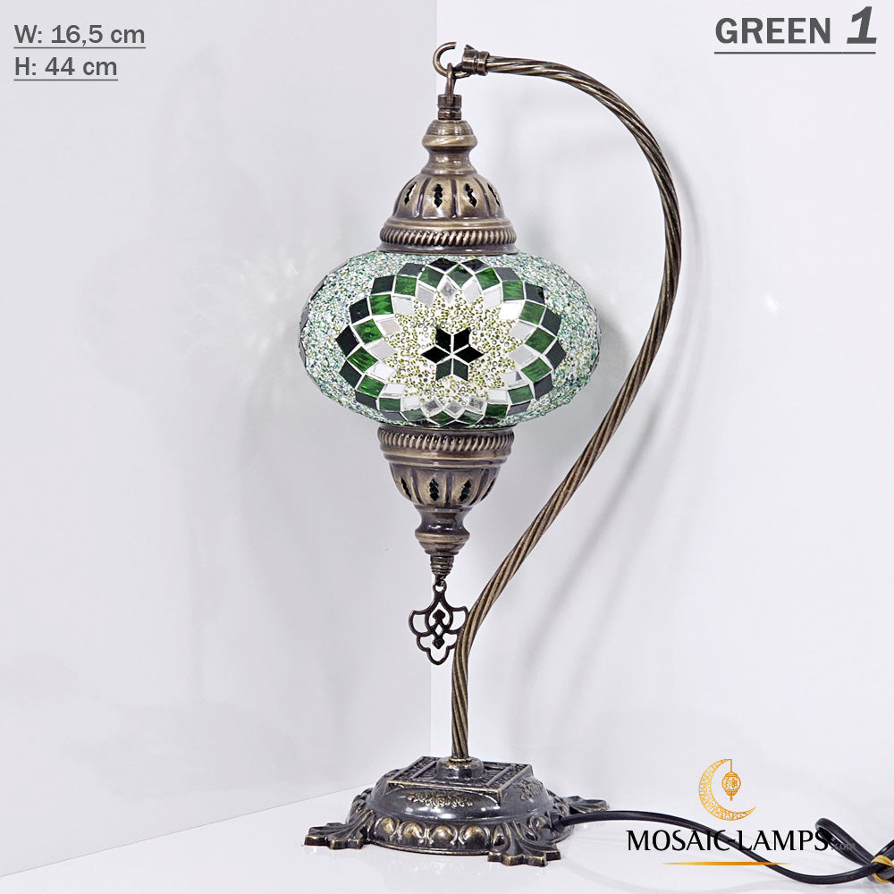 Gooseneck Large globe mosaic table lamp, Syrian Marrakech swan neck desk lamp for kitchen, bedroom, dining, living room desk lights, restaurant, bar, hotel. Handmade Turkish desktop colorful lights, night lighting tools.