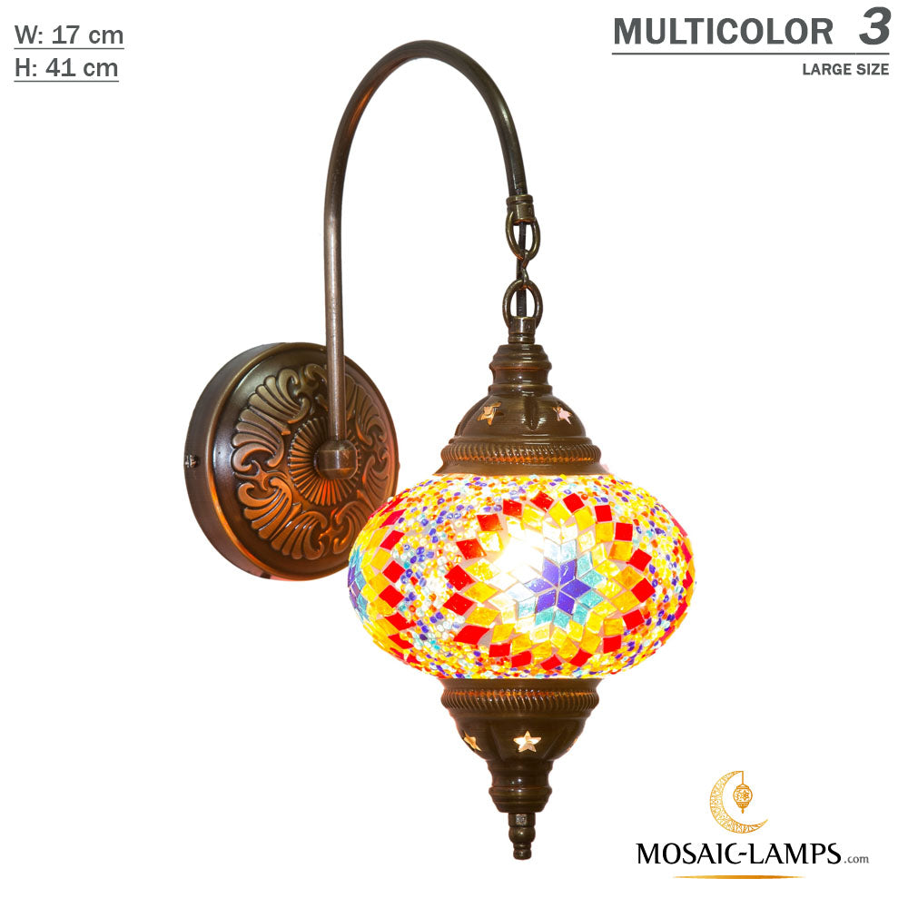 Mosaic swan neck wall lamp sconce. Single lamp mosaic lamp sconce is a product you can prefer in your home or in places such as cafes and restaurants. You can order our mosaic lamp sconces from anywhere in the world. You can use your handmade traditional Turkish Mosaic wall lamps, especially in your bedrooms, at the head of your bed, in your living room, in the hallway, at the entrance of the house and even on the balcony. It also provides a very stylish light source in environments such as cafes, restaurants and bars.