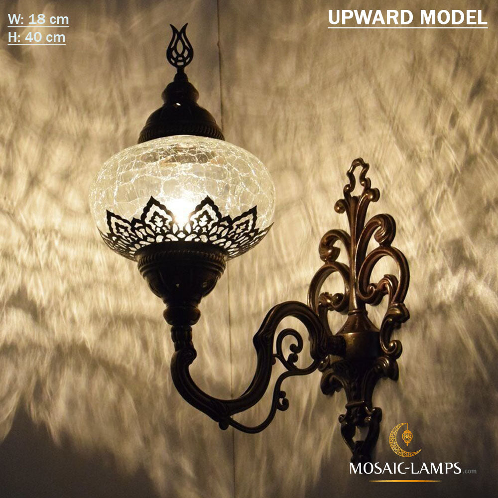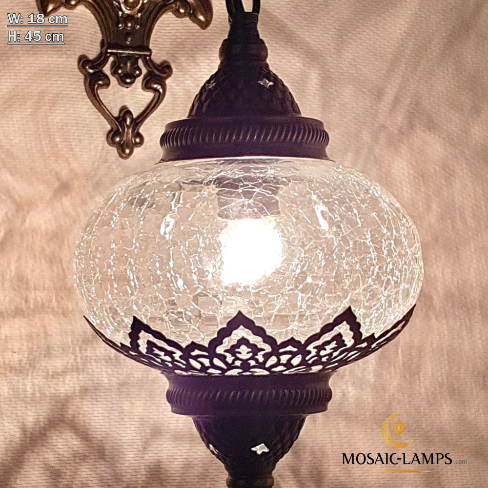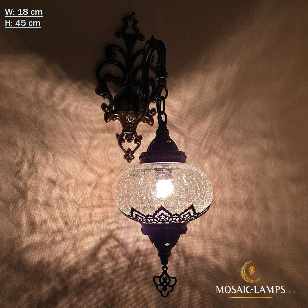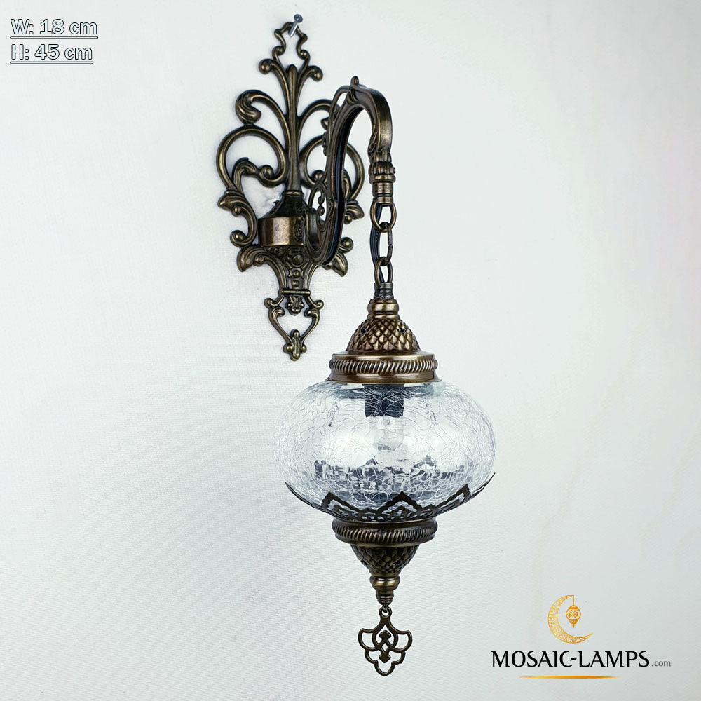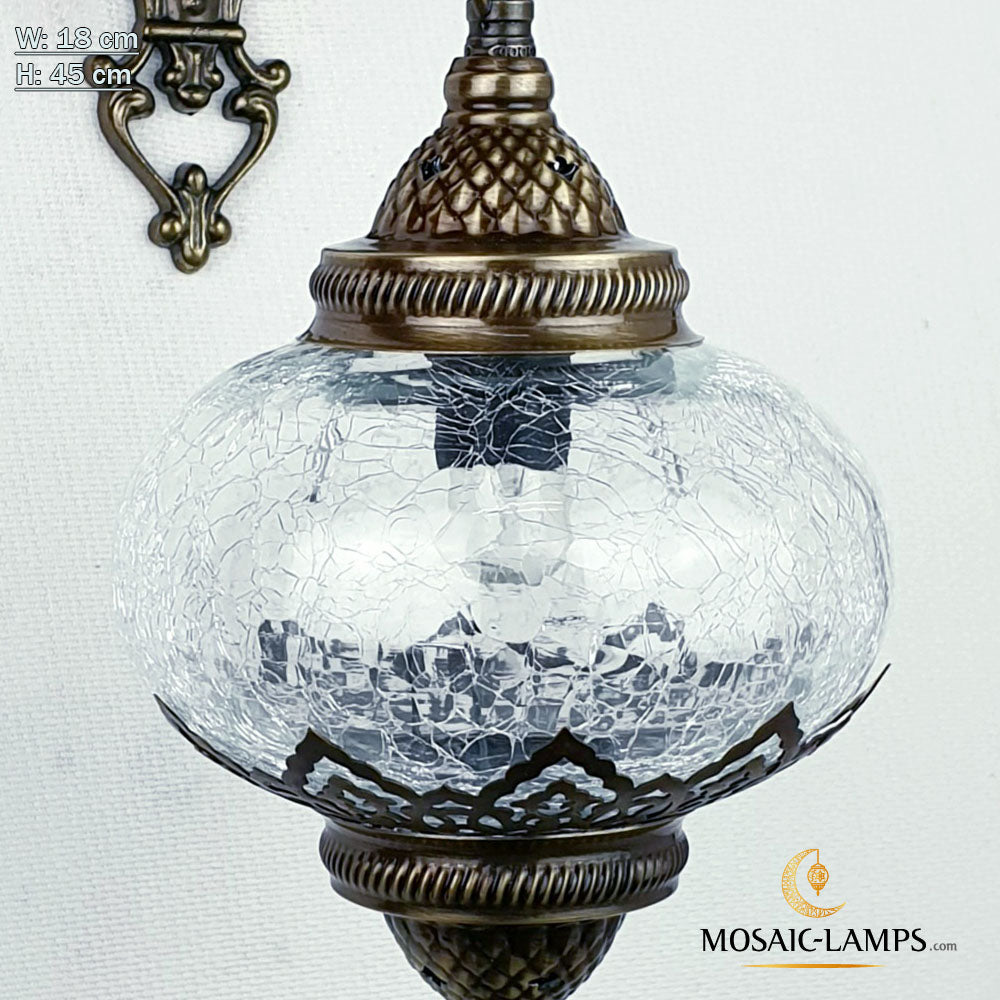 Moroccan Clear Cracked Globe Wall Sconce, Turkish Wall Lamp, Clear Glass Wall Lamp, Vintage Mosaic Glass Wall Lamp