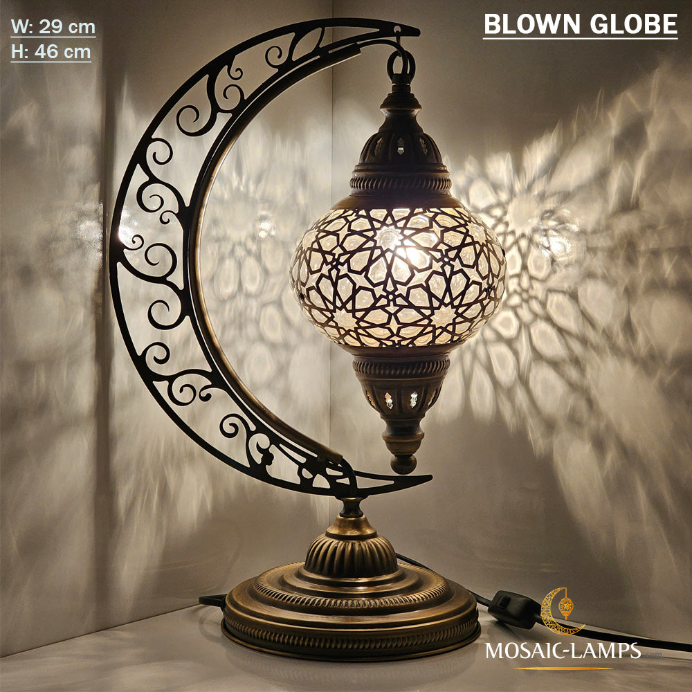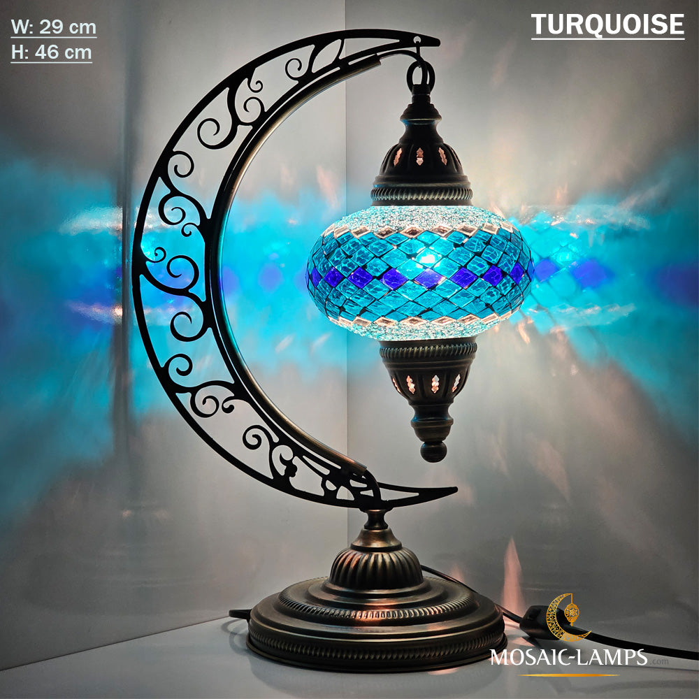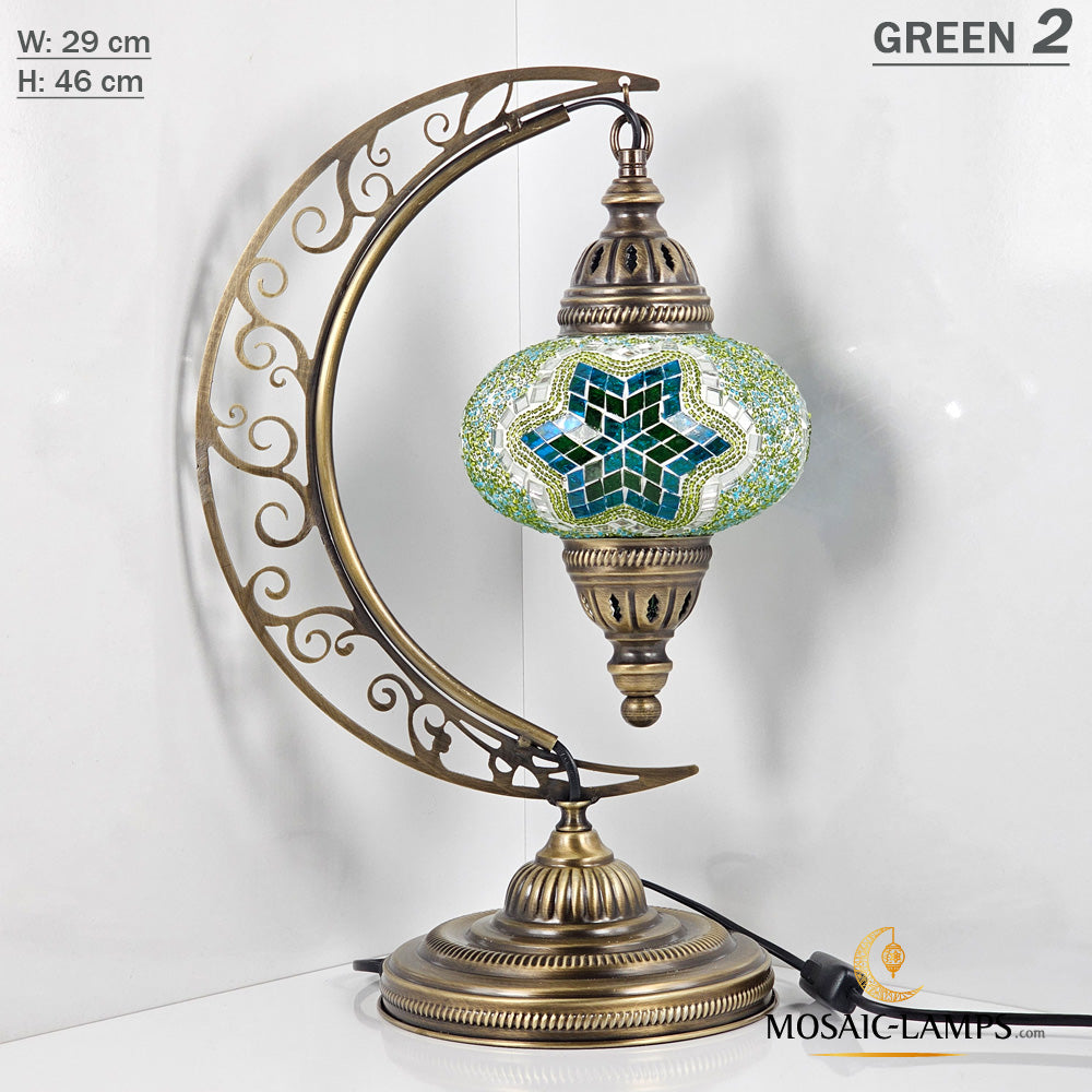 Moroccan moon table lamp, arc, murano crescent desk lights, hilal Turkish mosaic, bedroom, restaurant, living room, kids room.