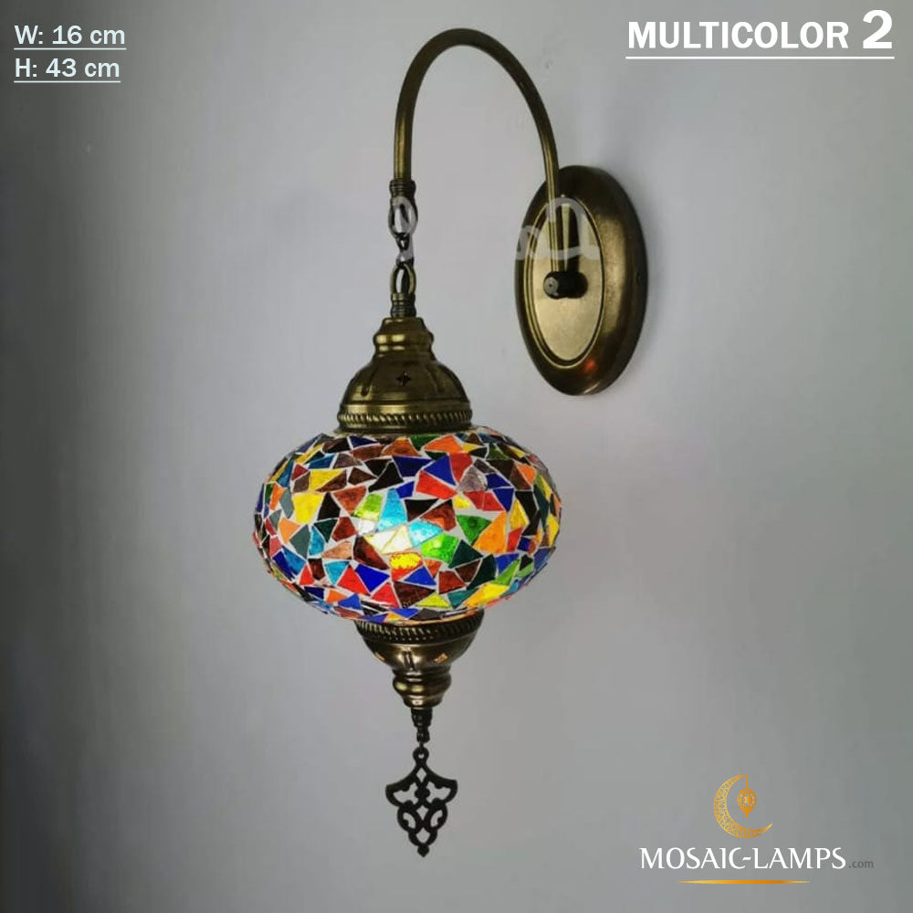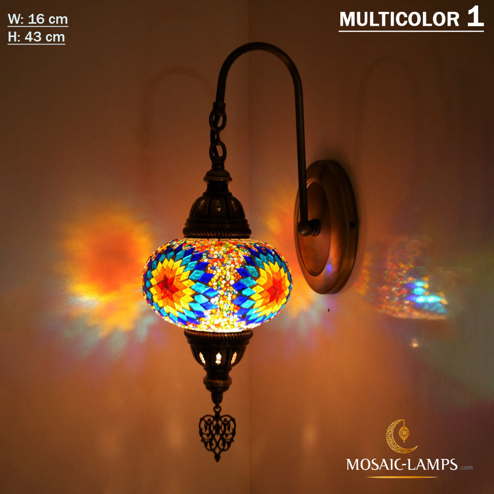 Multicolor Gooseneck Single Wall Sconces, Traditional Handmade Turkish Moroccan Wall Lamp, Bedroom, Bathroom, Hallway Wall Lights