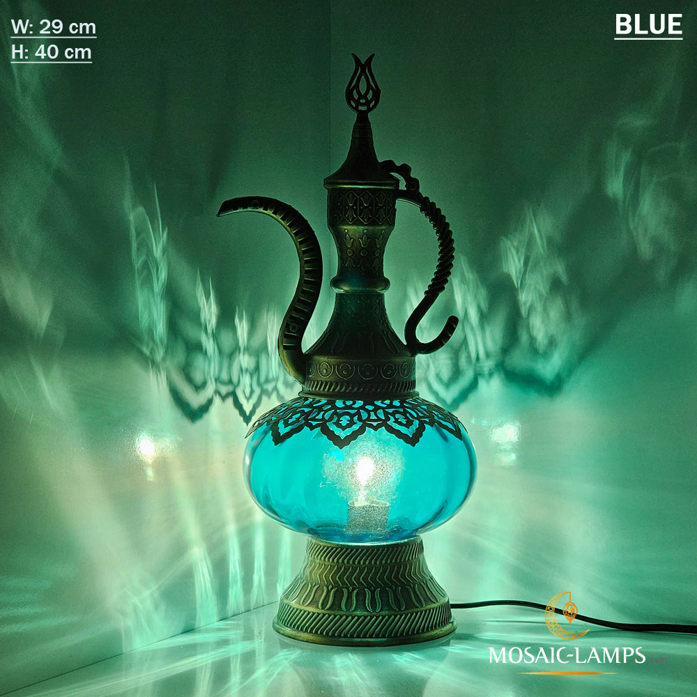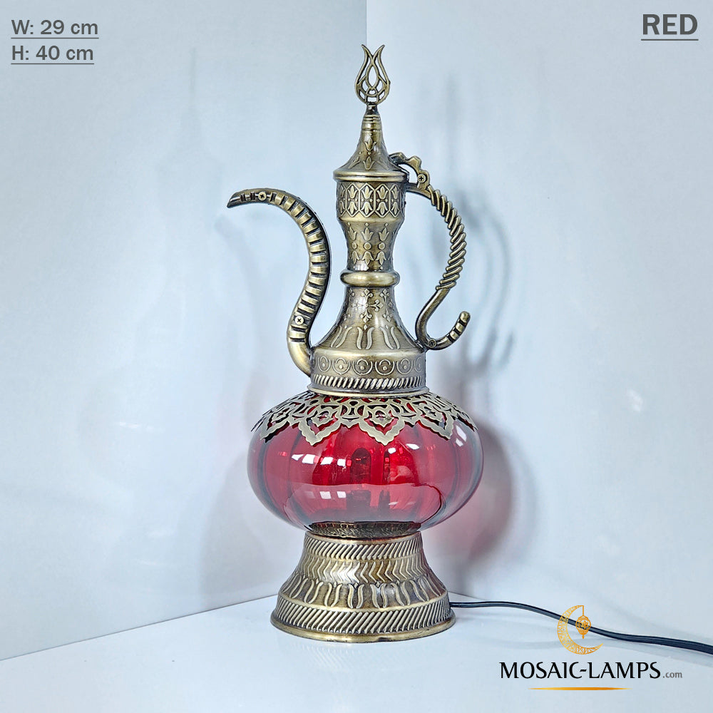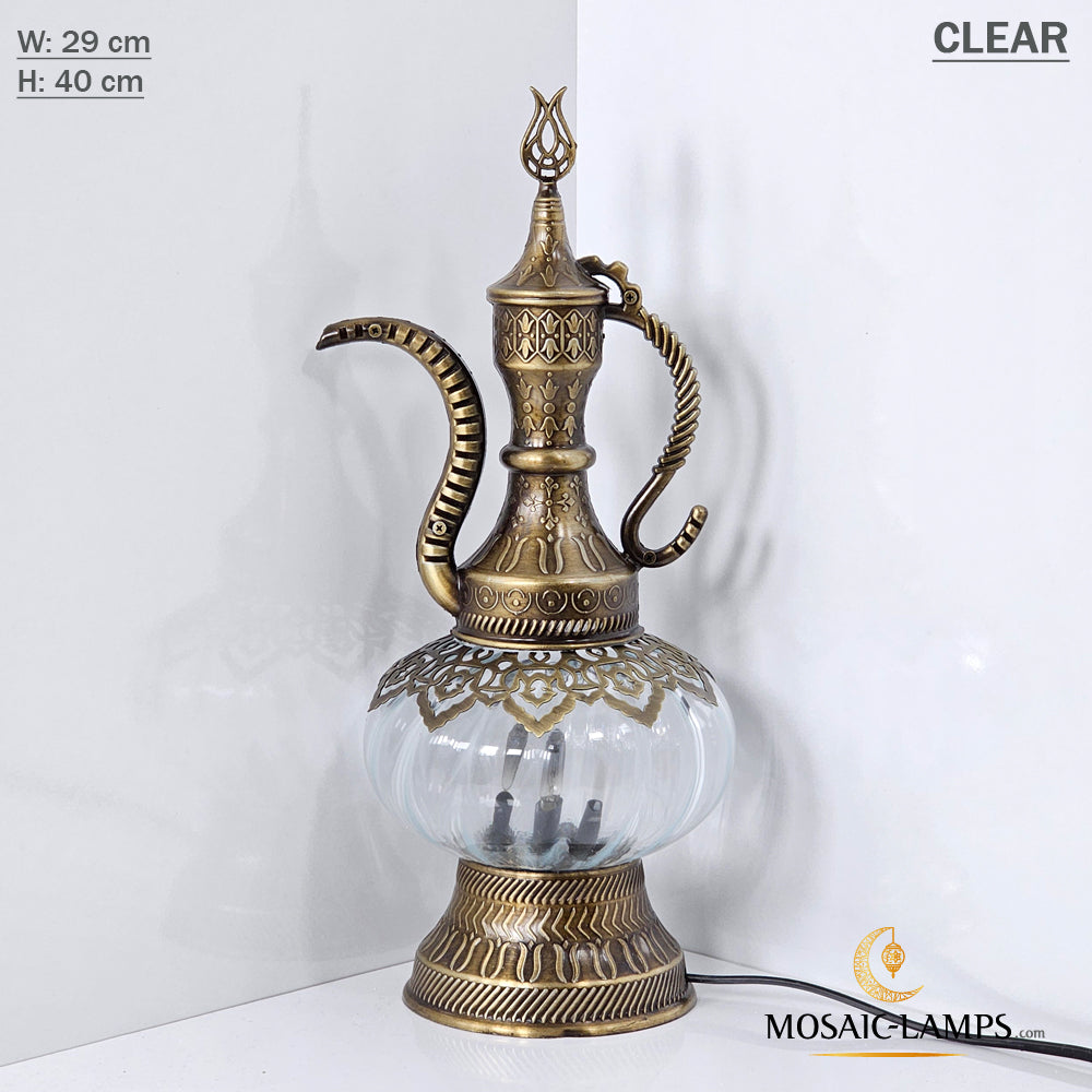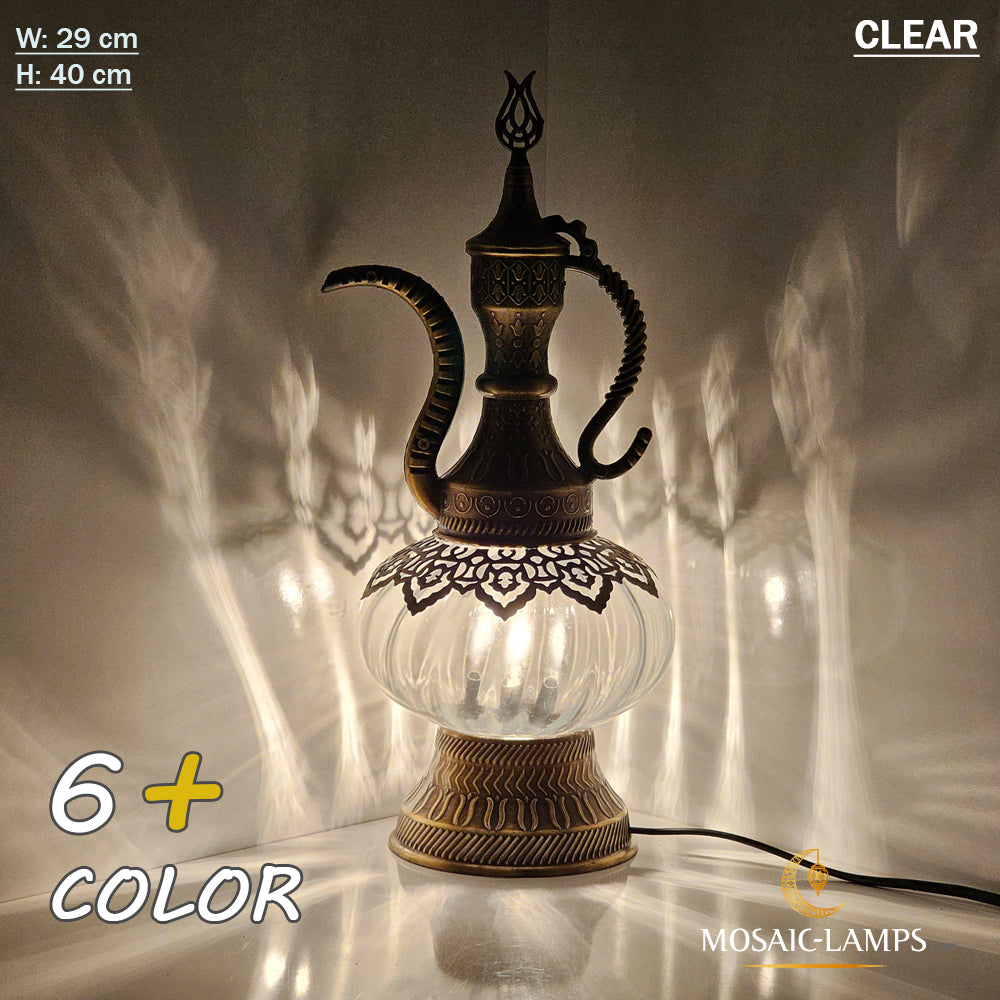 Optical Effect Glass Table Lamp, Handmade Ottoman Pitcher Table Lamp in 6 Different Colors, Nightstand Lamp Made of Clear Glass, Bedroom, Kids Room