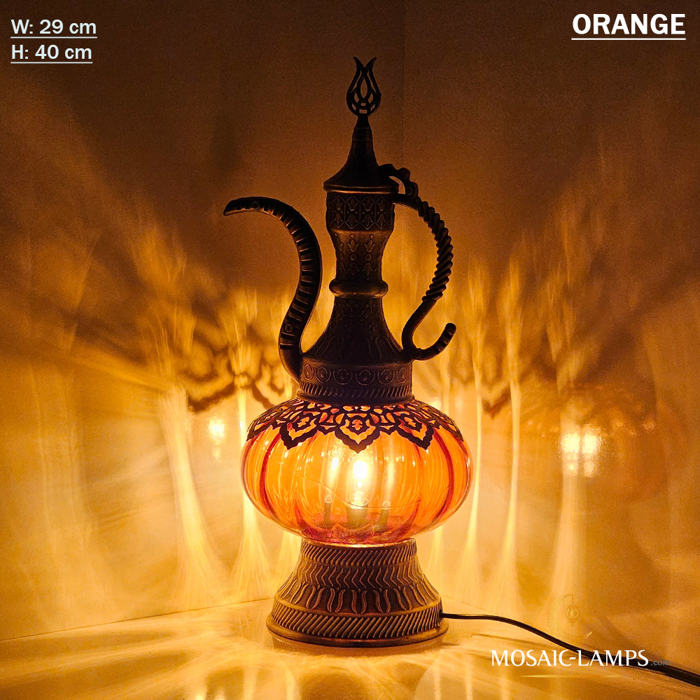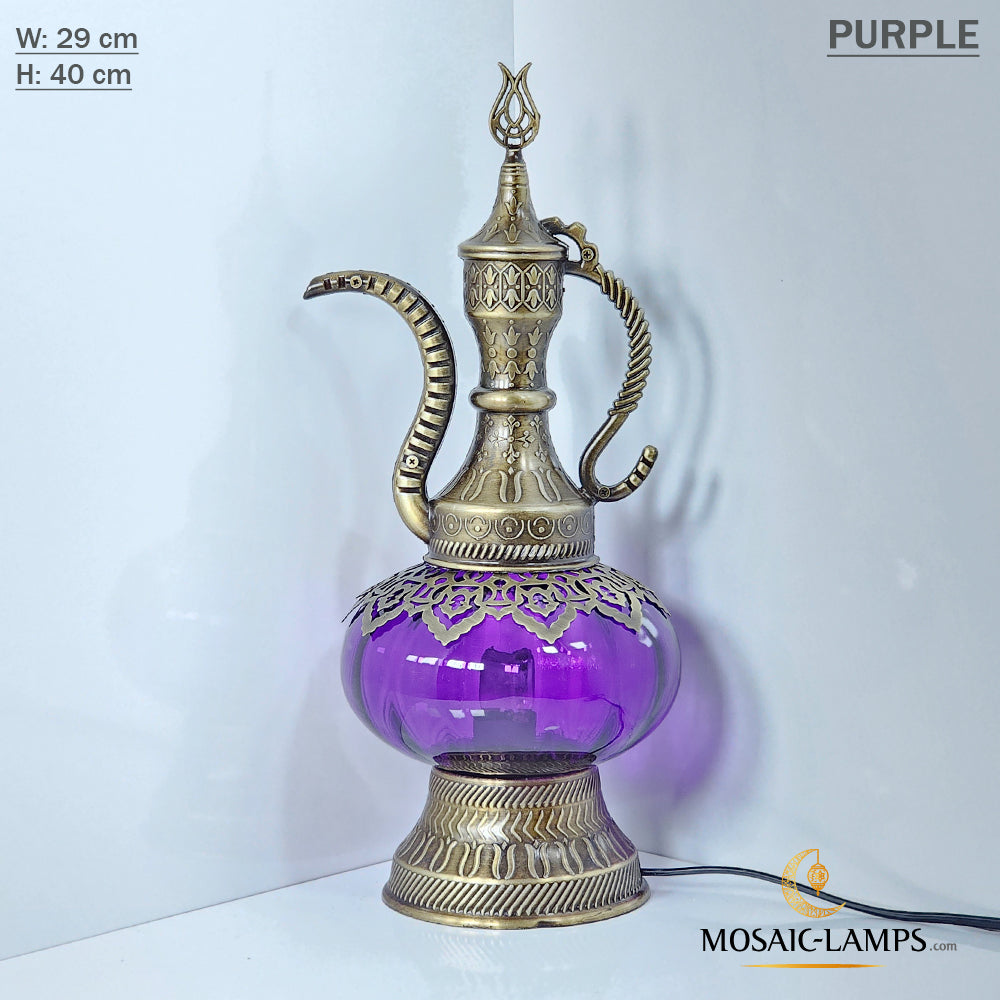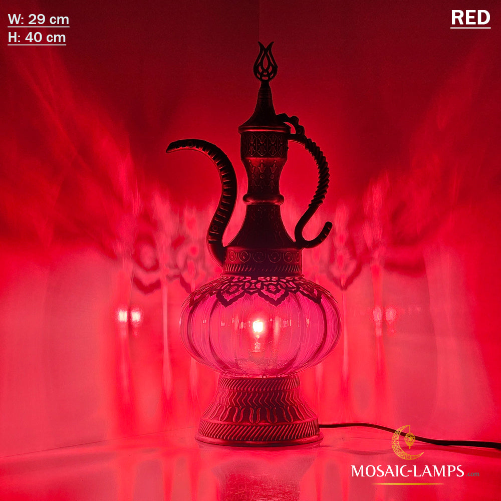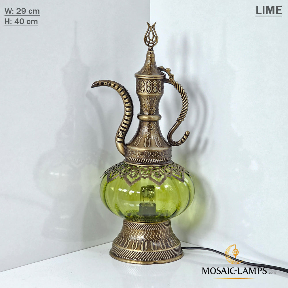 Optical Effect Glass Table Lamp, Handmade Ottoman Pitcher Table Lamp in 6 Different Colors, Nightstand Lamp Made of Clear Glass, Bedroom, Kids Room