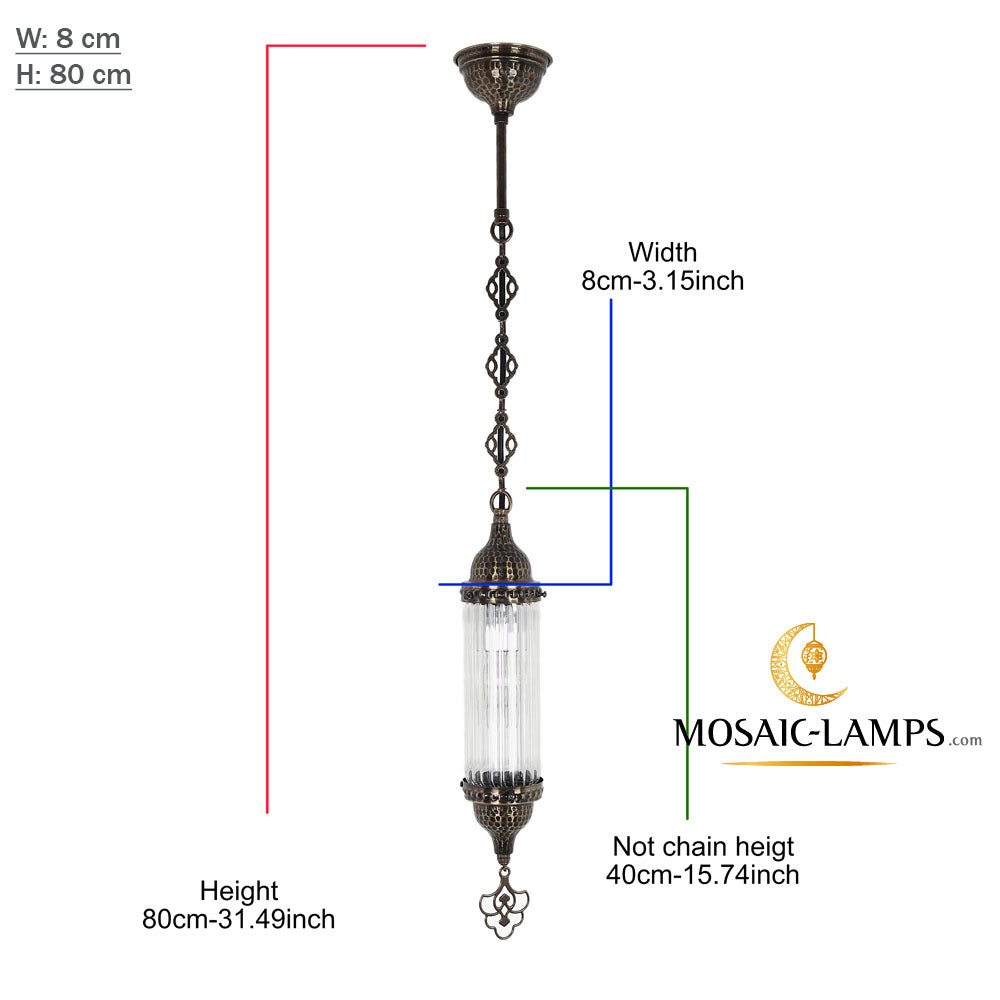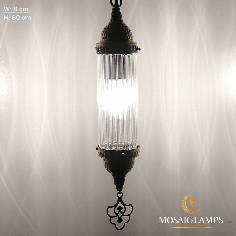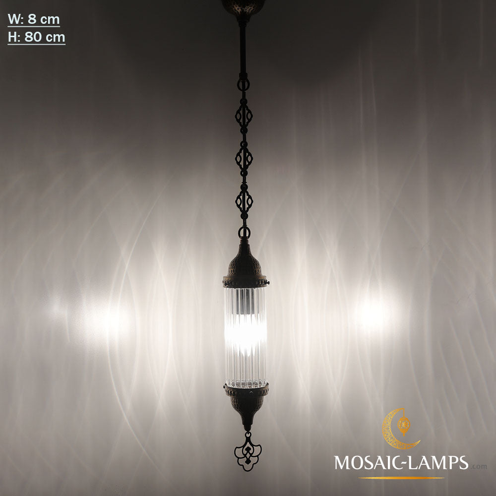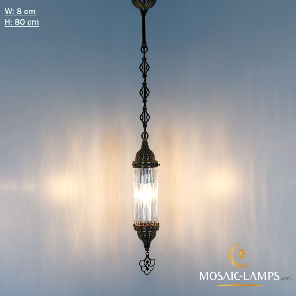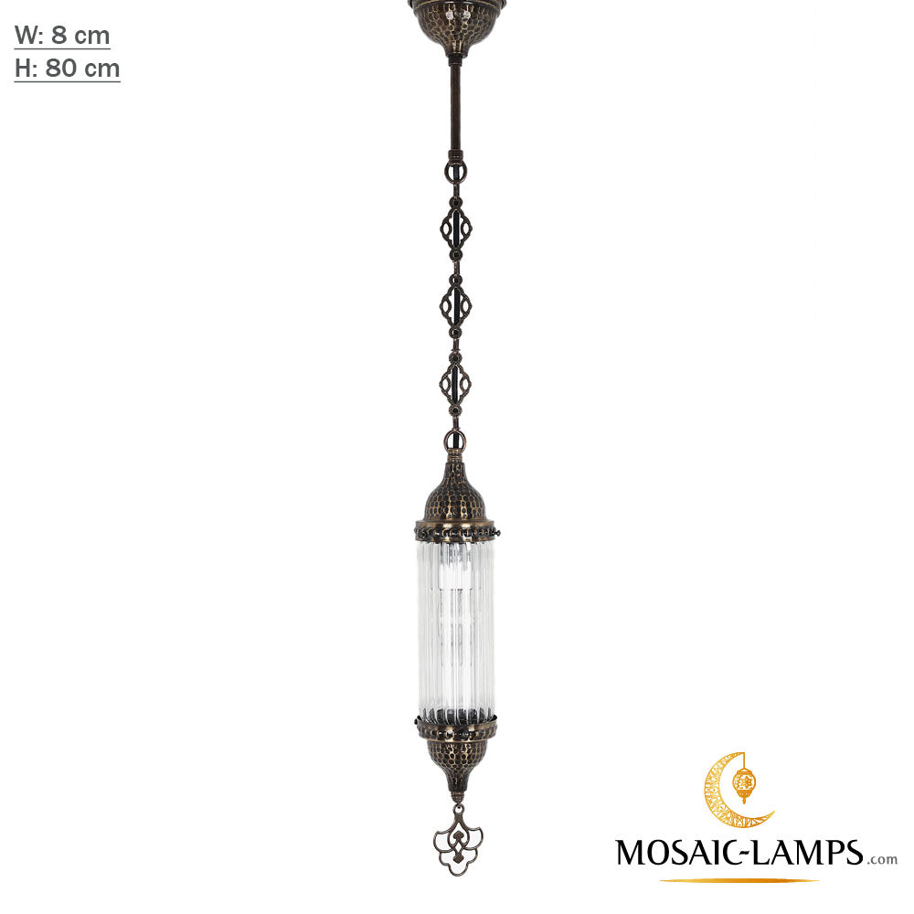 Ottoman medium pyrex glass pendant lamps, hammer forged metal tubular glass hanging lights, Moroccan bedroom hanging lighting, living room single chain lights.