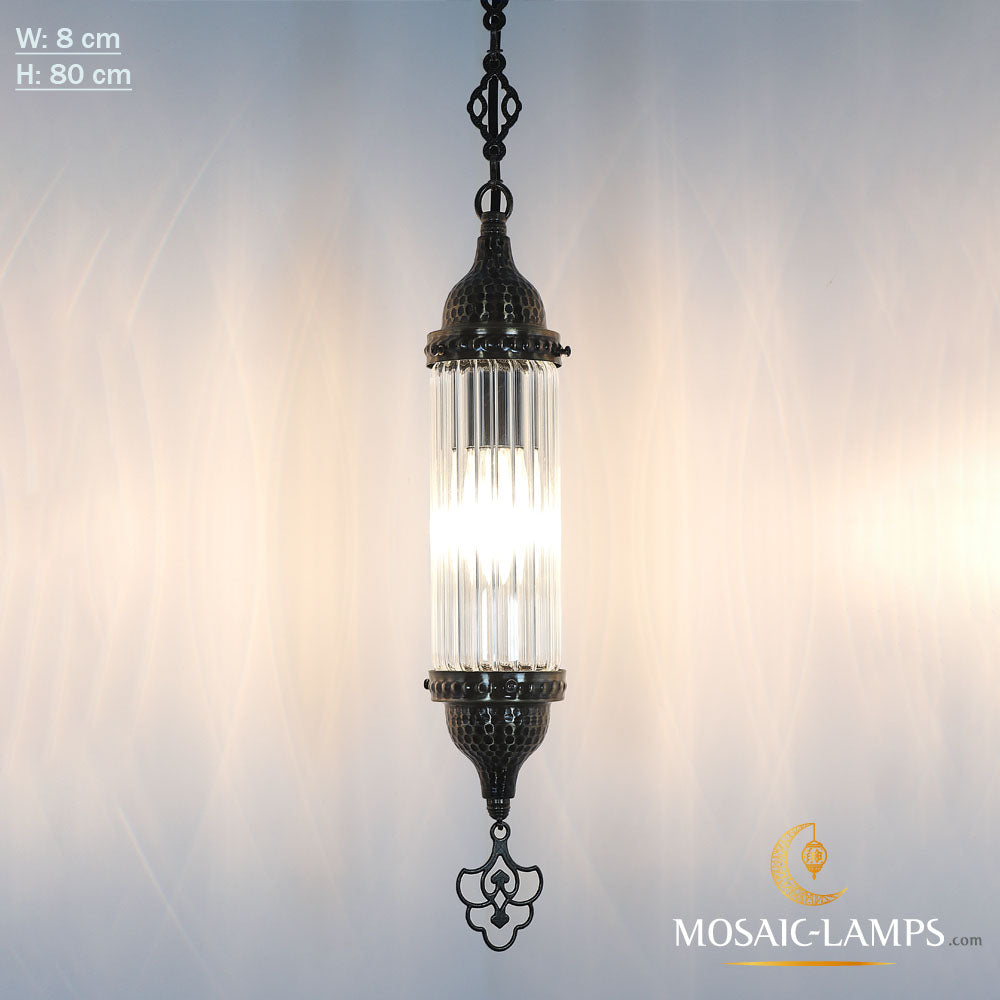 Ottoman Medium Pyrex Glass Pendant Lamps, Hammer Forged Metal Tubular Glass Hanging Lights, Bedroom Lighting, Living Room Single Chain Lights