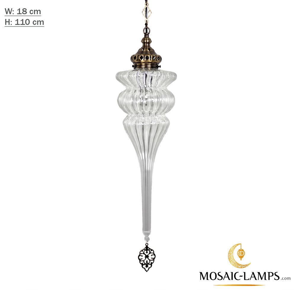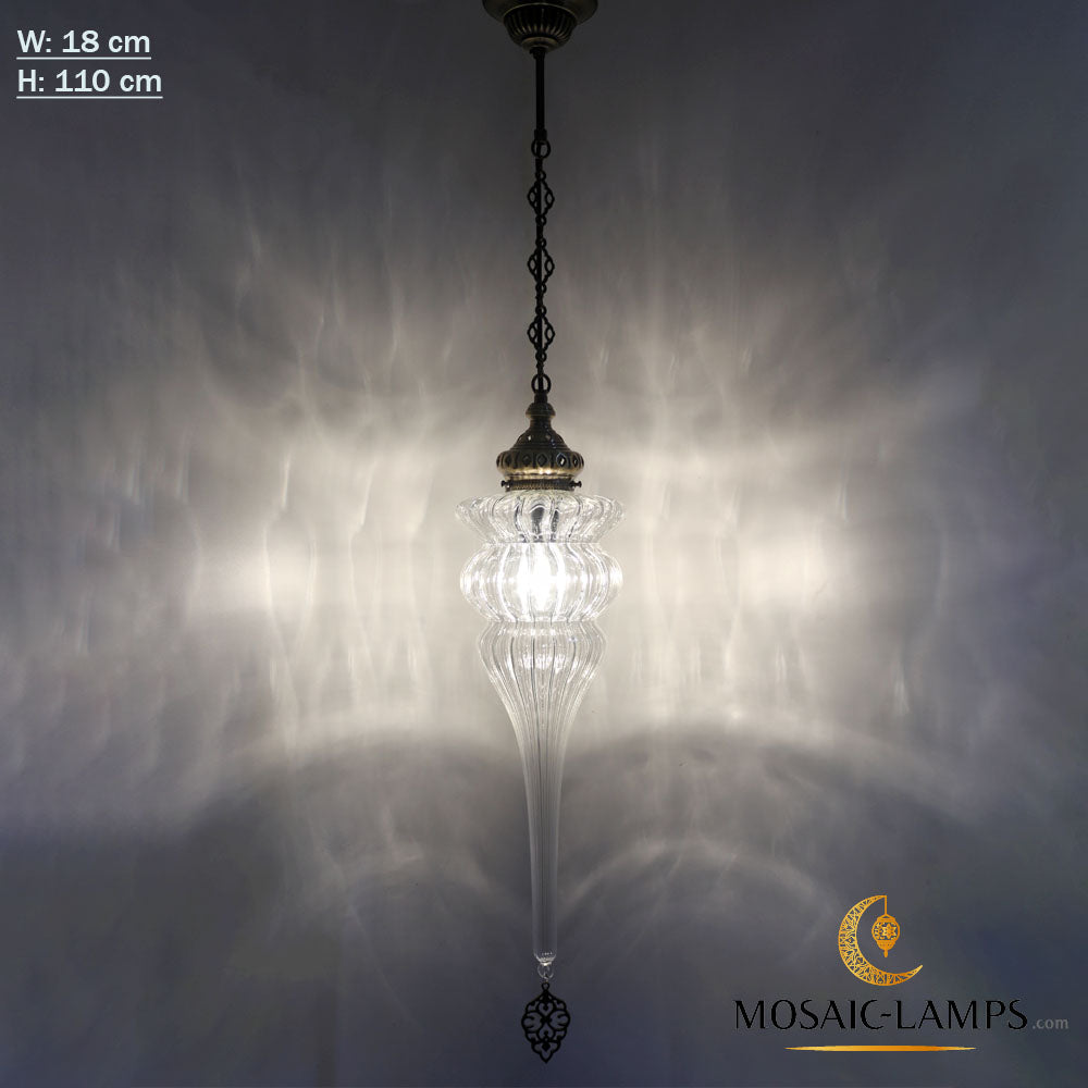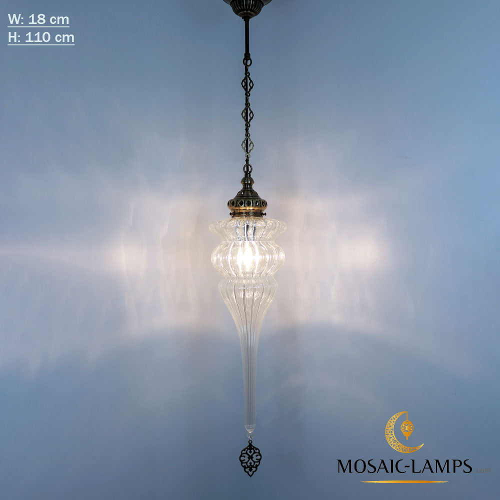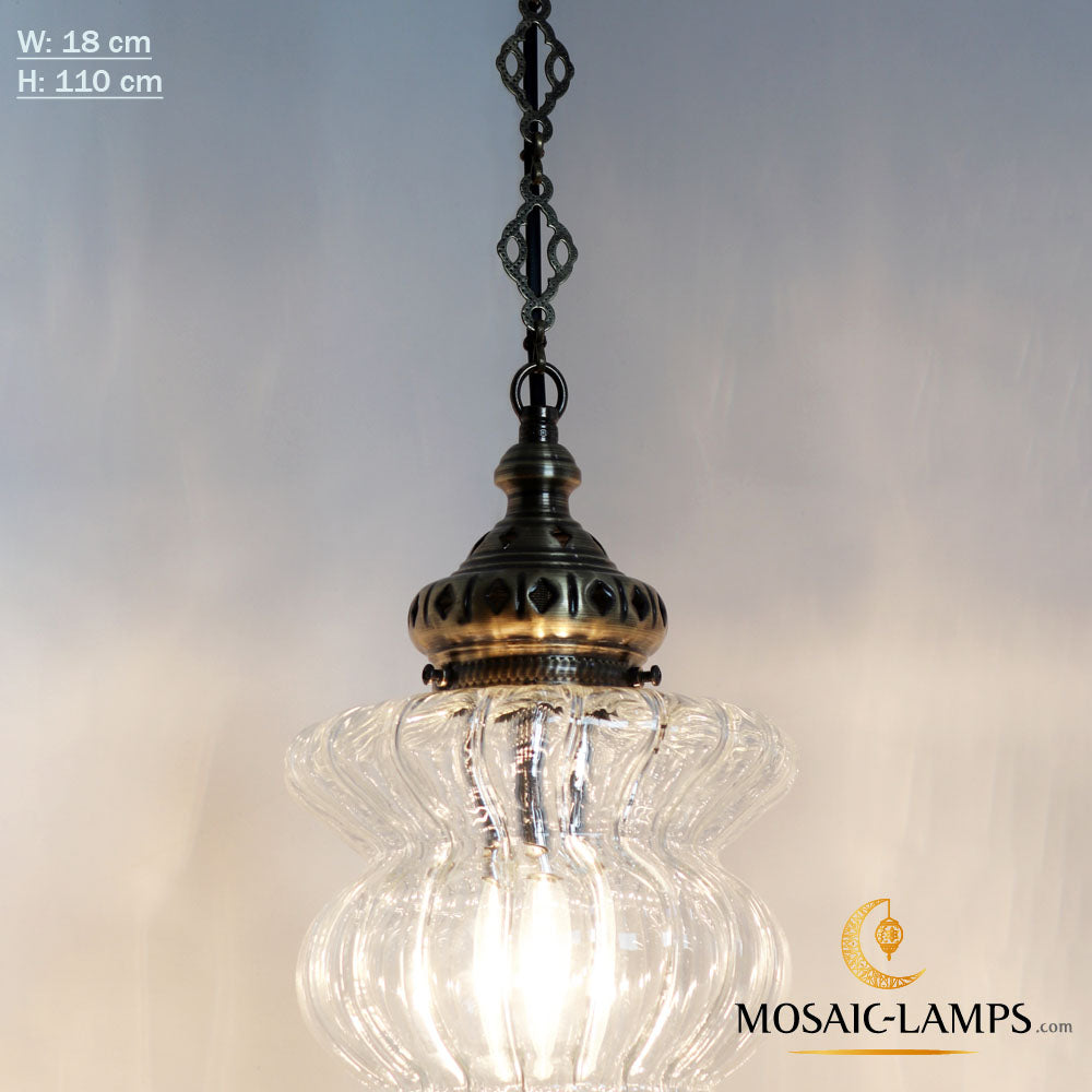 Ottoman Pyrex Blown Glass Pendant Lights, Single Chain Clear Glass Hanging Lamp, Moroccan Handmade Authentic Ceiling Lightings