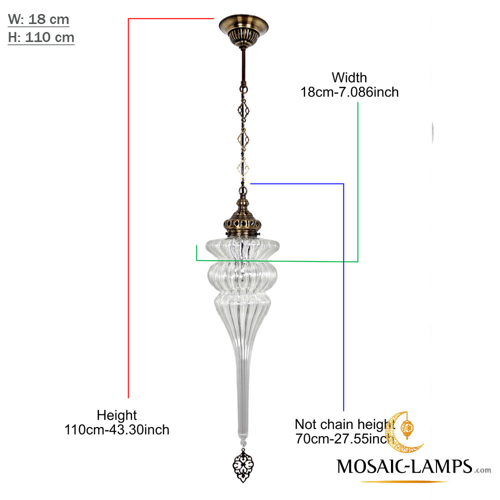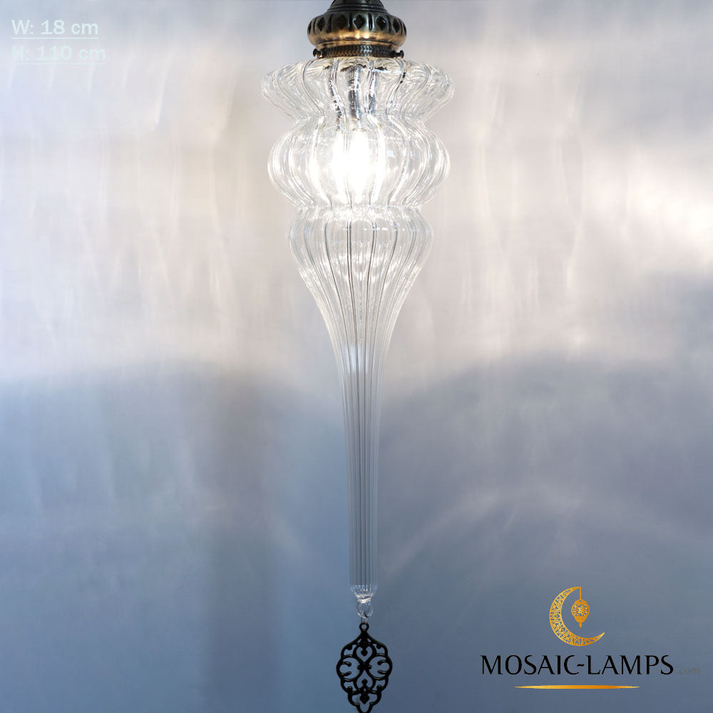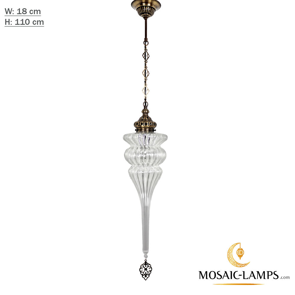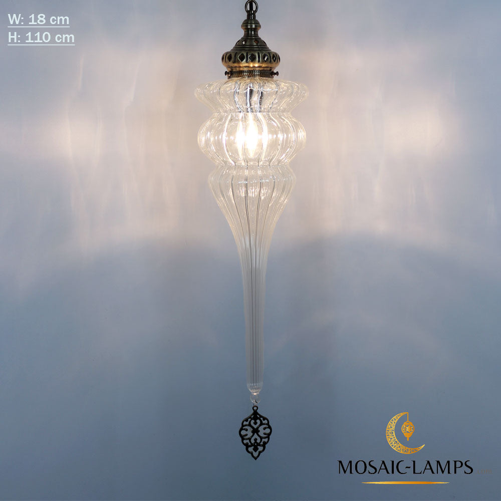 Ottoman Pyrex Blown Glass Pendant Lights, Single Chain Clear Glass Hanging Lamp, Moroccan Handmade Authentic Ceiling Lightings