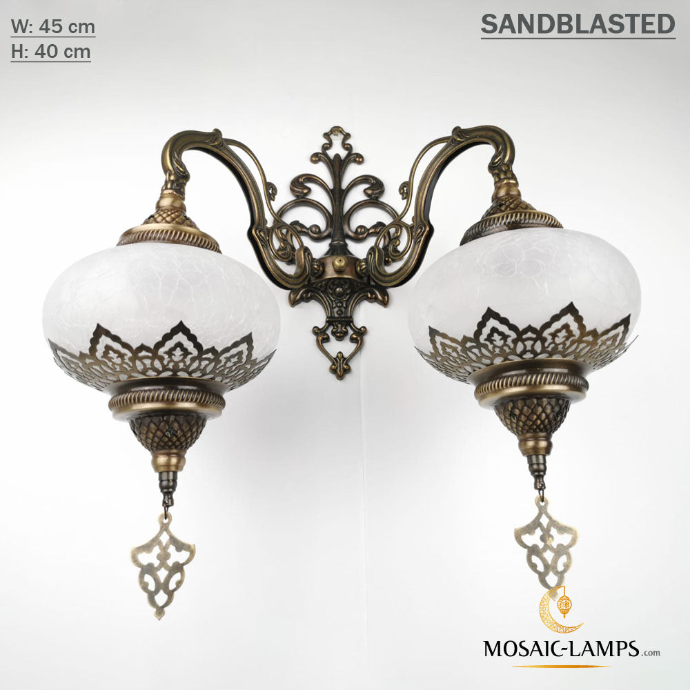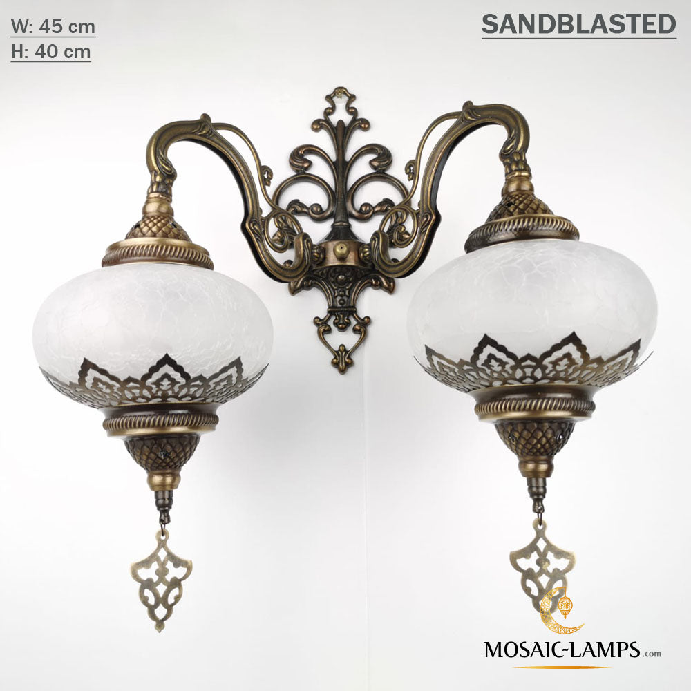 Ottoman Sandblasted Double Wall Sconces, Cracked Clear Sandy Globes Moroccan Wall Lamps, Bedroom, Living Room, Bathroom Wall Lights