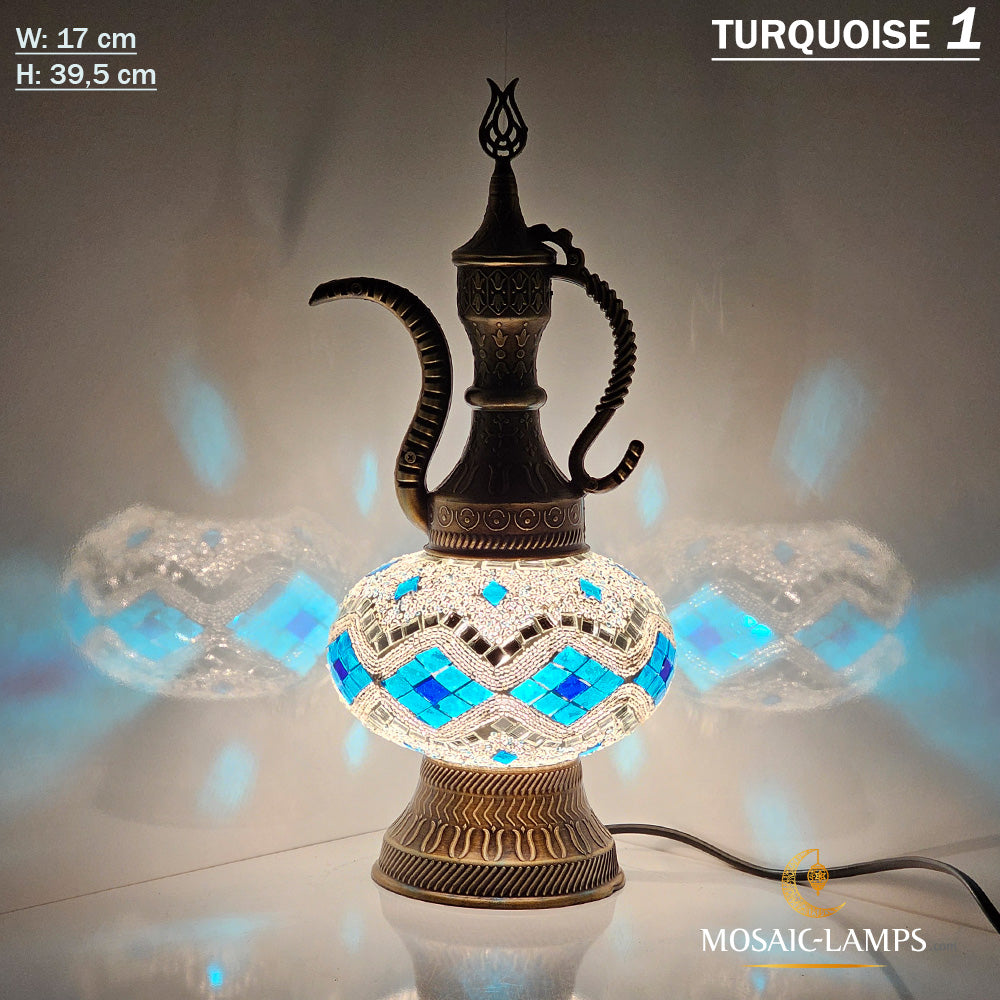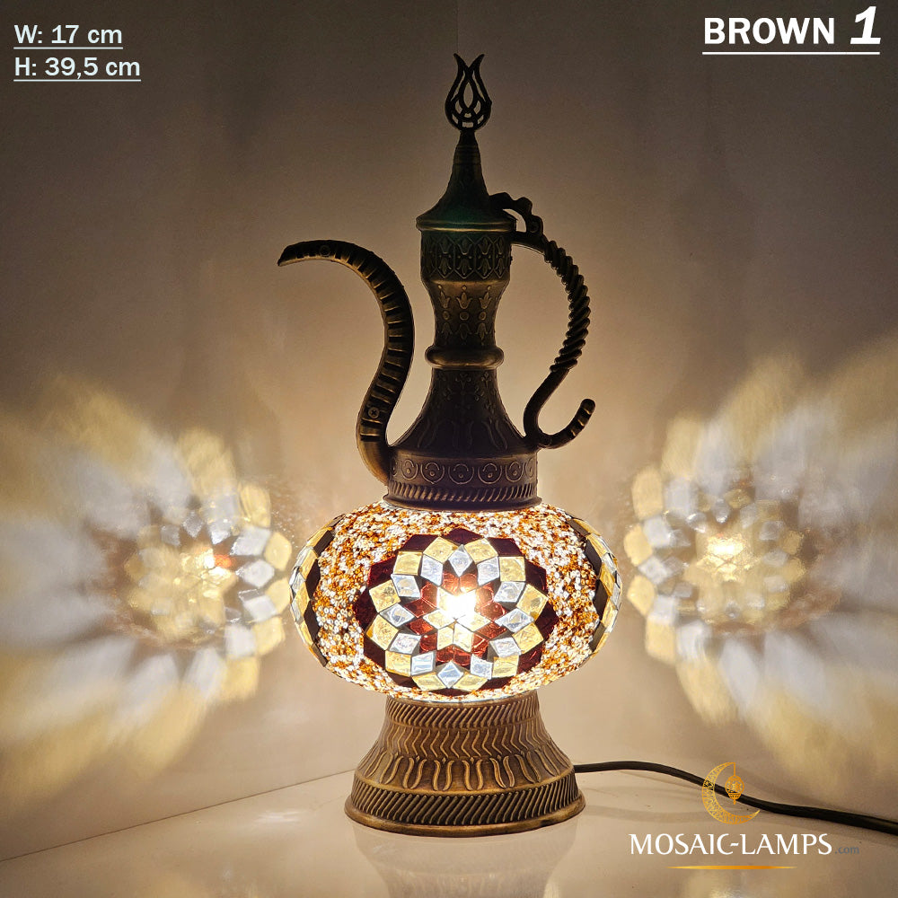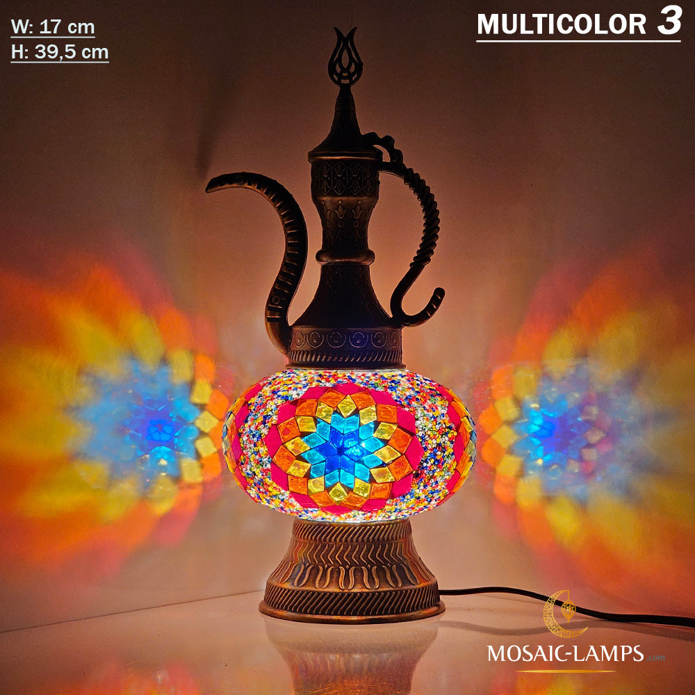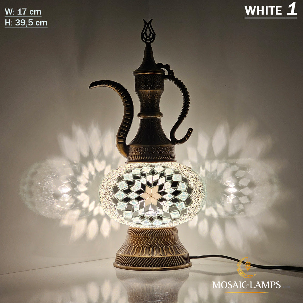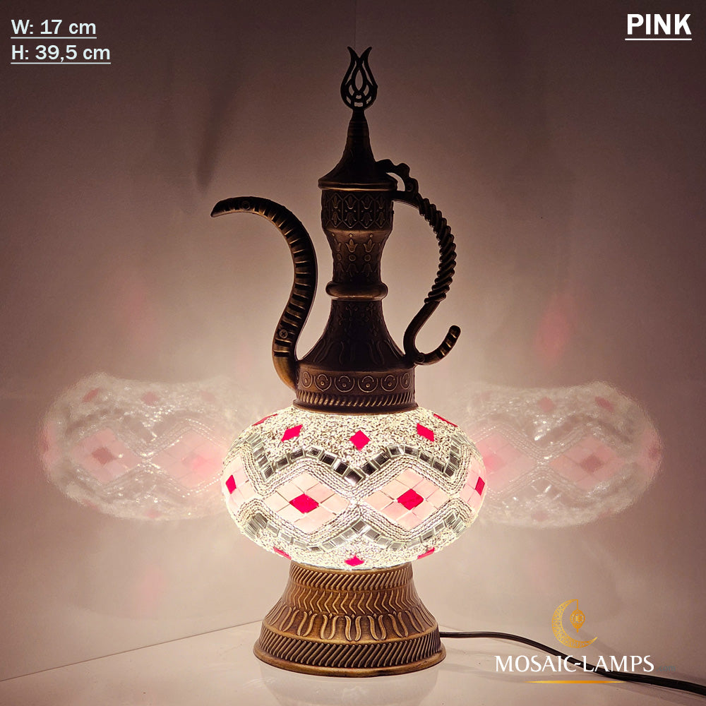 Pitcher mosaic table lamp, Turkish desk lighting for kitchen, bedroom, dining, study, living room, restaurant, bar, hotel.
