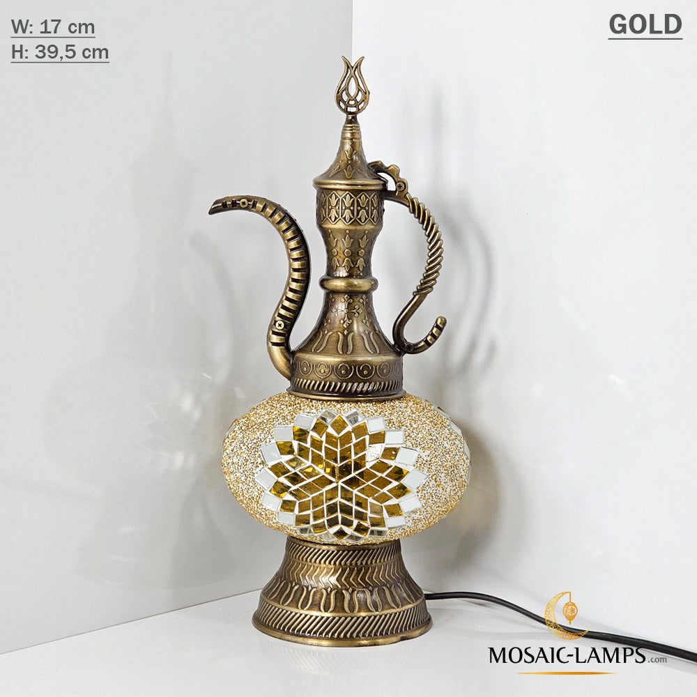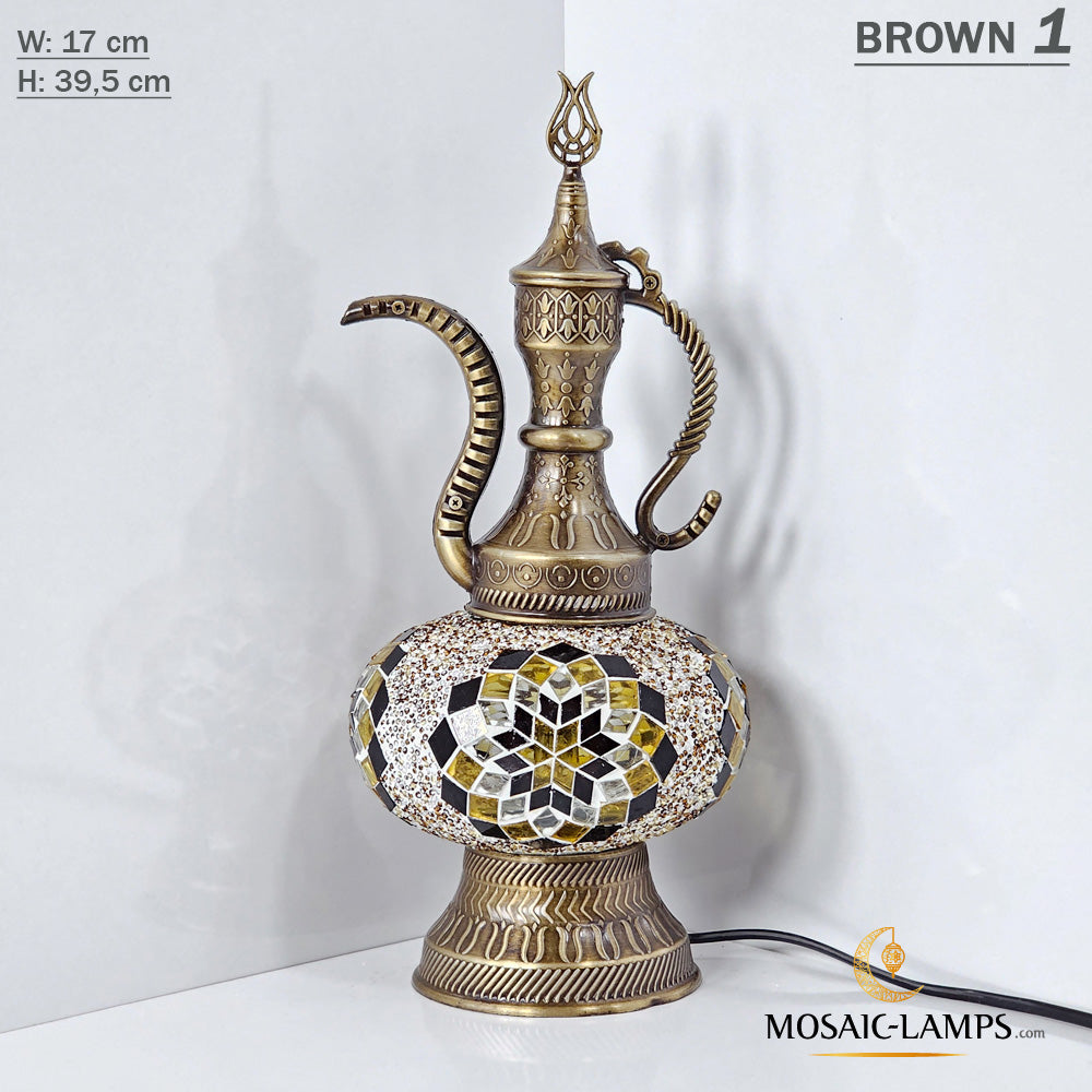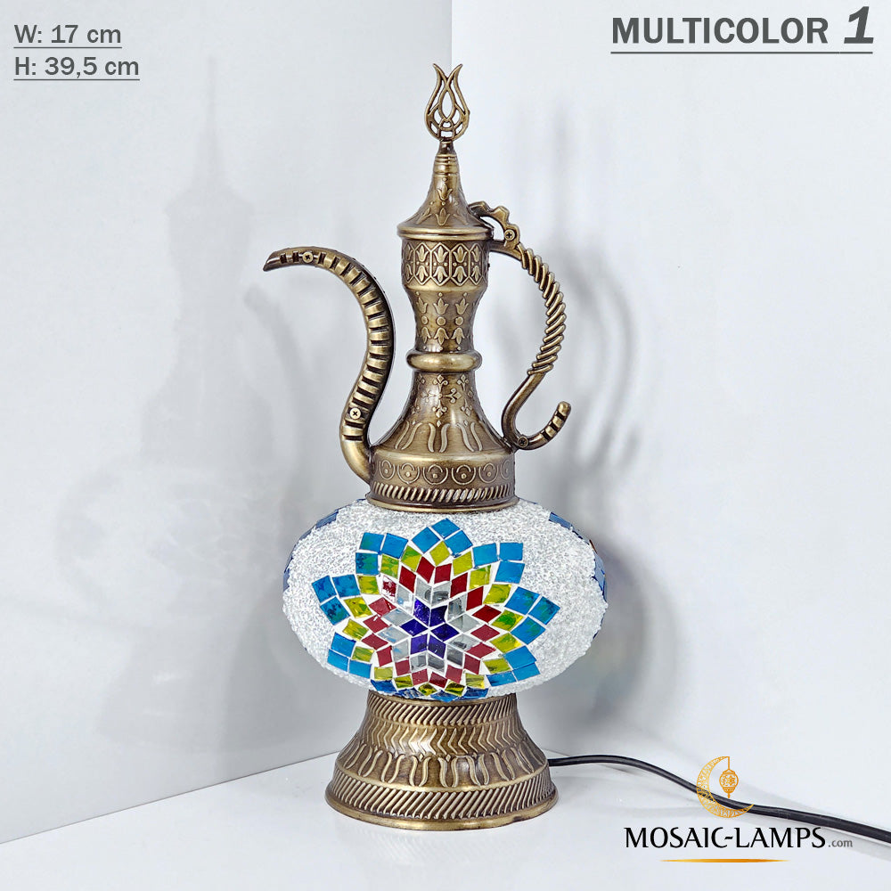 The ewer, which is frequently used by the Turks for personal cleaning, was used both as a cleaning tool and as an ornament by adorning it with beautiful handmade motifs in the living rooms. Although it is not used much in cleaning in the modern age, it still continues to be used as a home decoration on table tops and showcases. We, too, turn this traditional Turkish item into a Mosaic Table Lamp and present it to your service.