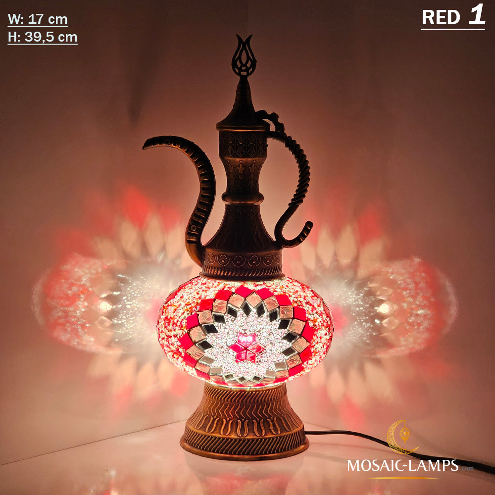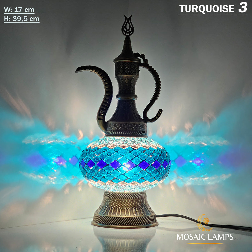 Traditional Pitcher Turkish Mosaic table lamps are handmade. You can order our stylish table lamps in different colors, prepared using 10 different color variants, from all over the world. We produce lamp holders in accordance with the standards of your country.