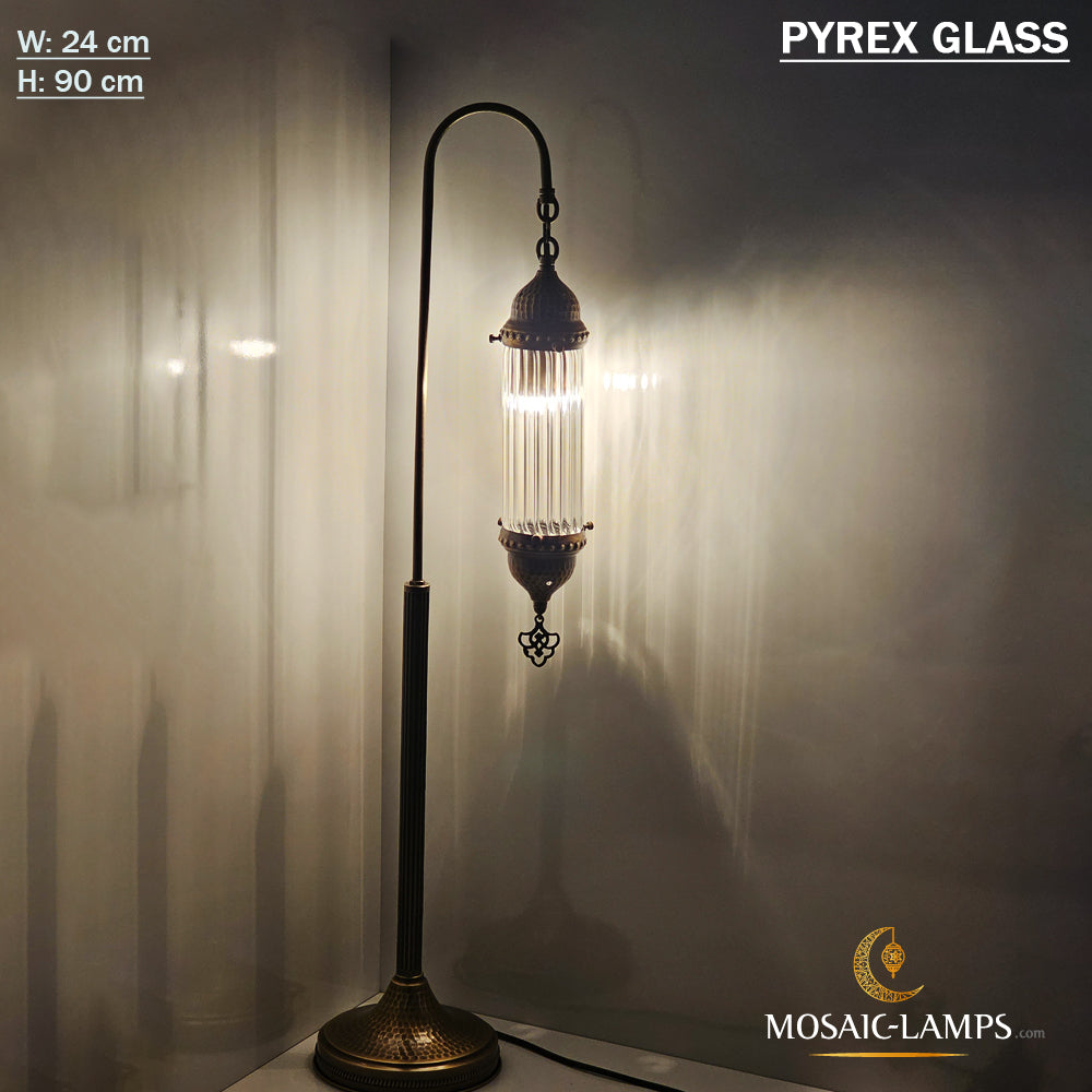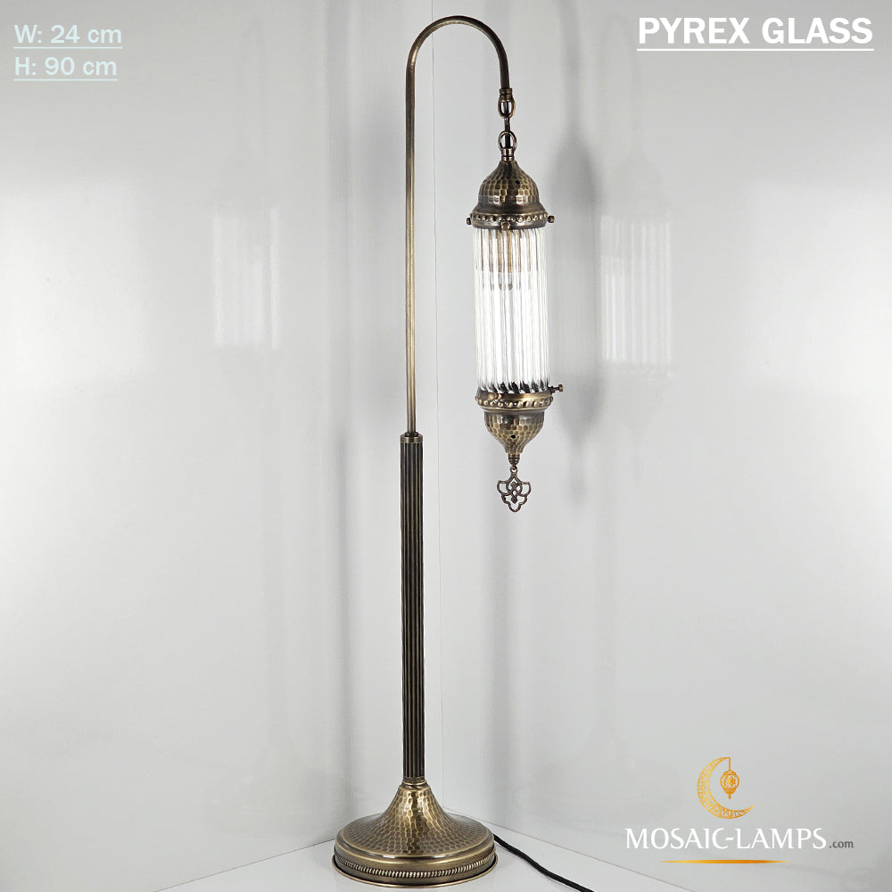 Pyrex Glass Desk Lamp, Floor Standing Corner Lamp, Hammer Forged Metal Tubular Glass Gooseneck, Bedroom Lighting, Living Room Bedside Light