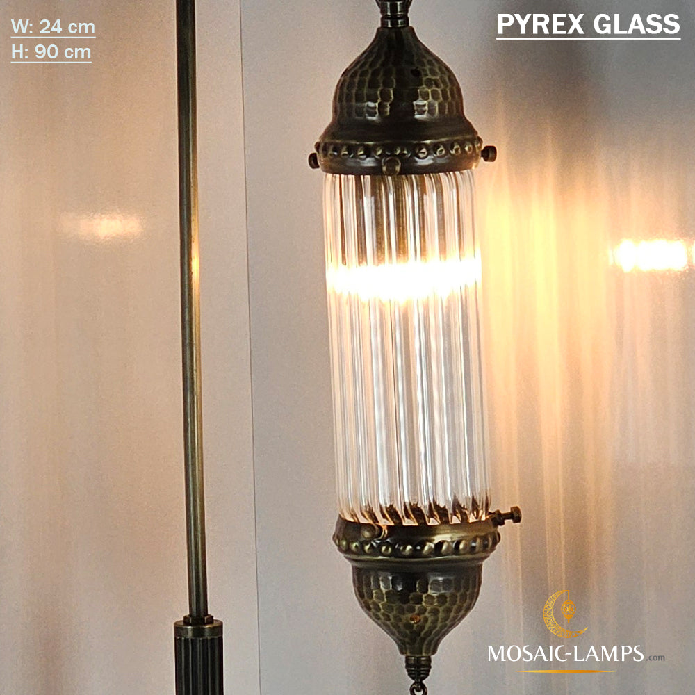 Pyrex Glass Desk Lamp, Floor Standing Corner Lamp, Hammer Forged Metal Tubular Glass Gooseneck Lamp, Bedroom Lighting, Living Room Bedside Light.