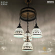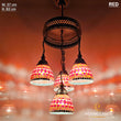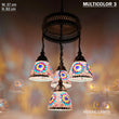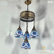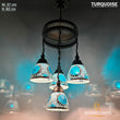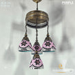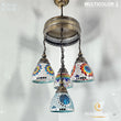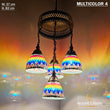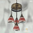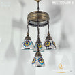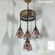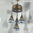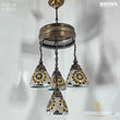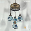 Retro Funnel Chandelier, 4 Globe Turkish Lamp with Open Bottom, Handmade Colorful Globe Bronze Color Lamp, Restaurant, Bedroom, Living Room