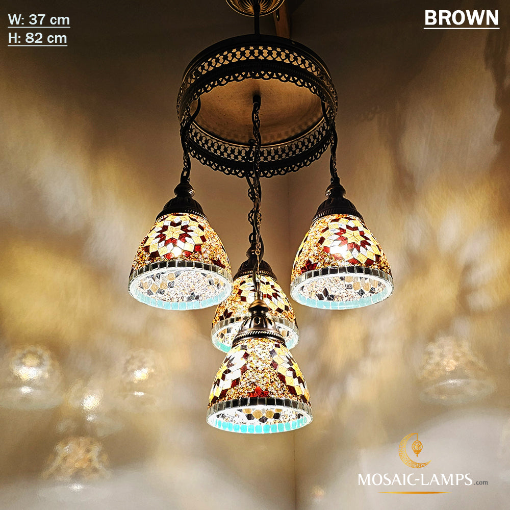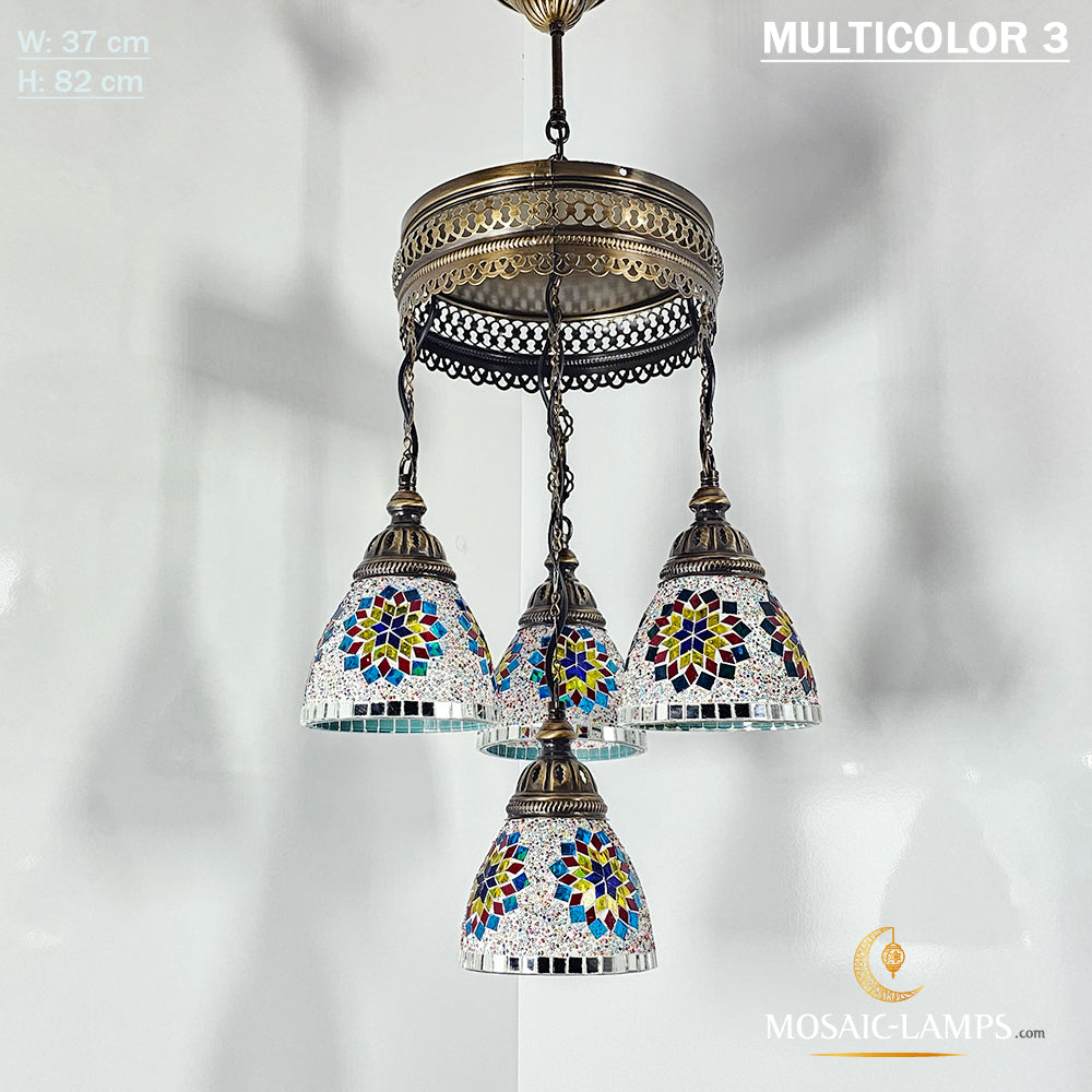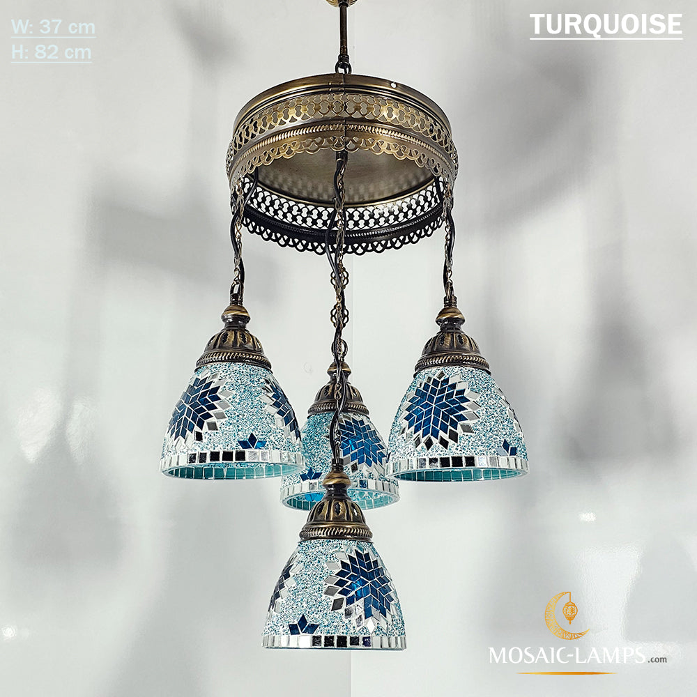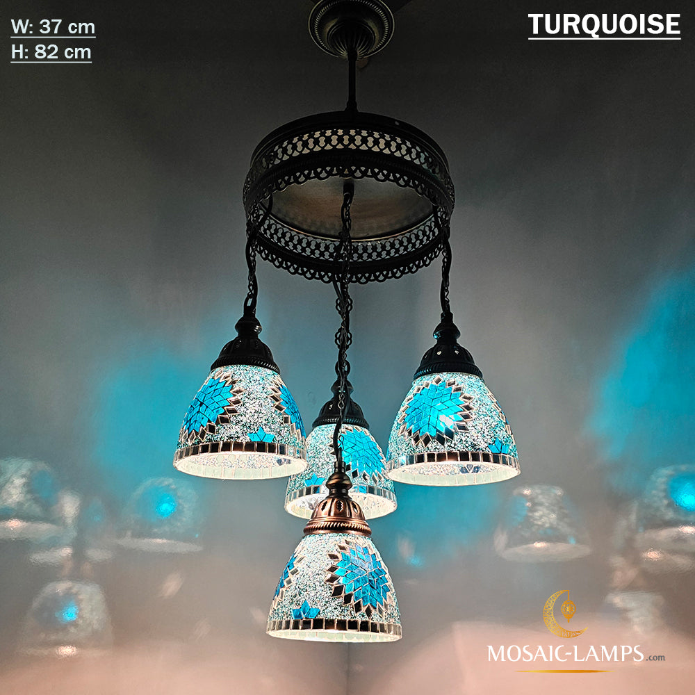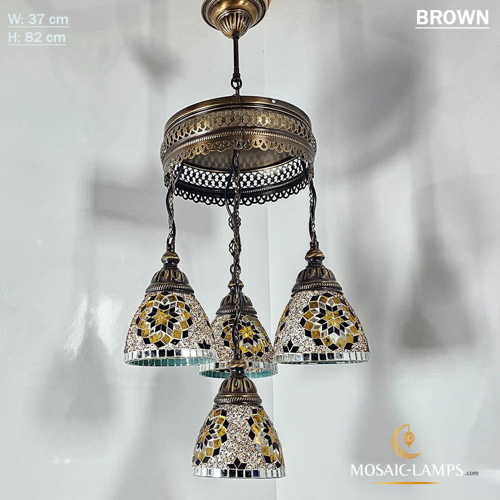Retro Funnel Chandelier, 4 Globe Turkish Lamp with Open Bottom, Handmade Colorful Globe Bronze Color Lamp, Restaurant, Bedroom, Living Room.